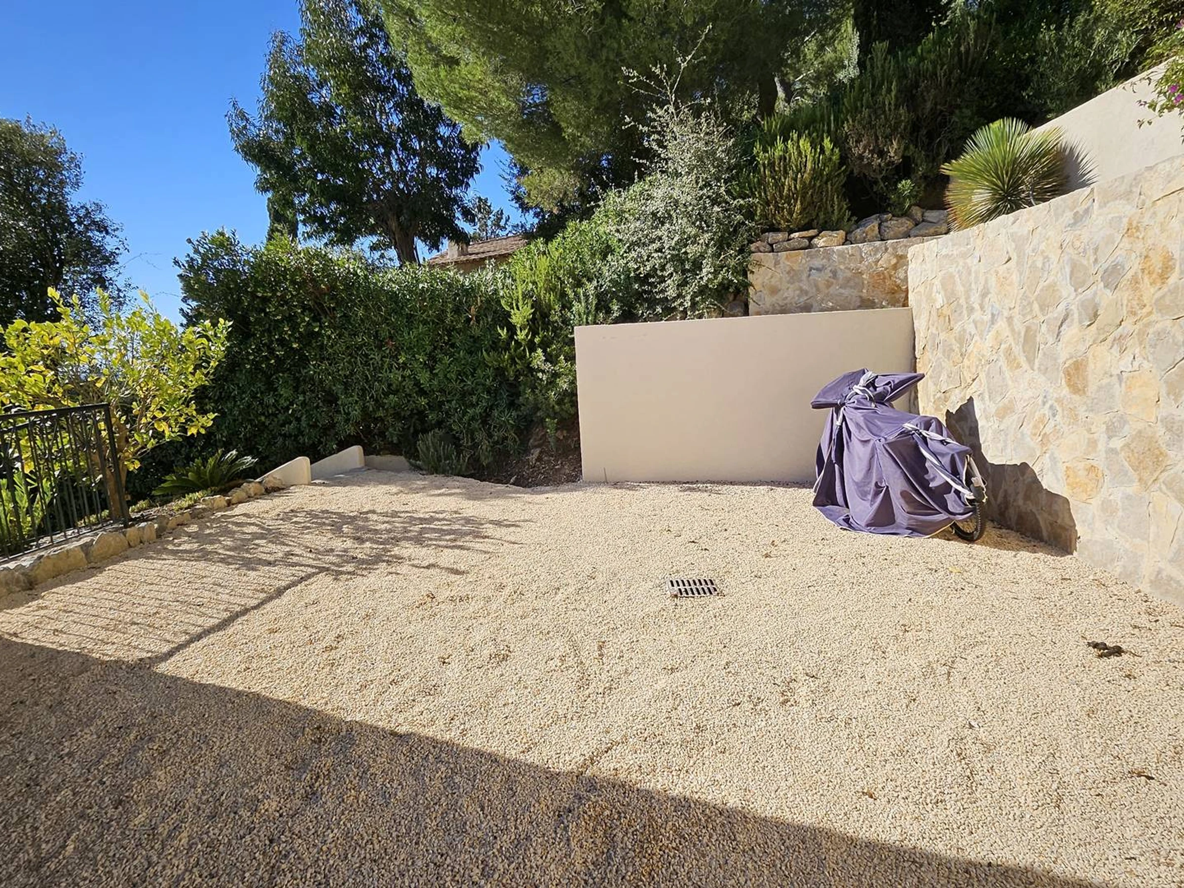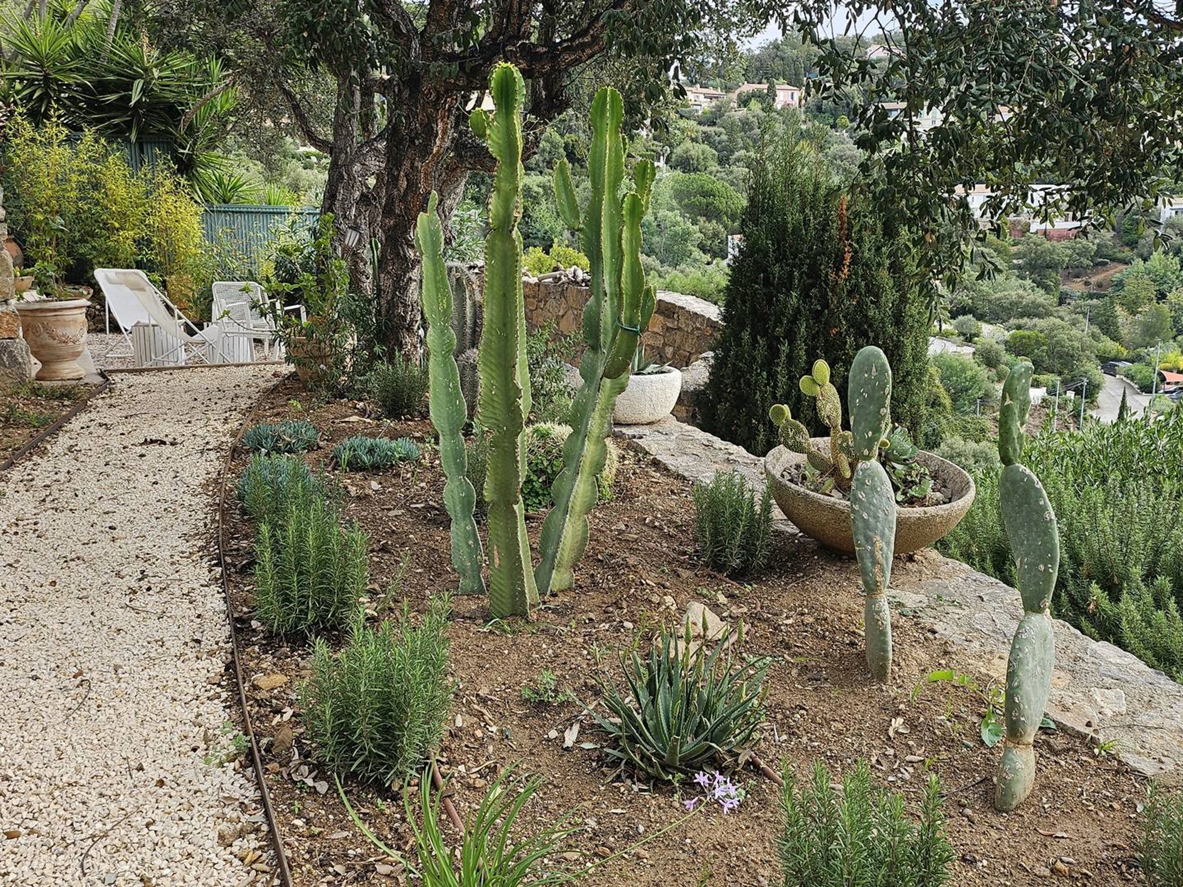 Érigée sur une parcelle de 2000 m² sise au bout d'une impasse, sans bruit, son jardin méditéranéen est aussi plaisant. Grande piscine de 8.7 x 3.5 profondeur 1.5, elle bénéficie d'un rideau pour sa sécurité et d'une très grande plage en parquet. Terrain de boules, ping pong, et coin sieste adorable vers le jardin aux Cactus. Tous équipements nécessaires à sa destination locative. 5 Chambres la compose: CH 1 160, CH 2 140, CH 3 160, CH 4 dite dortoir 4 X 80, CH 5 1 X 140 ( Locations de linges et draps à la demande ). 3 salles d'eau. 4 véhicules stationnent à l'intérieur. Protection par alarme. Climatisation allant de soi. Vue mer et baie exceptionnelle.