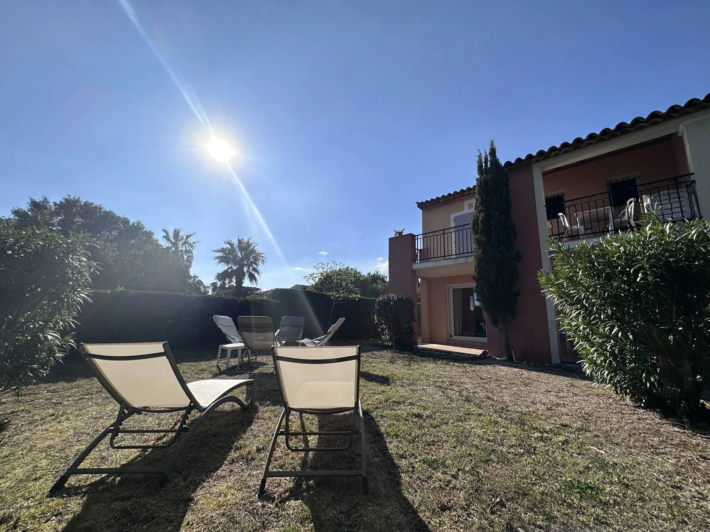 A l’extérieur un jardin de 120 m² avec un accès à la piscine de résidence. Wifi. Climatisation toutes pièce principales.