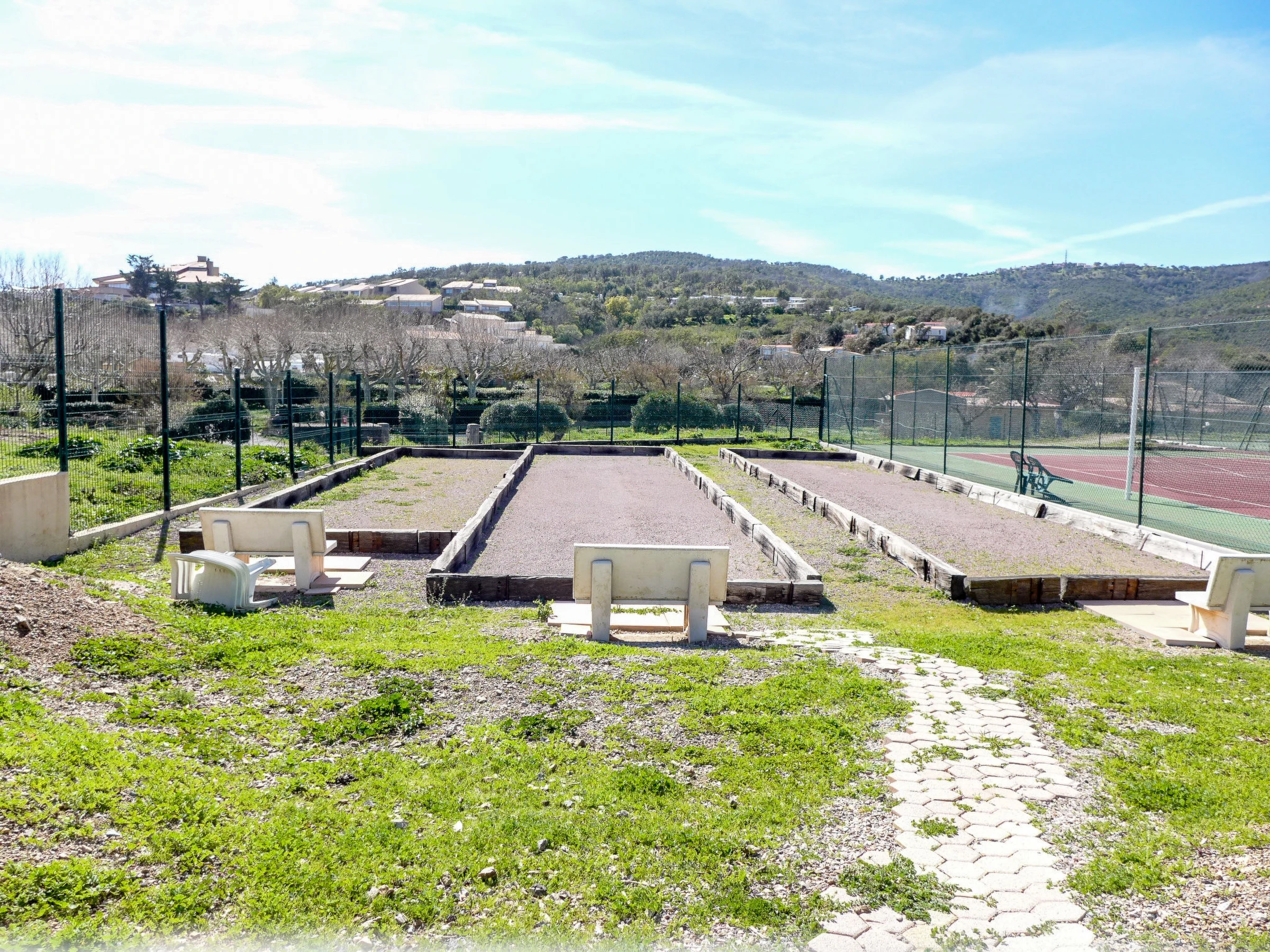 Résidence "Le Domaine de la Gaillarde". En bordure de la localité, à 2.5 km du centre de Saint Aygulf, à 300 m de la mer, à 300 m de la plage. En commun: 2 piscines (disponibilité saisonnière: [hidden] - [hidden] horaires d'ouverture de la piscine: 09:30-21:00 et 10:30-21:00). Bassin pour les enfants, tennis, terrain de pétanque, espace de jeux pour les enfants, place de parking. Magasins 2 km, magasin d'alimentation 300 m, supermarché 2.5 km, plage de sable "La Gaillarde" 300 m, parc "Aqualand" 7 km, centre de plongée 9 km. Marina 2 km. Attractions à proximité: Lunapark 7 km, Fréjus 8 km, Saint Tropez 33 km, Marineland 55 km. Veuillez noter: sans ascenseur. La remise des clés a lieu à l’agence de Saint Aygulf. Night-club/discothèque à proximité. Les shorts et bermudas sont interdits dans les piscines. L'accès aux apartements se fait par des marches même en rez de chaussée.