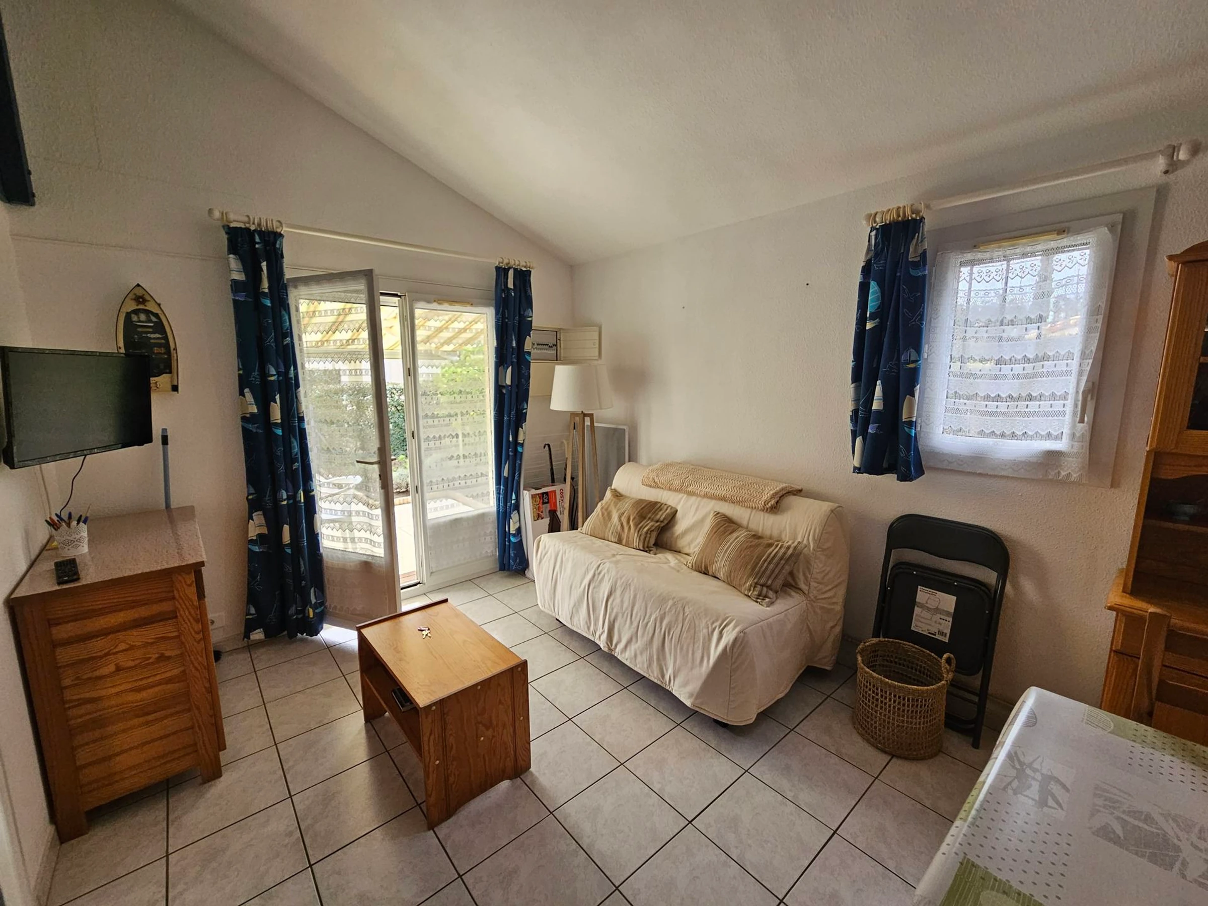 Ce logement se compose : Séjour avec canapé convertible avec cuisine ouverte aménagée et équipée - Chambre avec lit (140x190cm) - Salle d'eau avec WC.