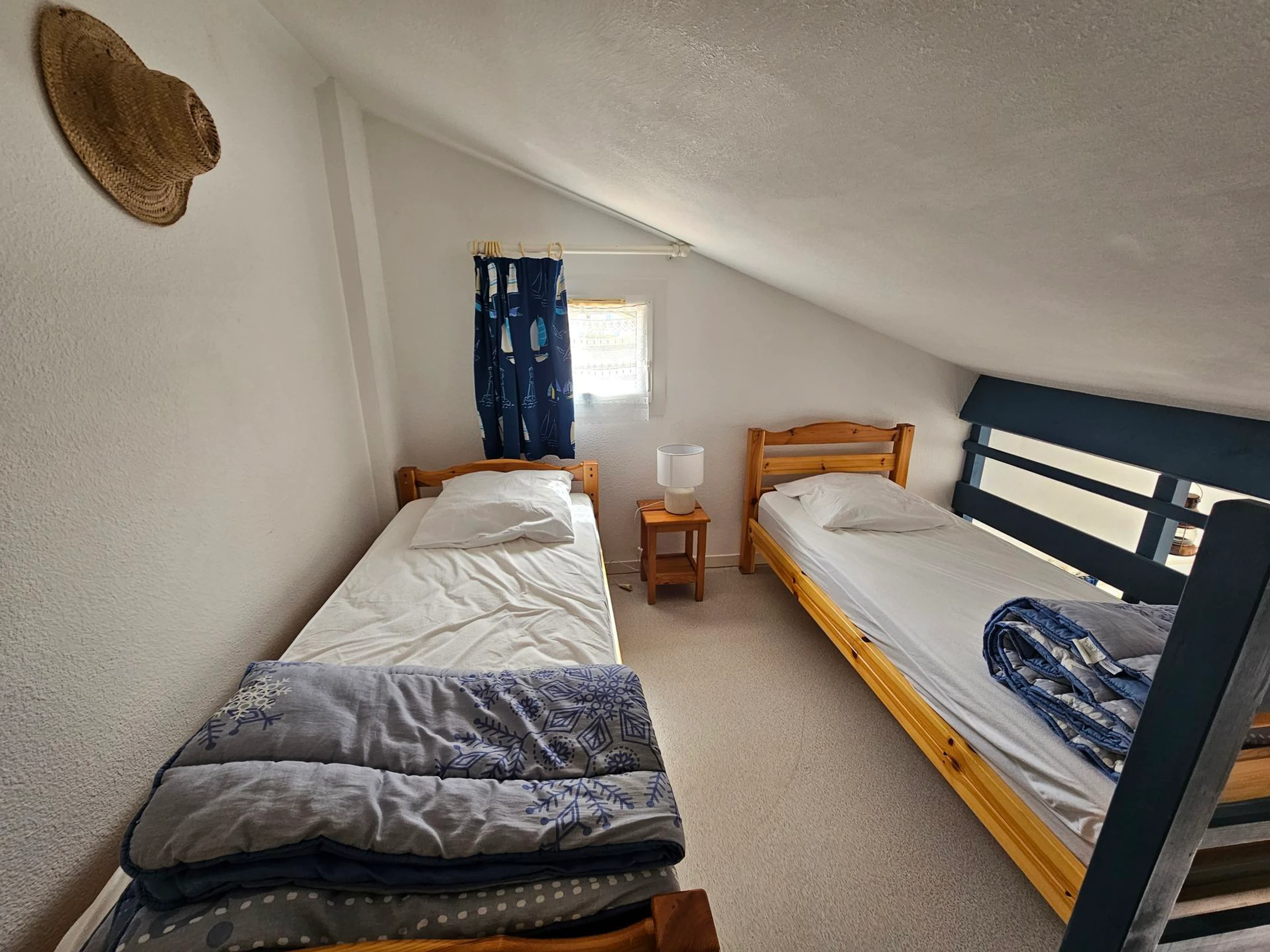 A l'étage : Mezzanine - Chambre avec deux lits simples (80x190cm)