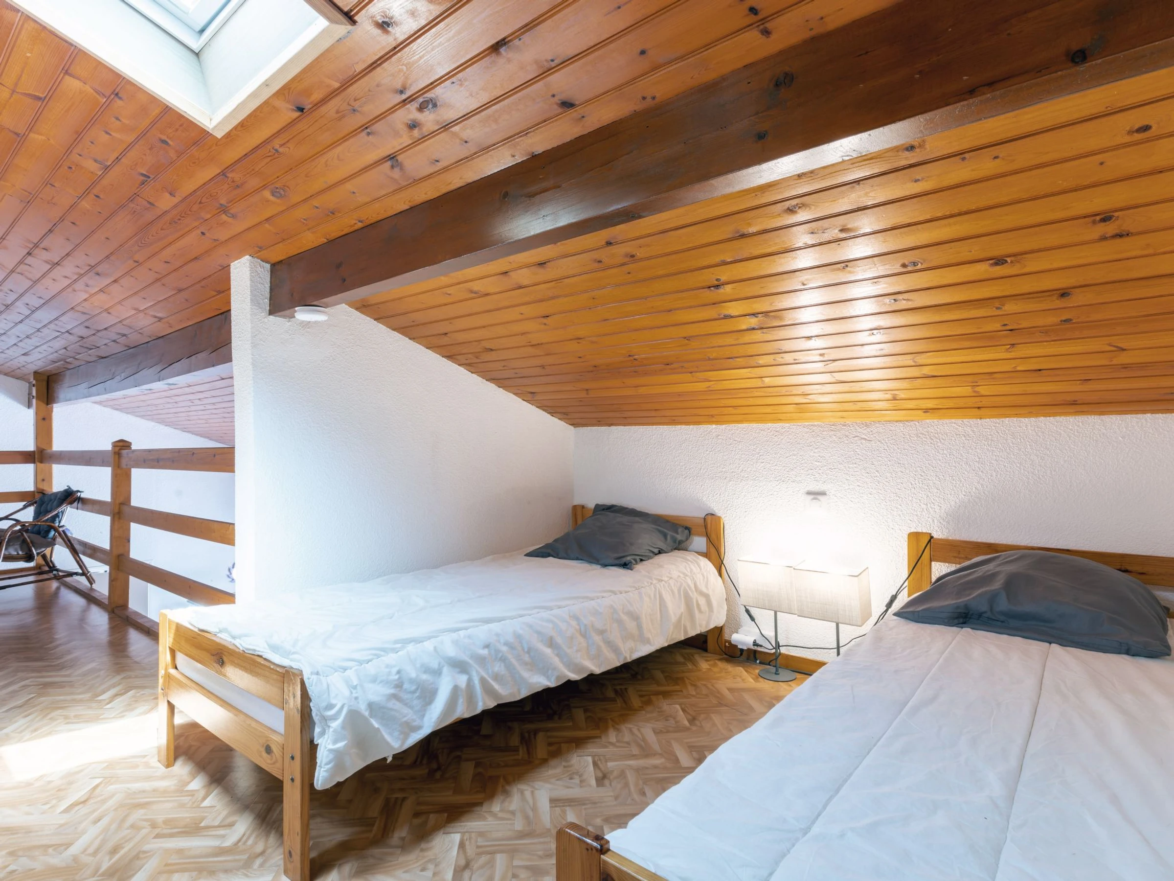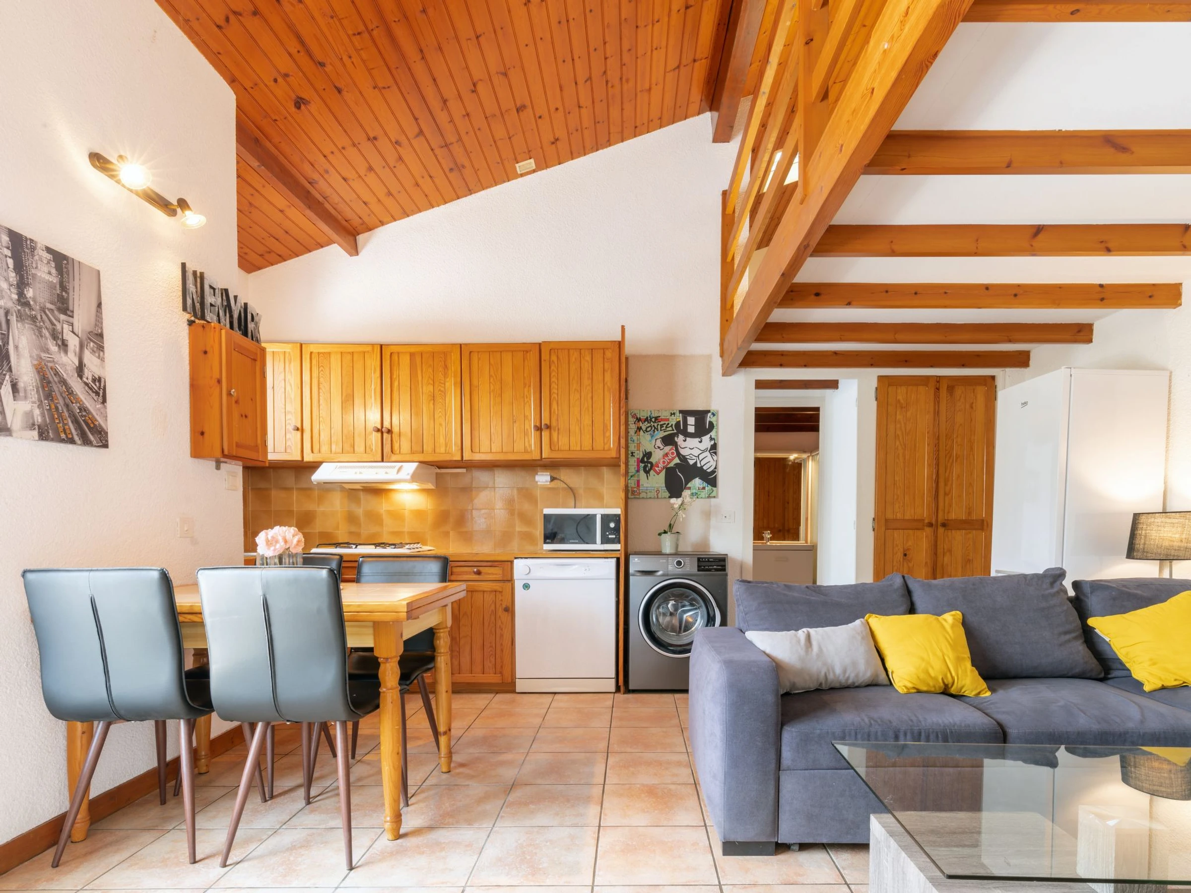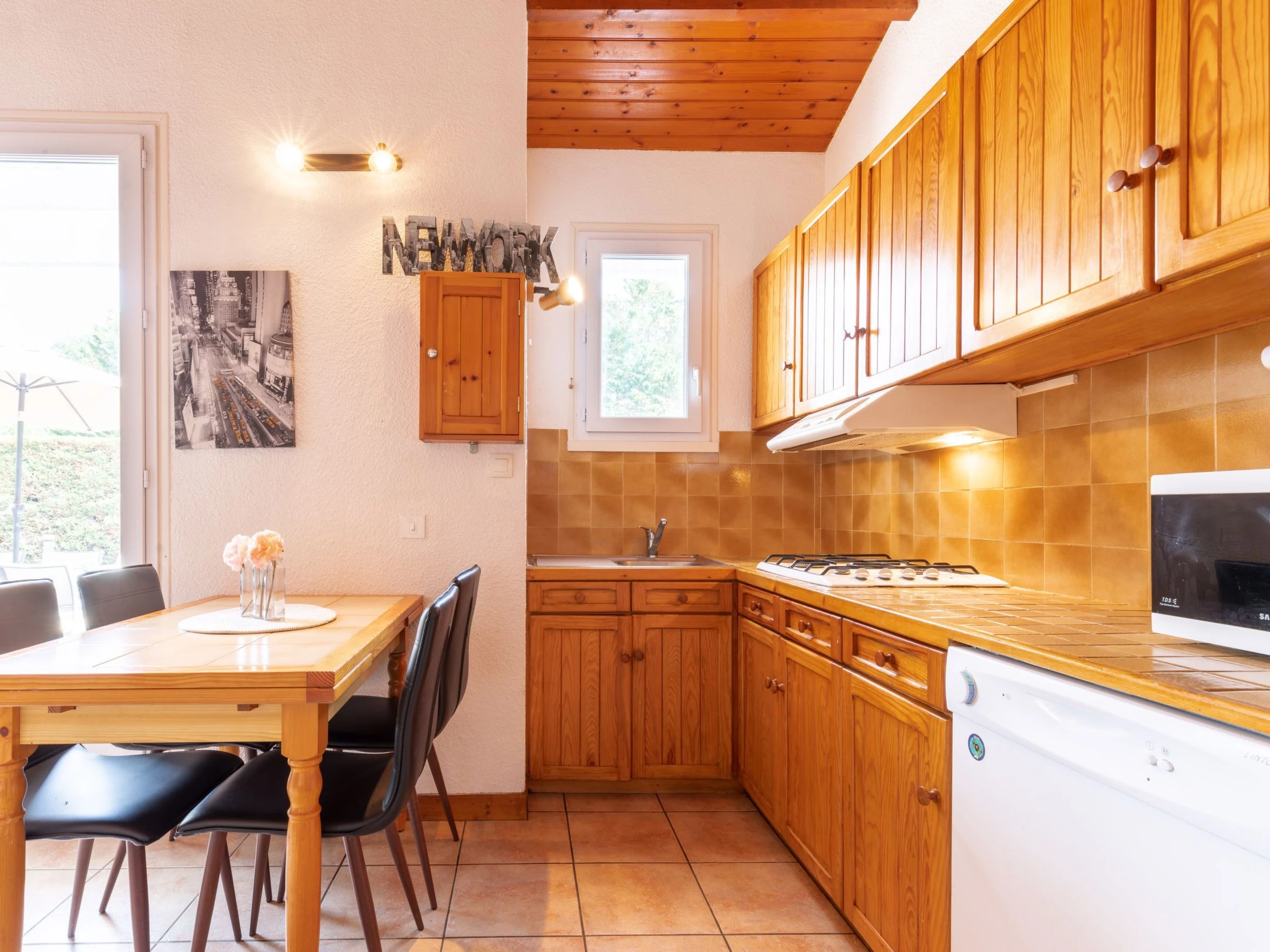 Maison 3 pièces 65 m2 sur 2 niveaux. Séjour/salle à manger avec TV (écran plat). Sortie sur la terrasse. 1 chambre avec 1 grand-lit (1 x 140 cm, longueur 190 cm), TV (écran plat). Sortie sur la terrasse. 1 chambre avec 1 grand-lit (1 x 140 cm, longueur 190 cm). Sortie sur la terrasse. (4 plaques de cuisson, mini-four, lave-vaisselle, four micro-ondes, congélateur, cafetière électrique). Douche/WC. À l'étage supérieur: galerie mansardée avec fenêtre sous le toit avec 2 lits (90 cm, longueur 190 cm). Grande terrasse 25 m2, jardin 200 m2. Meubles de terrasse, barbecue. A disposition: lave-linge. Internet (Connexion WIFI, gratuit). Place de parking No 116. Veuillez noter: logement côté parking. 1 animal/ chien autorisé. Détecteur de fumée.