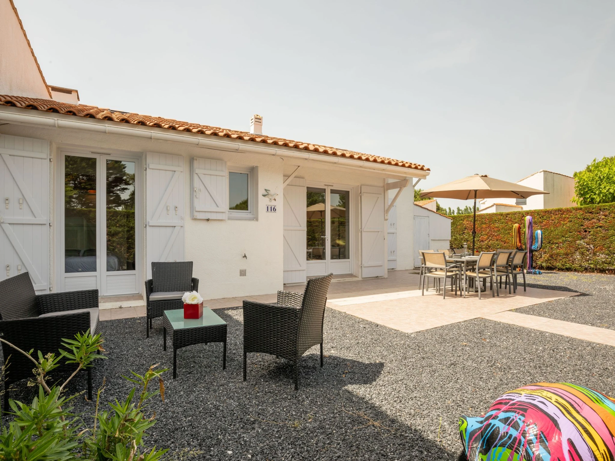 Les Mathes-La Palmyre à 15 km de Royan: La résidence "Les Palmyriennes" est située face à l'hippodrome, sur la route principale menant de La Palmyre aux Mathes. La piste cyclable se trouve devant l'entrée de la résidence. Résidence "Les Palmyriennes". 110 maisons dans la résidence. Dans la localité, à 1.2 km du centre, à 2 km de la mer, à 2 km de la plage. Magasins 1.2 km, magasin d'alimentation 1.2 km, supermarché 1.2 km, restaurant 1.2 km, boulangerie 1.2 km, location de bicyclettes 1.2 km, gare ferroviaire "Royan" 17 km, plage de sable "Bonne Anse" 2 km. Port plaisance 2 km, terrain de golf (9 trous) 3.5 km, centre équestre 500 m, piste cyclable 20 m. Attractions à proximité: Hippodrome - La Palmyre 1 km, Zoo de La Palmyre 2 km, Luna Park (Juillet-Août) 4 km, Embarcadère Royan - Le Verdon 17 km, Centre aquatique Iléo - Ile d'Oléron 35 km, Fort Boyard - Fouras 60 km. La remise des clés a lieu à l’agence de Vaux sur Mer, 15 km.