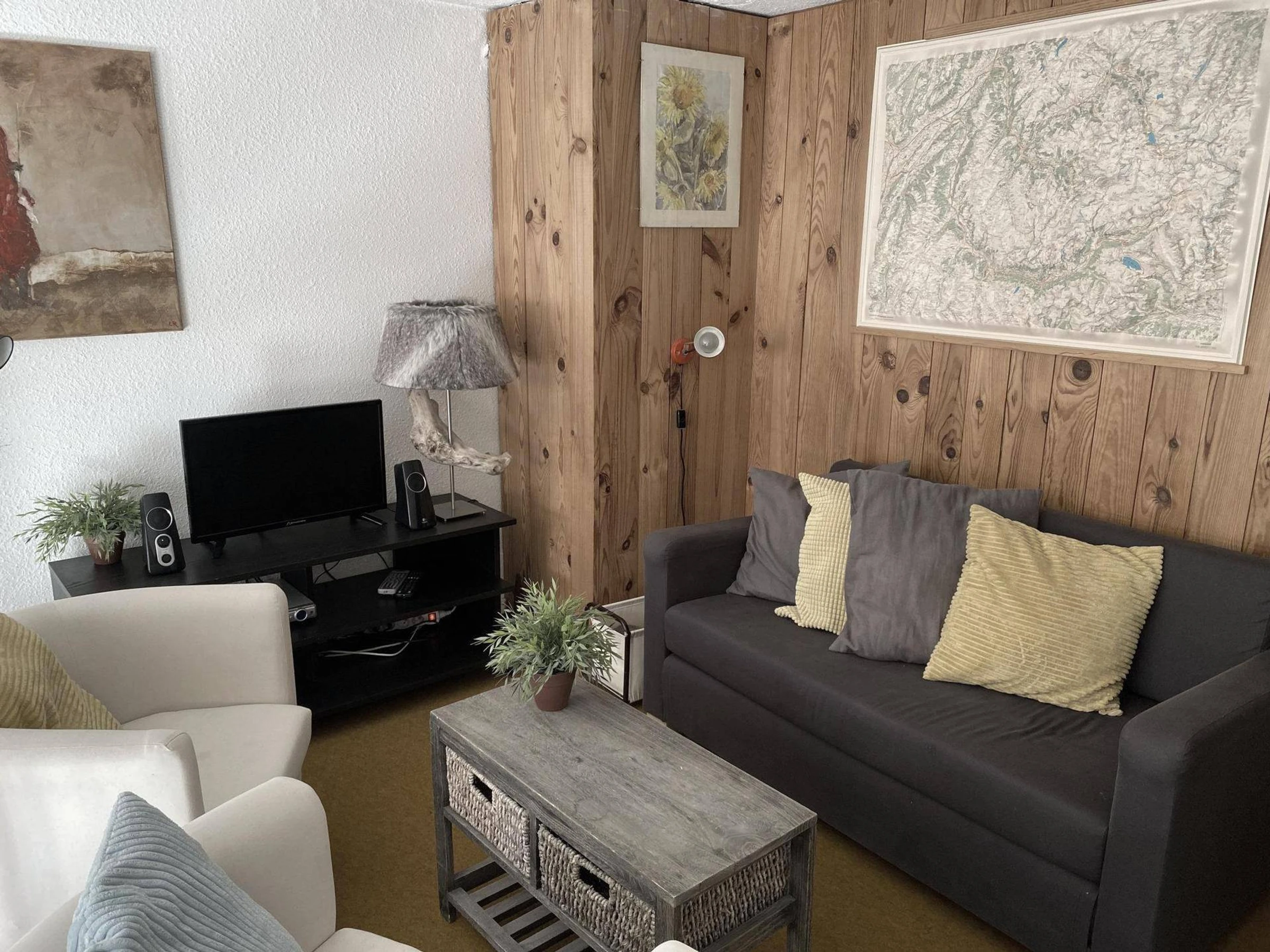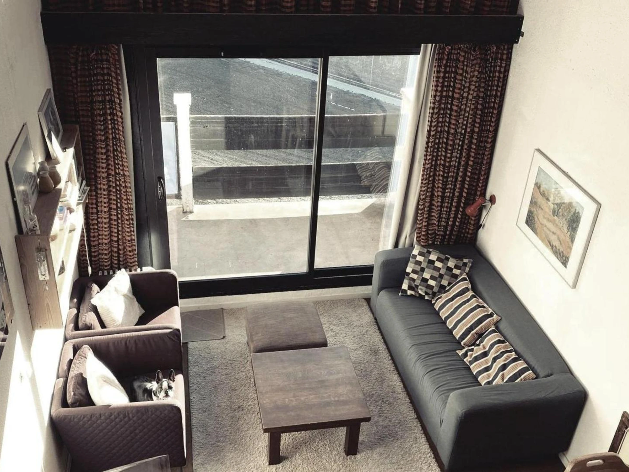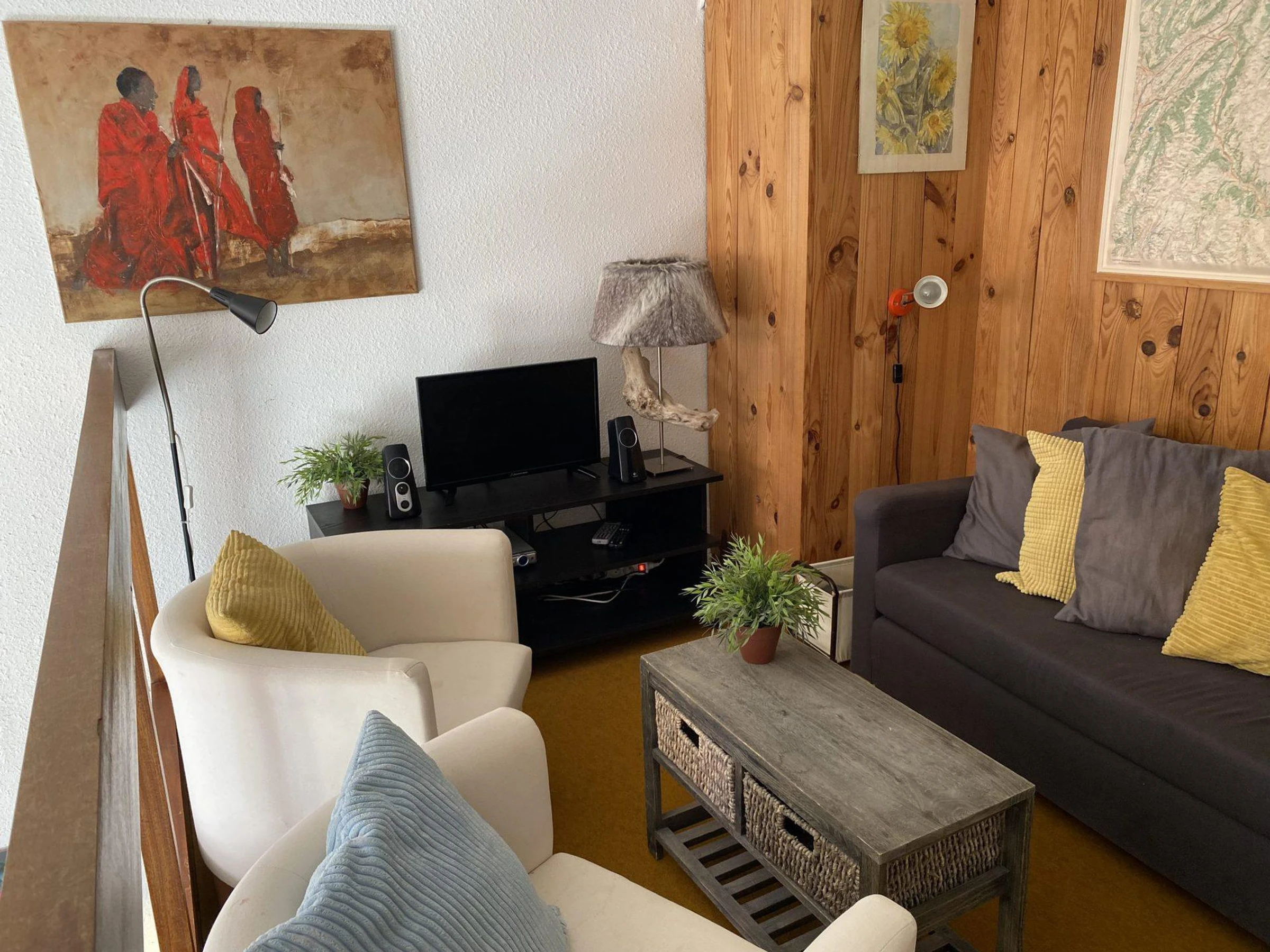Séjour avec balcon et salon en mezzanine avec Télévision.