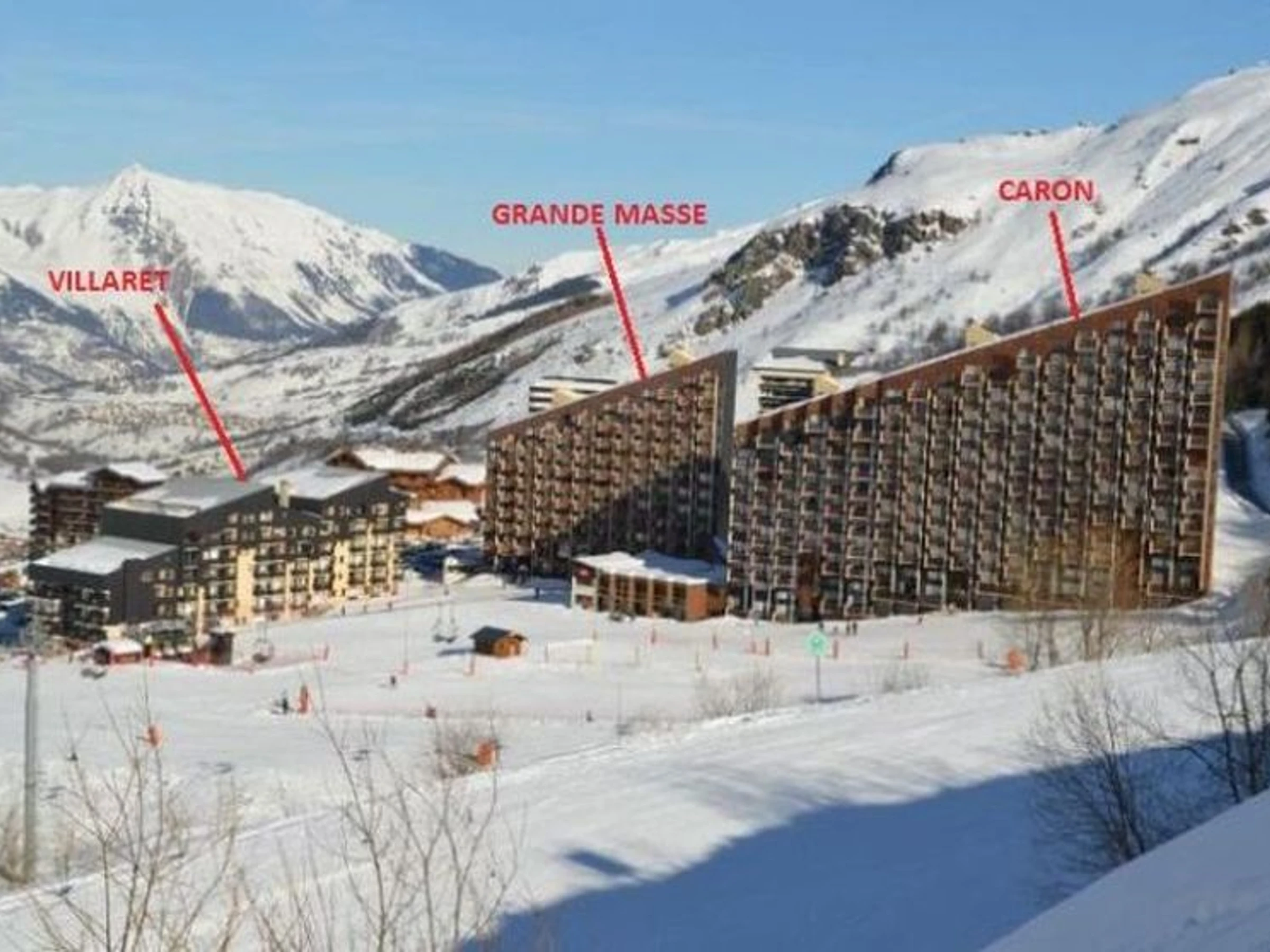 La résidence Belleville Caron se trouve dans le quartier de Preyerand en contre-bas de la Croisette, avec départ et retour de ski directs des casiers à ski.