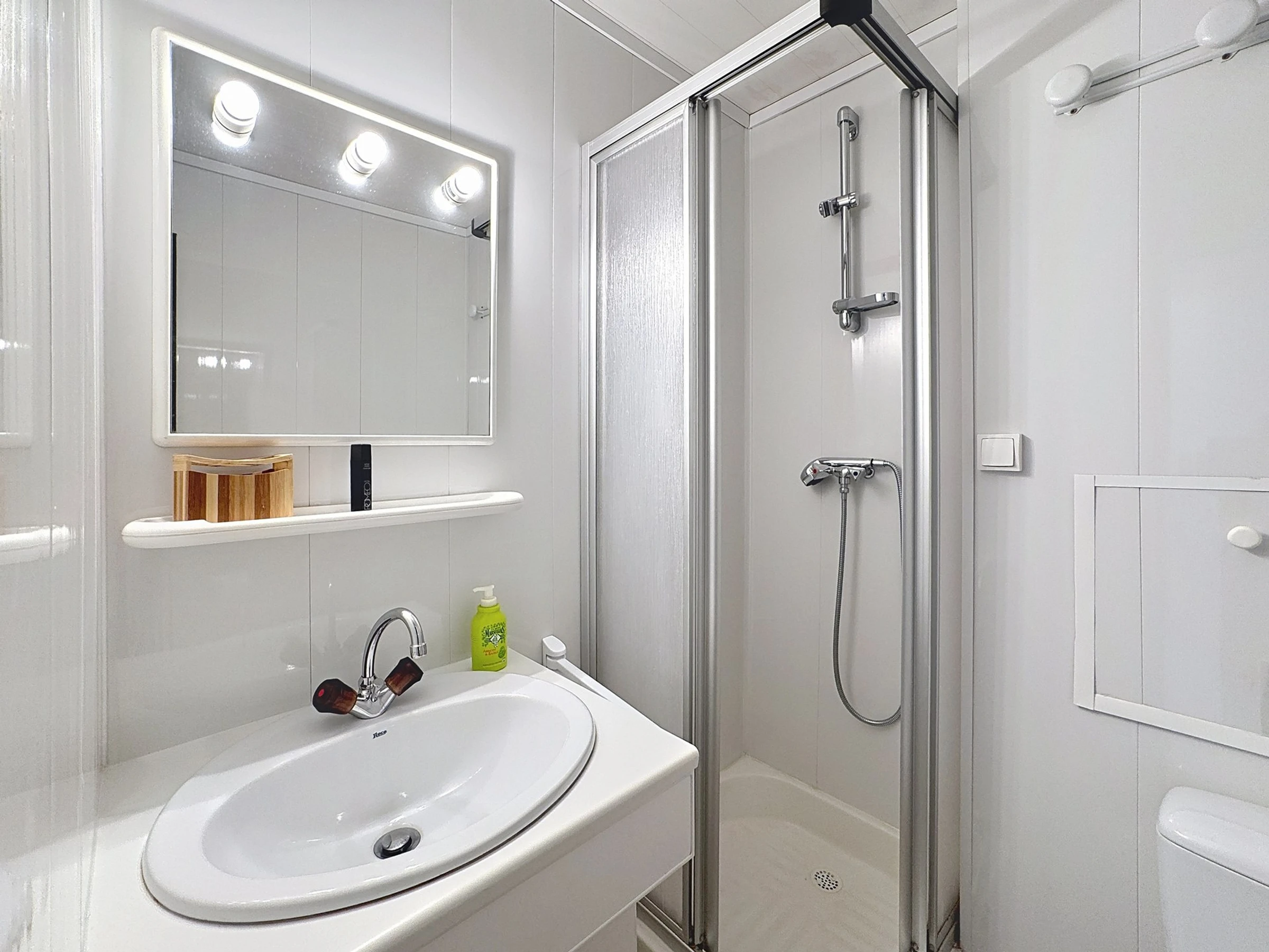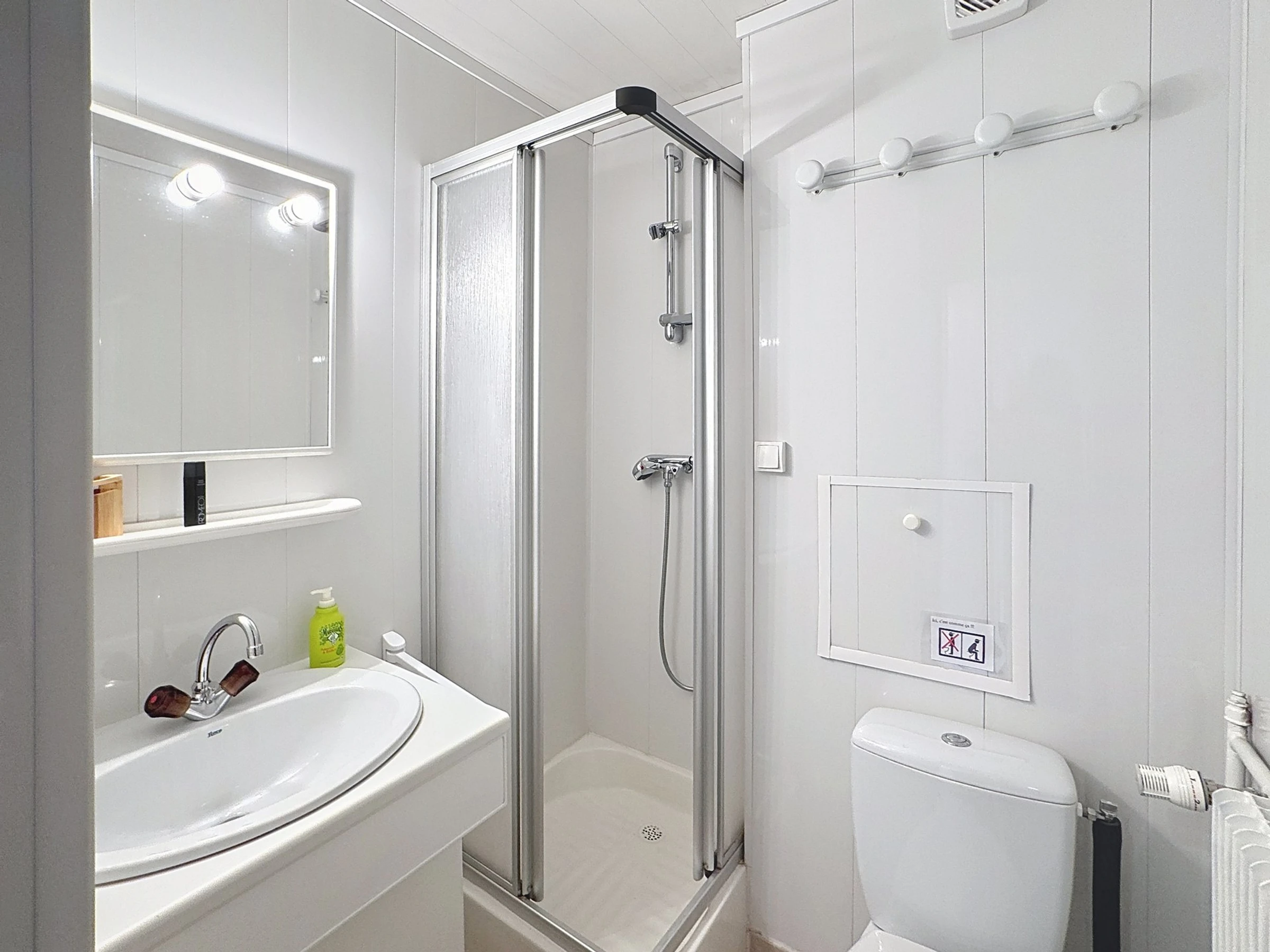 Salle de bains : lavabo, douche, WC