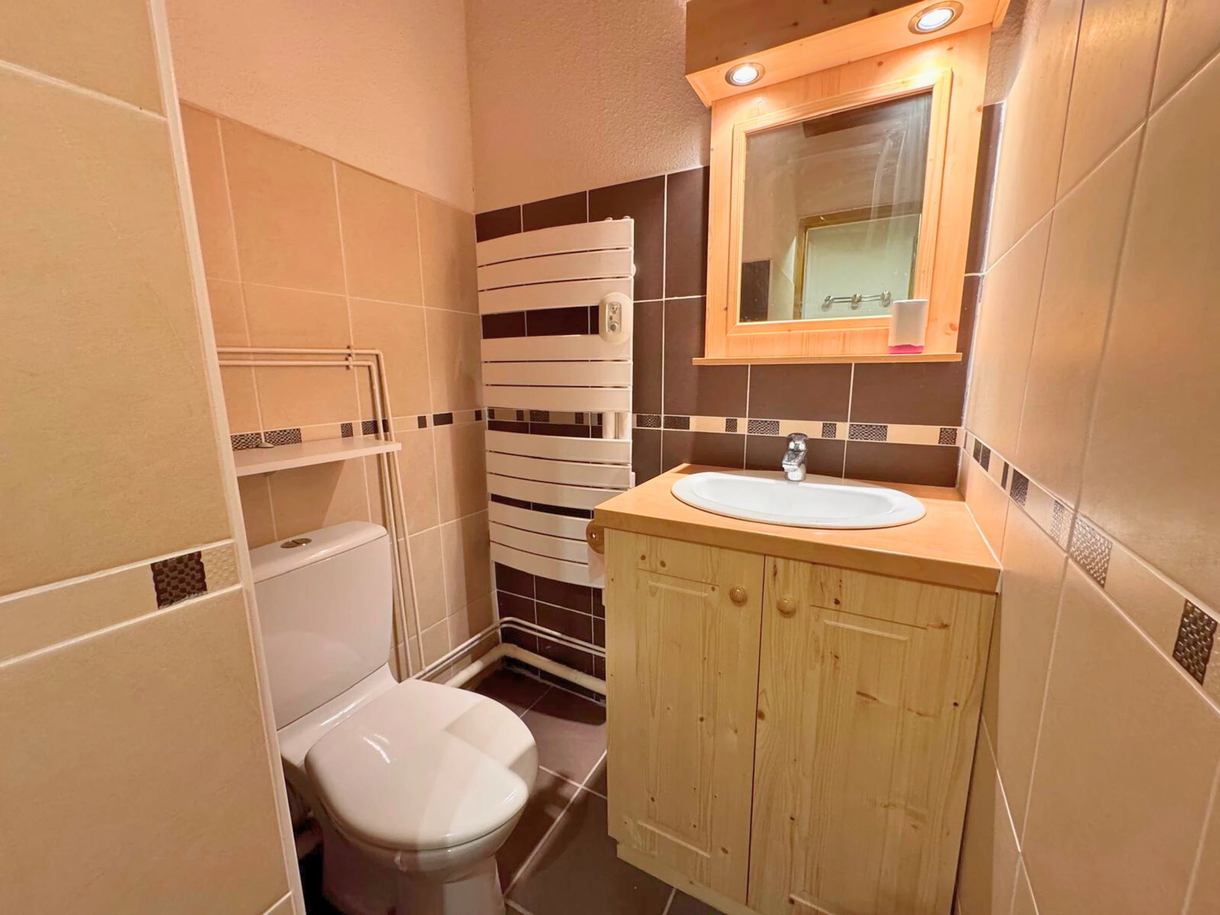 Salle de bain : lavabo, douche, toilettes