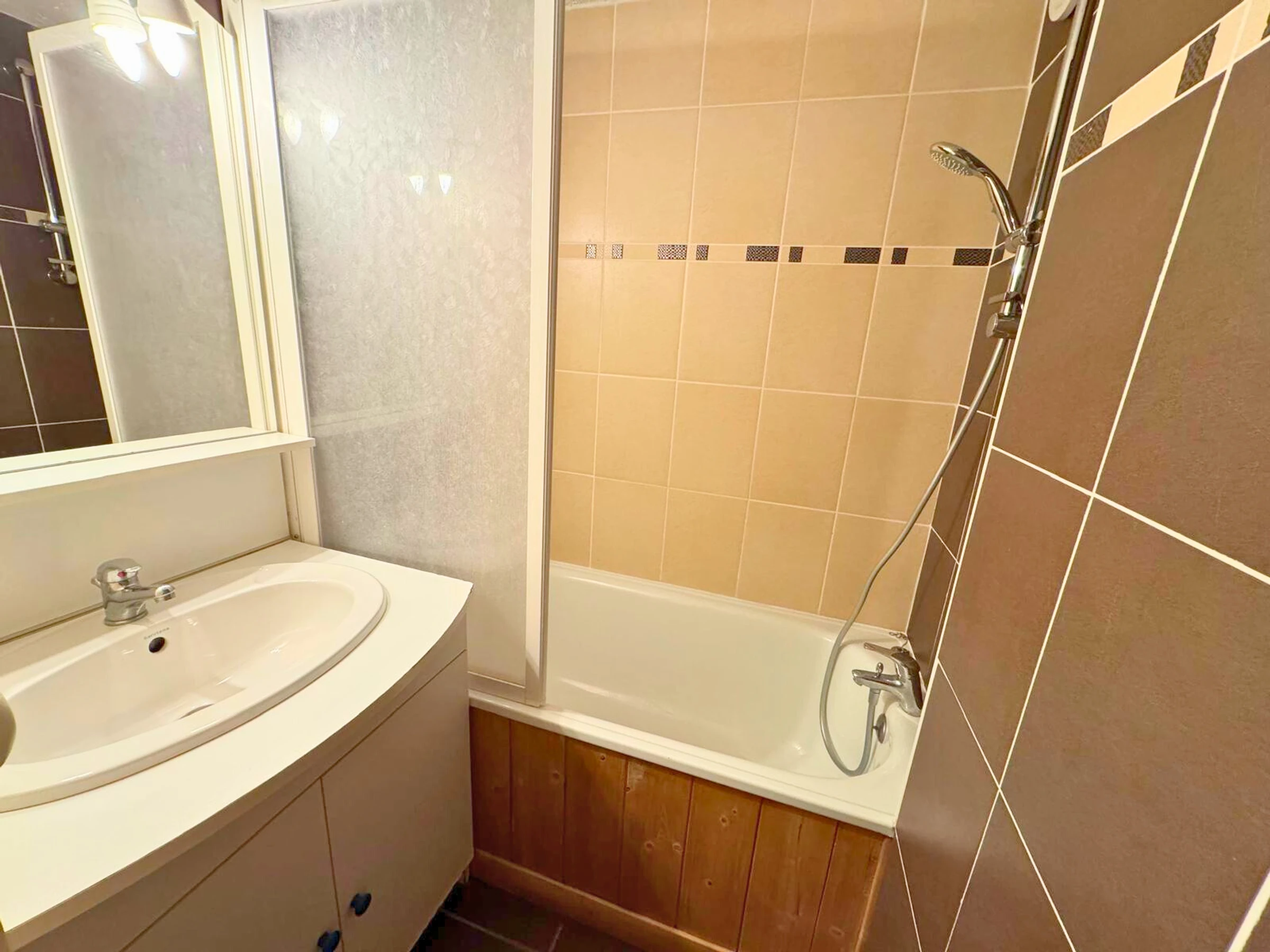 Salle de bains : lavabo, baignoire
