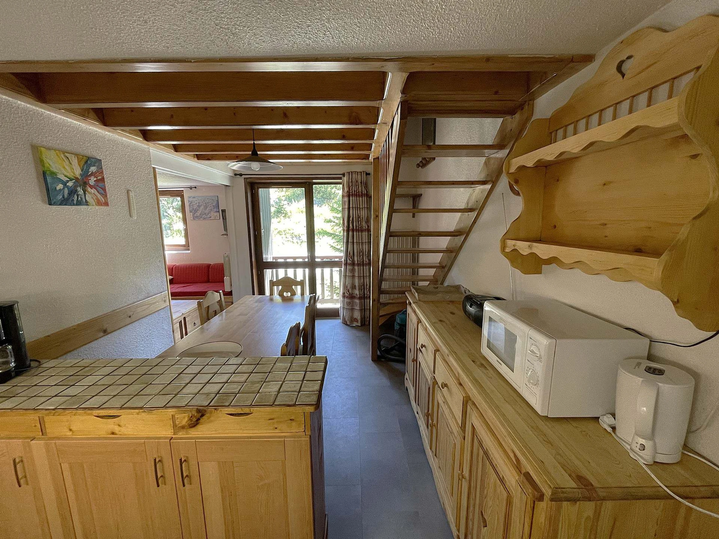 Résidence Jettay entrée "C" Choucas (N°136), 2 pièces duplex en mezzanine, rénové style montagne pour 7 personnes 43m², au 2ème étage sans ascenseur, balcon exposé Est, vue sur la station