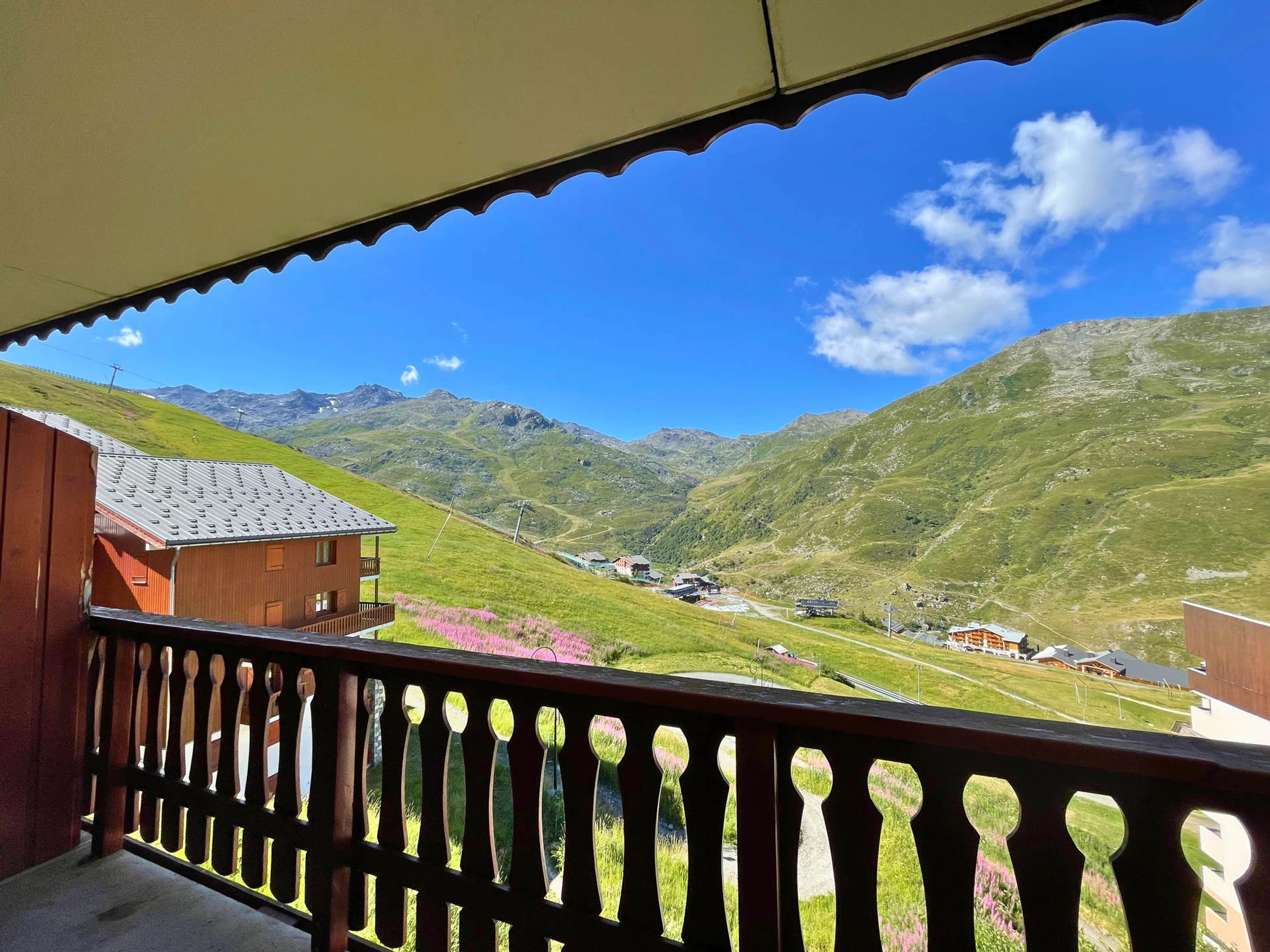 Résidence Les Côtes d'Or - Chalet Courmayeur, appartement 331 / 4 pièces, 8/10 personnes, 58 m², 3ème étage côté balcon, 1er étage depuis l'entrée du chalet (par escaliers), balcon d'angle exposé Sud-Ouest/Nord-Ouest