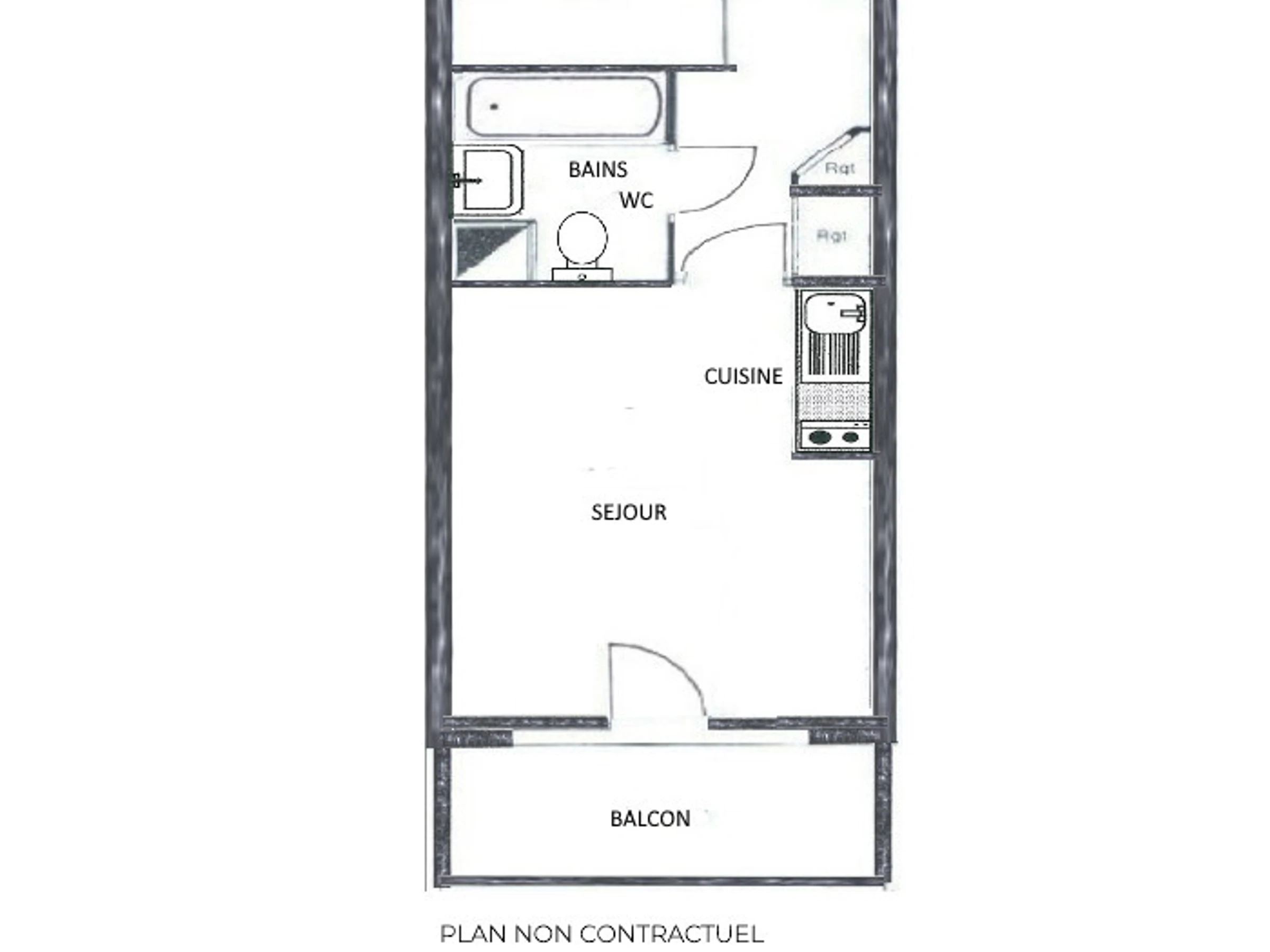 Résidence Necou (N°718), studio avec coin montagne pour 4 personnes 24m², au 7ème étage par ascenseur et au 4ème étage au niveau du balcon, balcon exposé Ouest