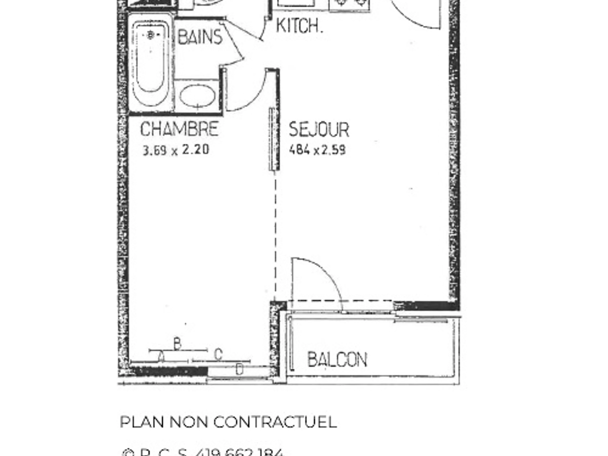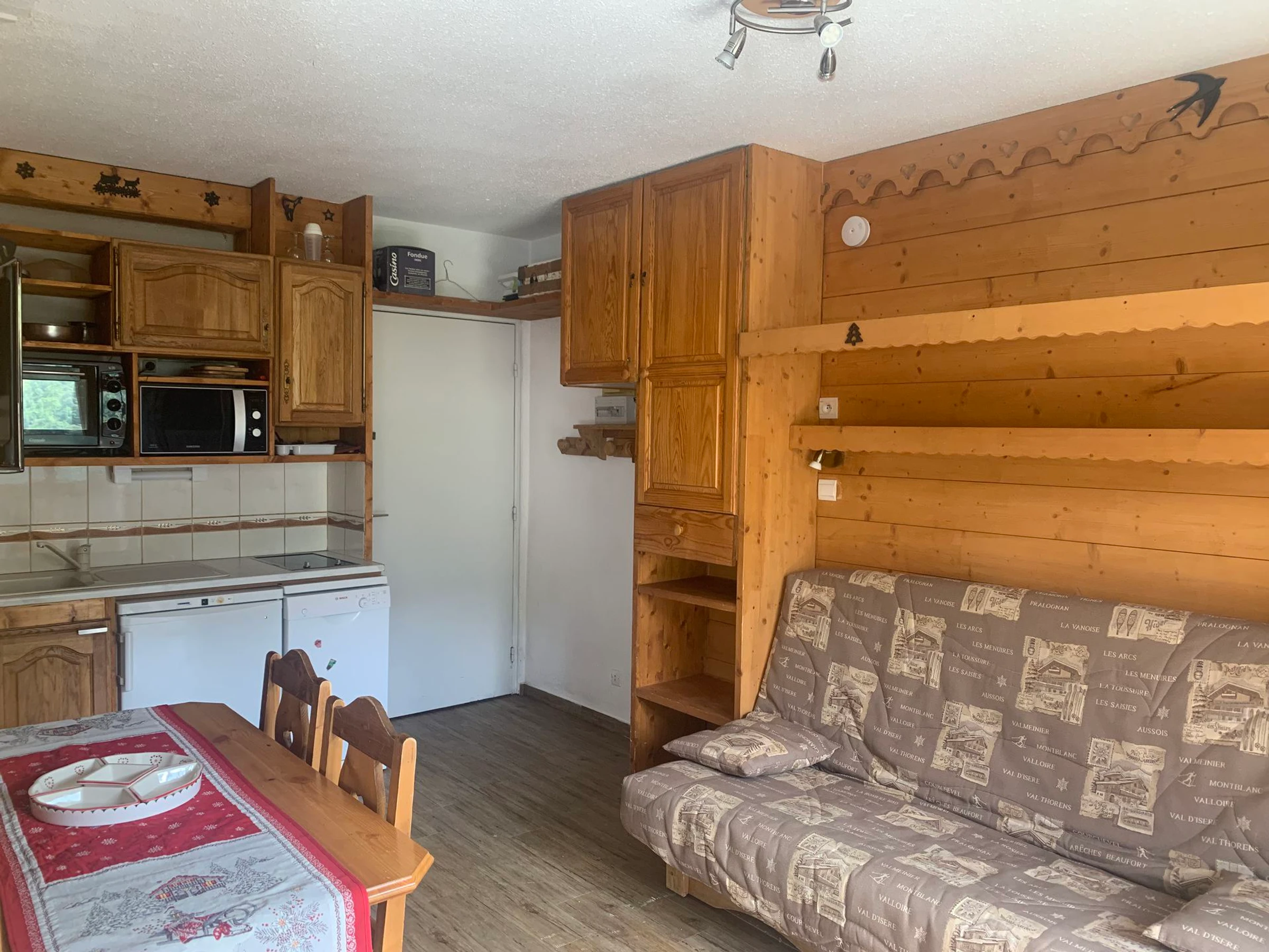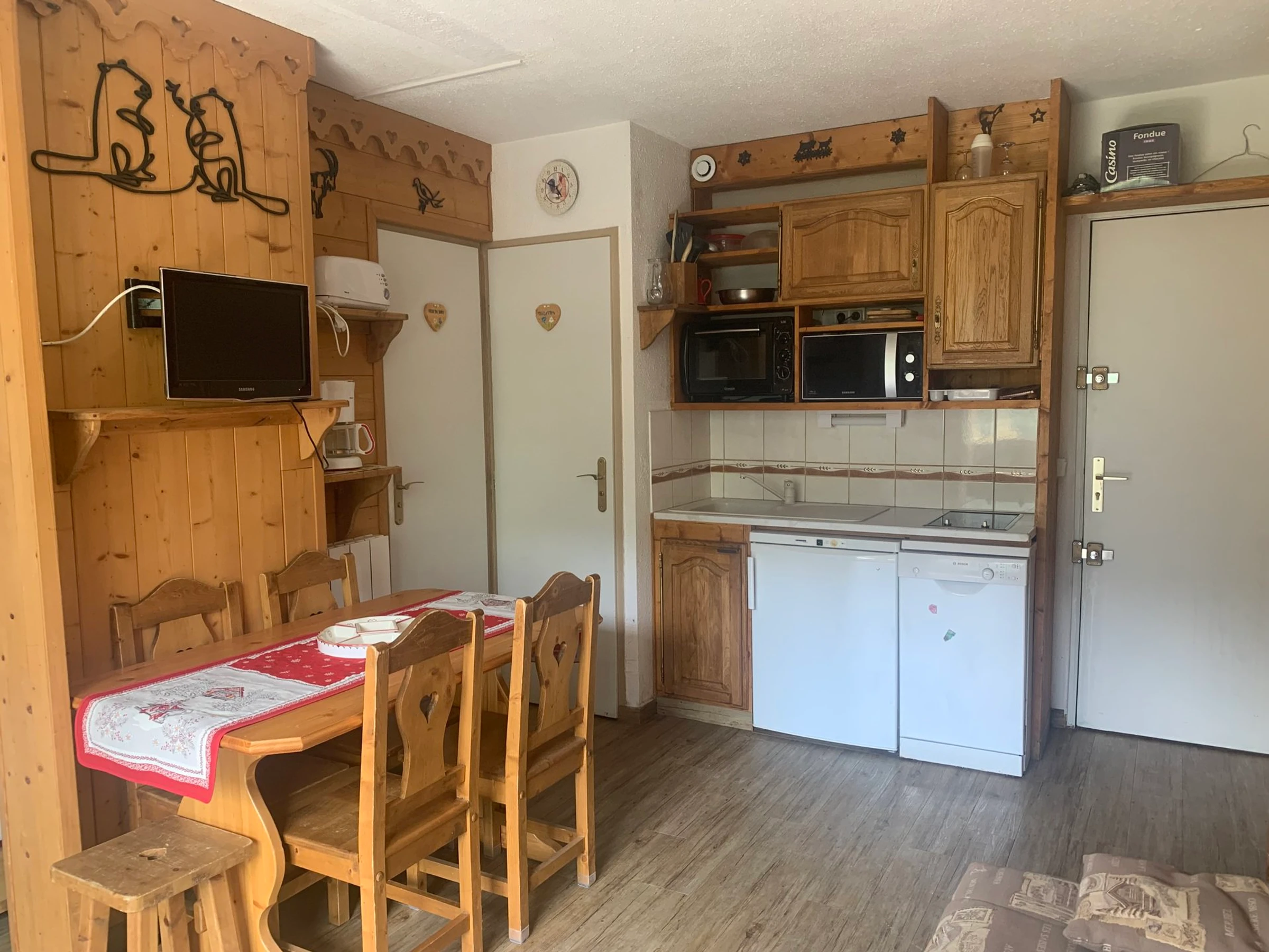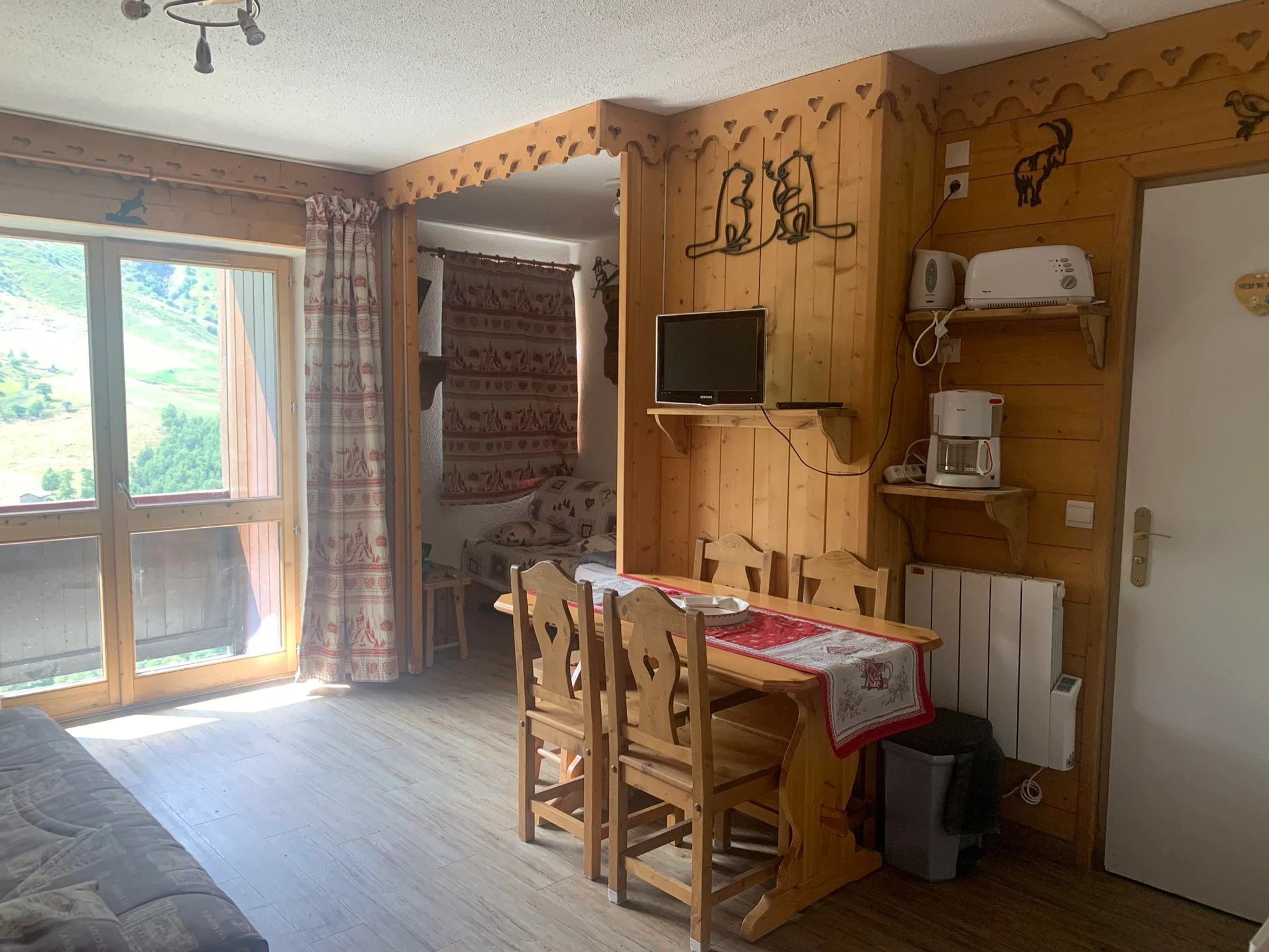 Résidence Jettay entrée "B" Bruant (N°77), 2 pièces séparées par une cloison coulissante pour 4 personnes 25m², au 3ème étage par ascenseur, balcon exposé Ouest, vue sur la montagne