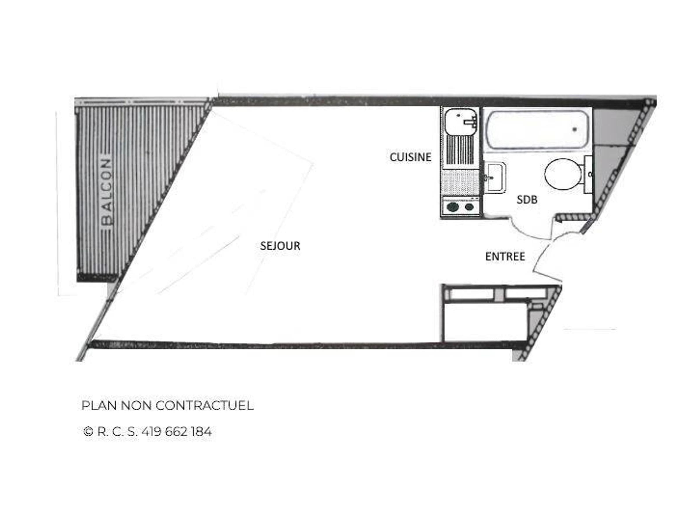 Résidence Grande Masse (N°508) entrée cage 1, studio pour 3 personnes 19m², au 5ème étage avec ascenseur, balcon exposé Sud