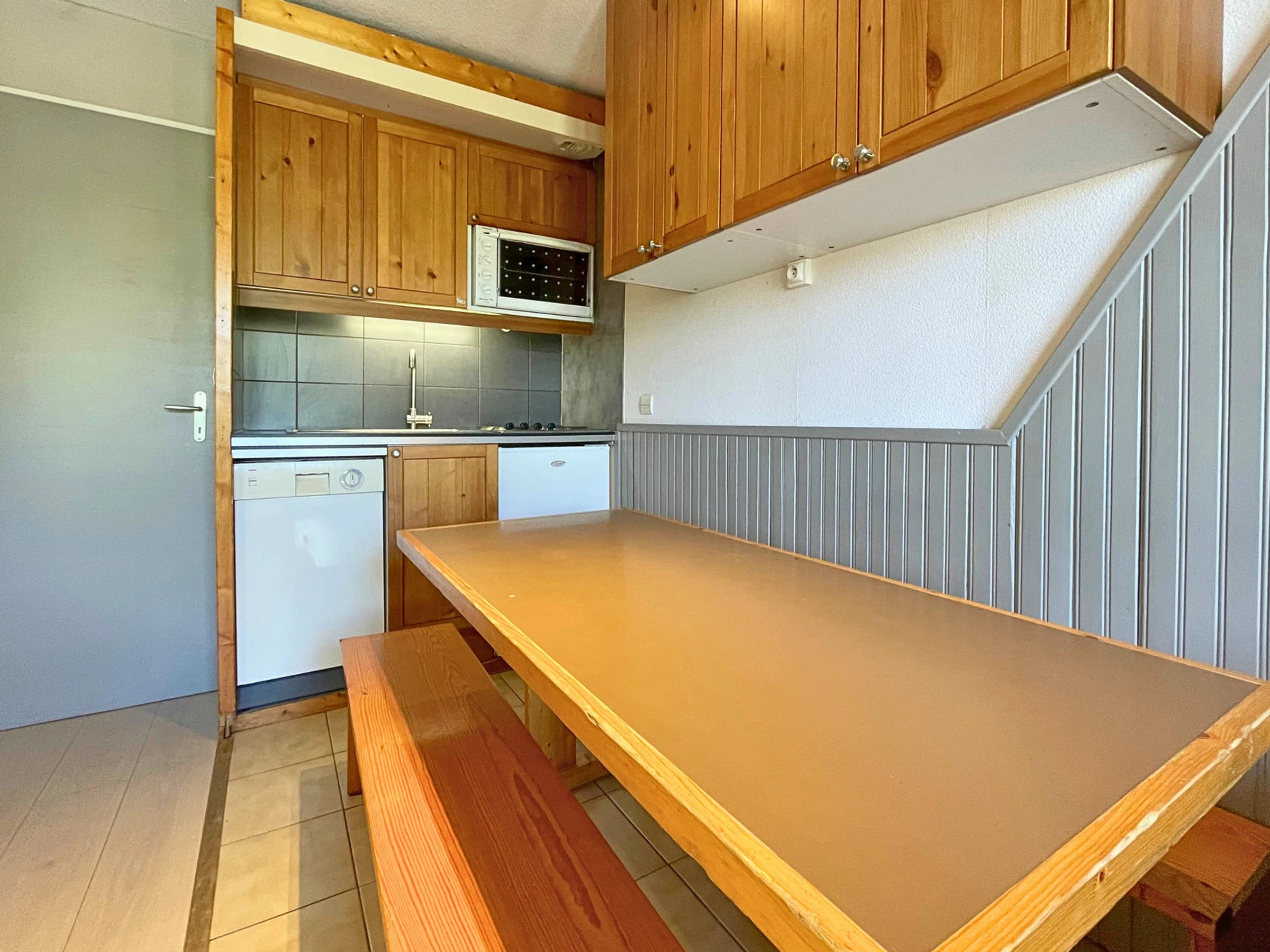 Résidence Le Villaret (N°205), studio divisible cabine pour 4 personnes 26m², au 2ème étage par ascenseur, balcon exposé Ouest, vue sur la montagne