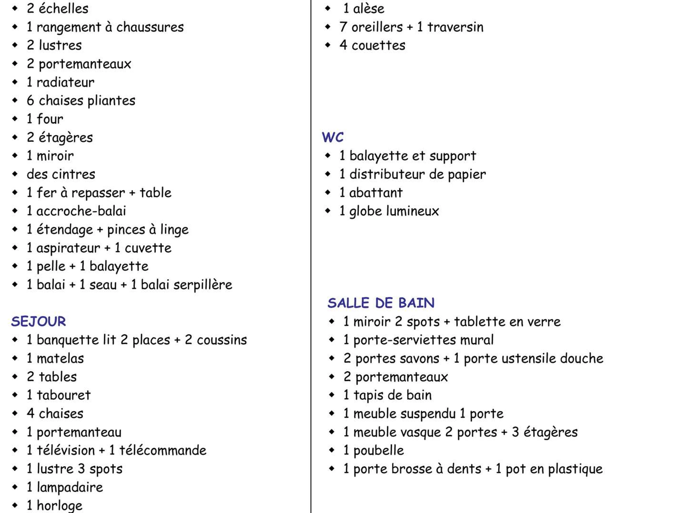 - Ménage fin de séjour : 70 €.