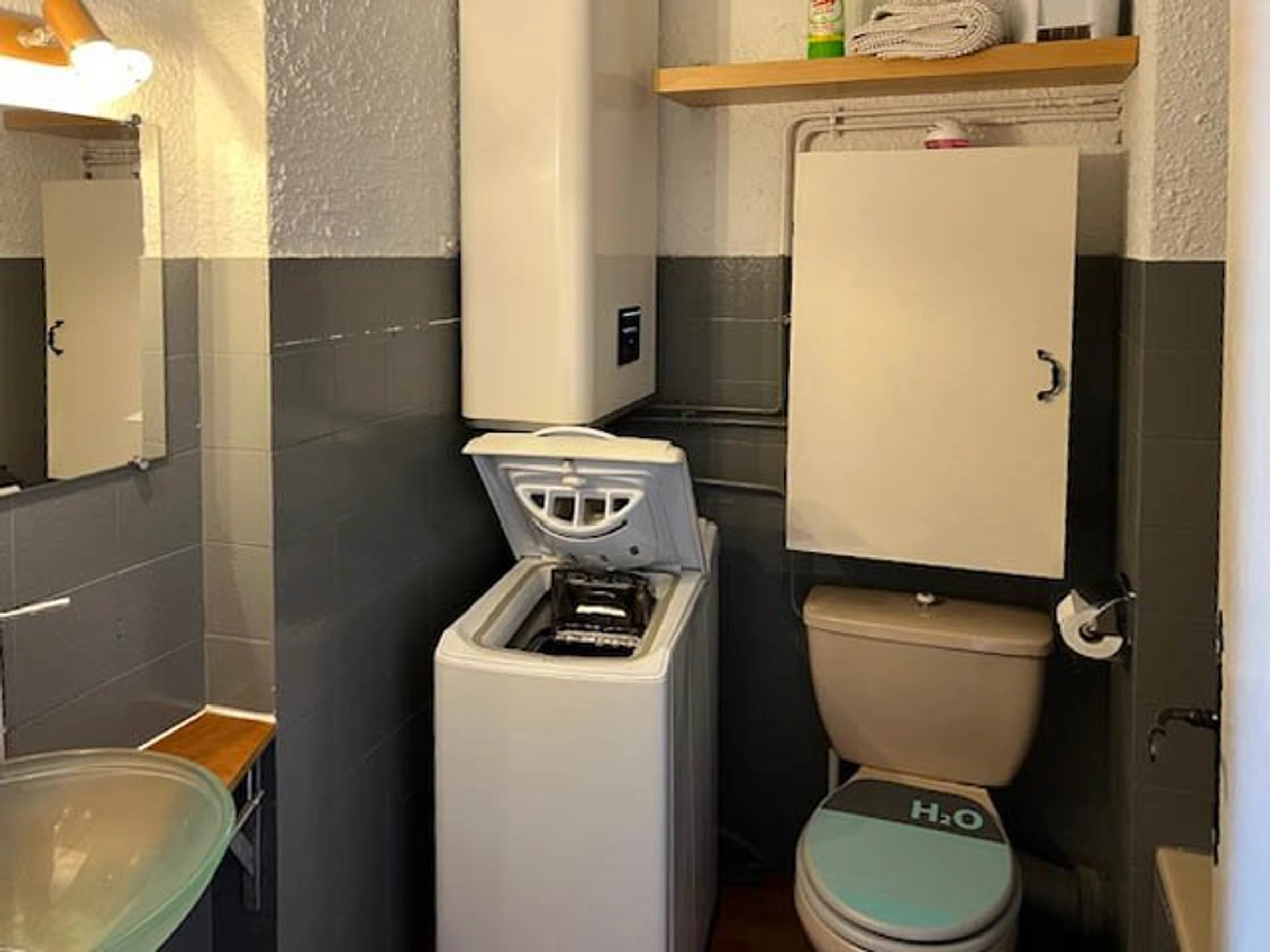 Petite Résidence au calme dans quartier de Prébois, au coeur des mélèzes, à 100 mètres du télésiège et à 400 mètres du centre station et des commerces, studio équipé pour 4 personnes comprenant une entrée avec 2 lits superposés 1 place, un séjour avec 1 banquette convertible 2 places, un coin cuisine ouvert sur le séjour, une salle de bains avec WC. Balcon exposition Ouest vue sur la vallée. Box à skis.