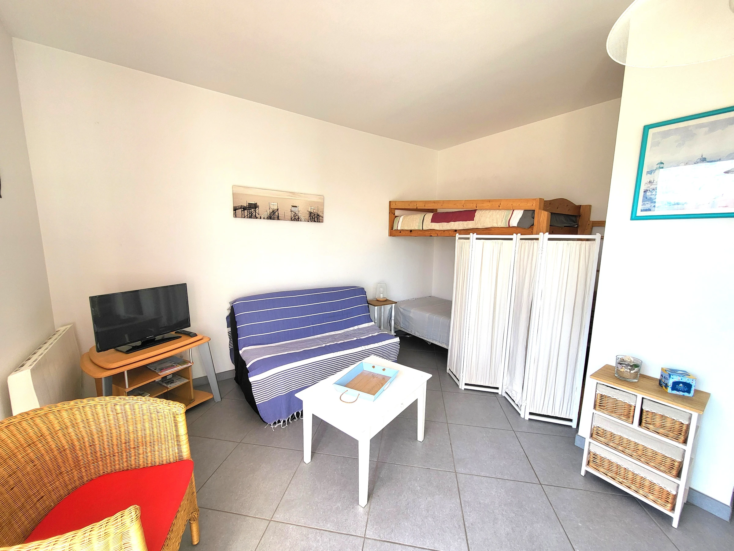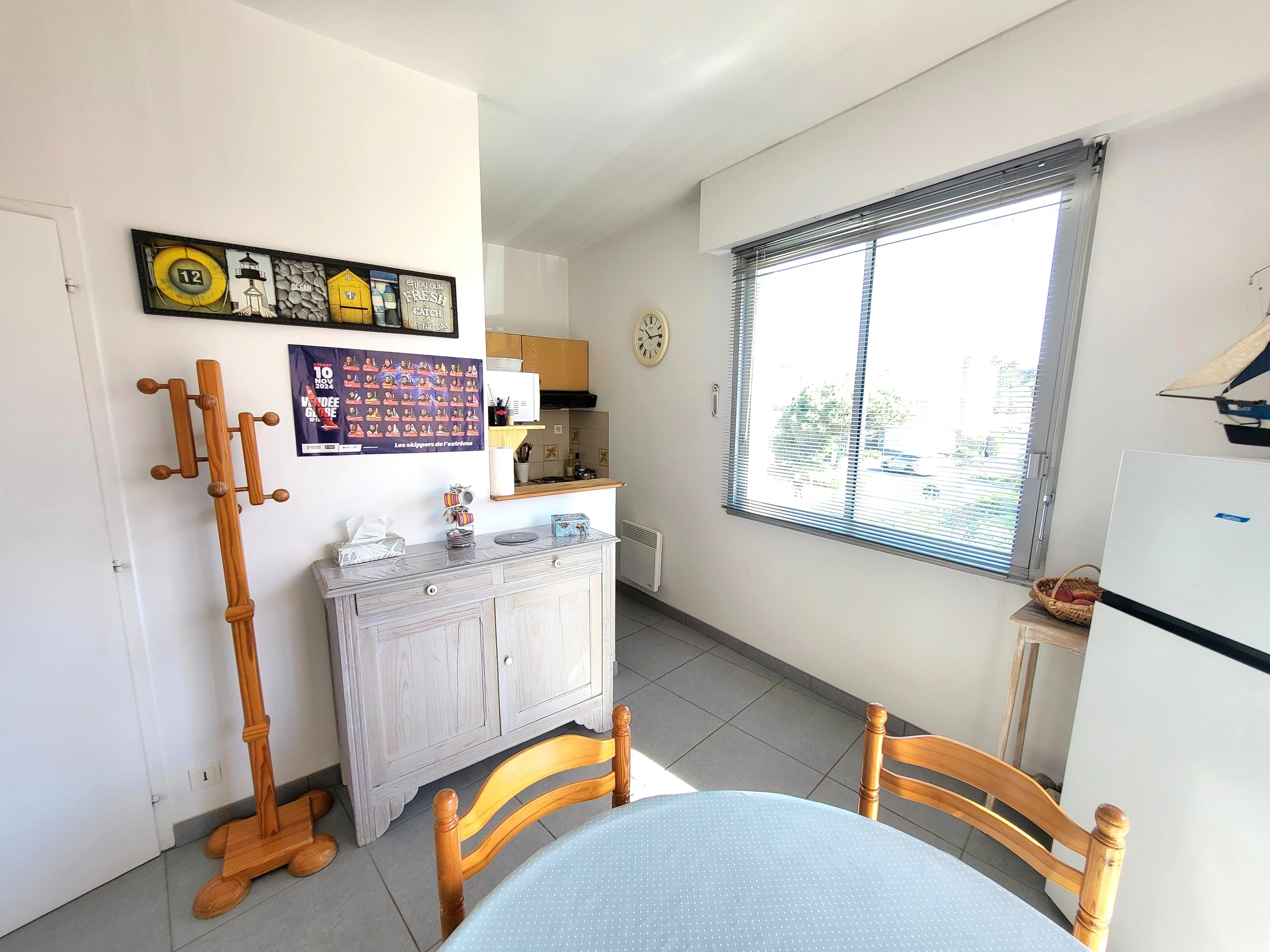 Installez-vous confortablement dans ce joli studio au cœur du quartier des Présidents aux Sables d’Olonne, un lieu de vie agréable où tout est réuni pour un séjour placé sous le signe de la détente et du bien-être. Situé dans une petite résidence calme, à seulement 200 mètres de la plage et à 50 mètres des commerces, cet appartement bénéficie d’un emplacement idéal pour profiter pleinement de la douceur de vivre vendéenne. Vous serez charmé par l’ambiance paisible de ce quartier proche du lac, de l’école de voile et de la Thalasso, parfait pour alterner activités nautiques, balades et moments de relaxation.