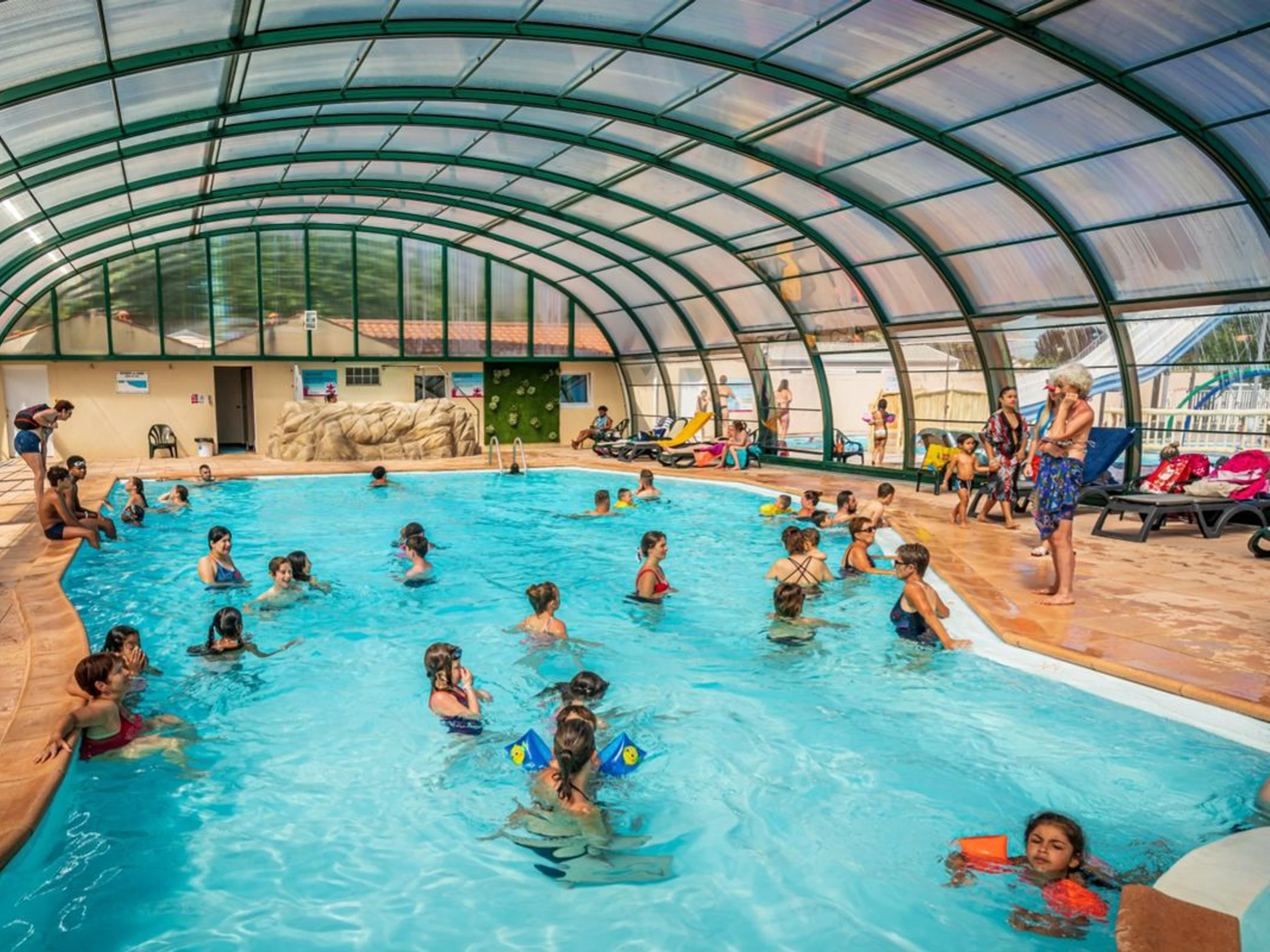 - Ouvert de l'ouverture u00e0 la fermeture du camping. 1er espace aquatique couvert accessible en traversant une route peu passante. Bassin couvert par un toit amovible, une pataugeoire, des jeux d'eau, un bain u00e0 remous et un bassin extu00e9rieur. rnLes horaires mentionnu00e9s sont u00e0 titre indicatif et sous ru00e9serve de modifications. L'accu00e8s aux espaces aquatiques peut u00eatre soumis u00e0 restrictions, selon les conditions climatiques et sanitaires, et d'u00e9ventuels travaux de maintenance.,