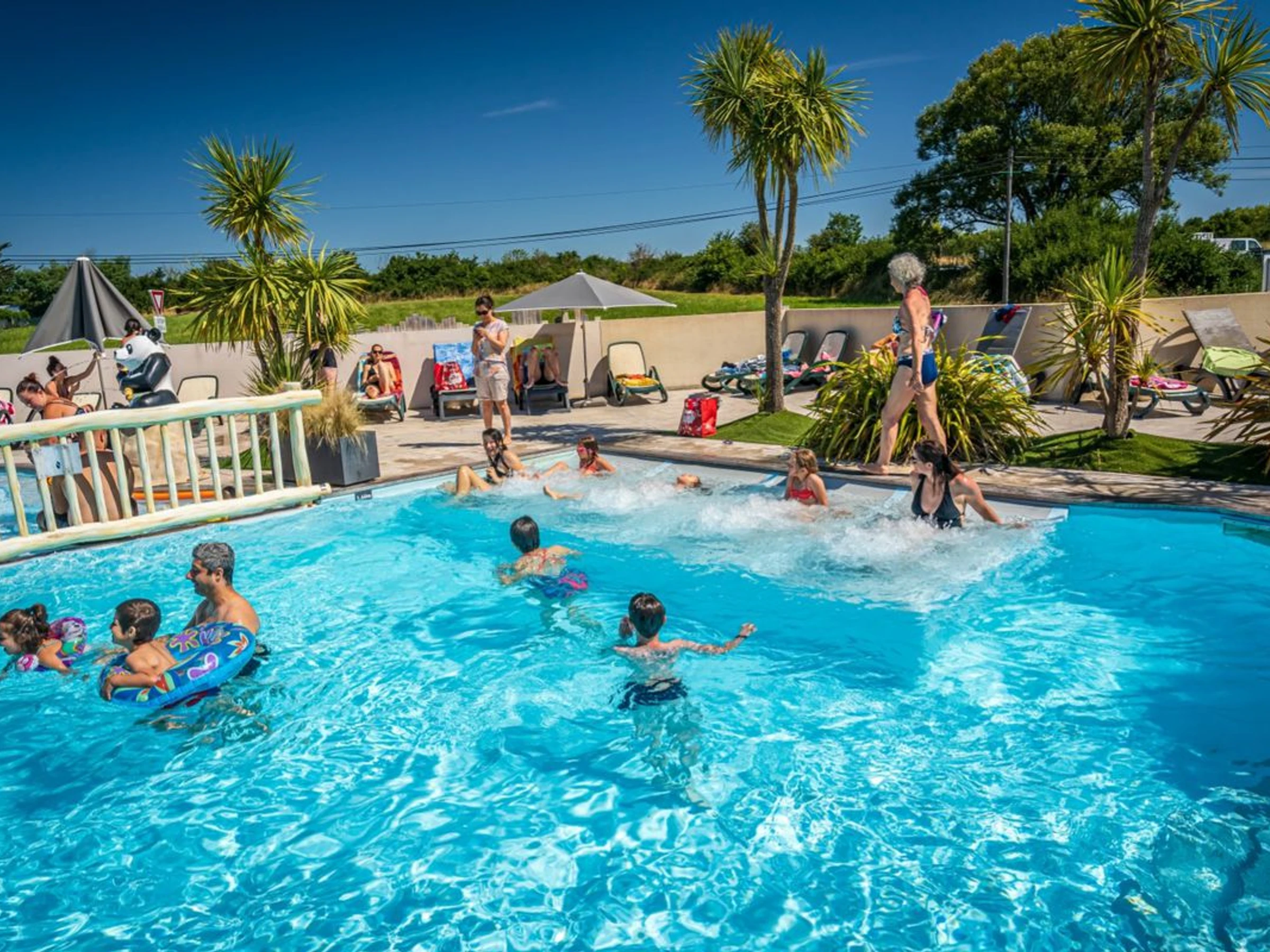 - 2 espaces aquatiques. 1er espace aquatique: bassin couvert avec toit amovible - bassin plein air - espace ludique avec des jeux d'eau - banquettes balnu00e9othu00e9rapie - toboggans. 2eme espace aquatique plein air: piscine extu00e9rieure - espace du00e9tente avec bains u00e0 remous - banquettes de massage et riviu00e8re de marche, avec jets de balnu00e9othu00e9rapie - une pataugeoire. Ouverts de l'ouverture u00e0 la fermeture du camping, sous ru00e9serve des bonnes conditions climatiques.,