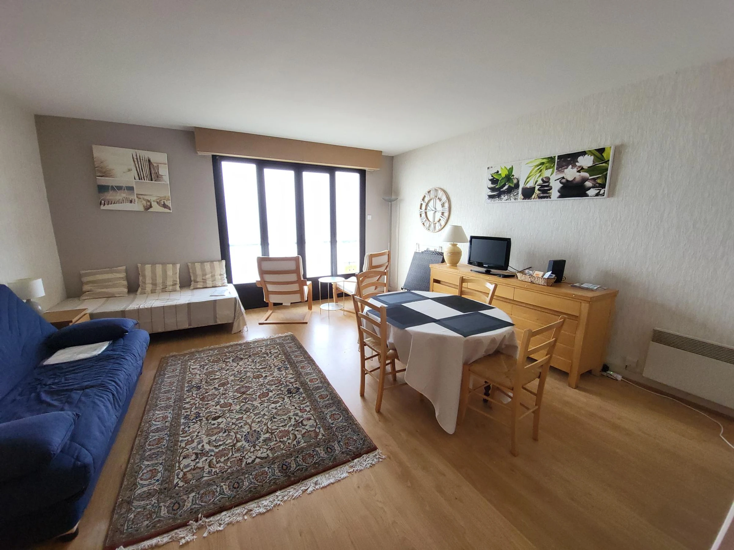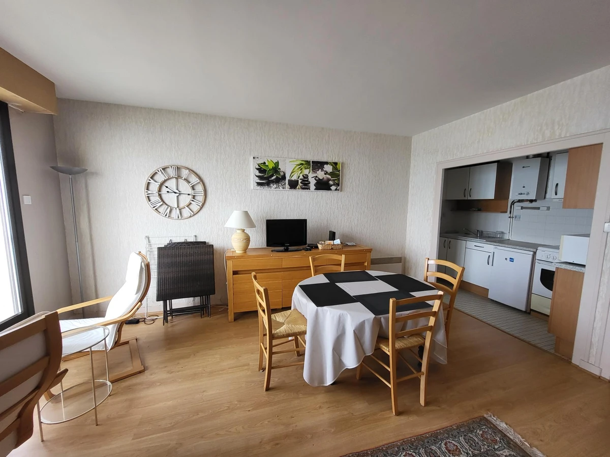 Nichée au quatrième étage d’une résidence avec ascenseur, cette location se distingue par son séjour lumineux ouvert sur un balcon équipé face à la mer. Le studio dispose d’une banquette lit de cent trente et d’un lit de quatre vingt dix, offrant des couchages pratiques et bien pensés. Le coin cuisine, fonctionnel et équipé d’un réfrigérateur, d’une gazinière trois feux gaz complétée d’une plaque électrique et d’un four, permet de préparer facilement vos repas de vacances.