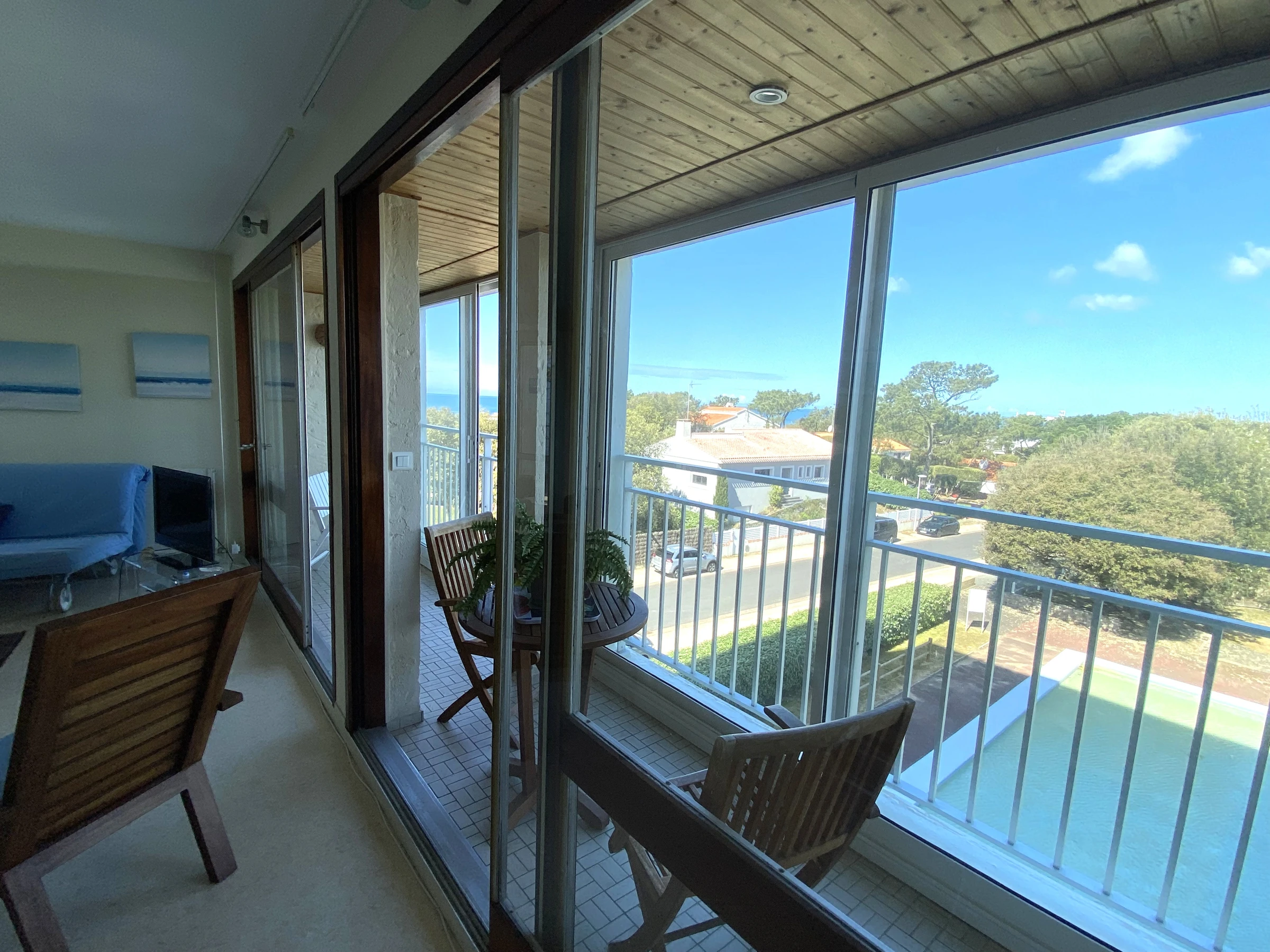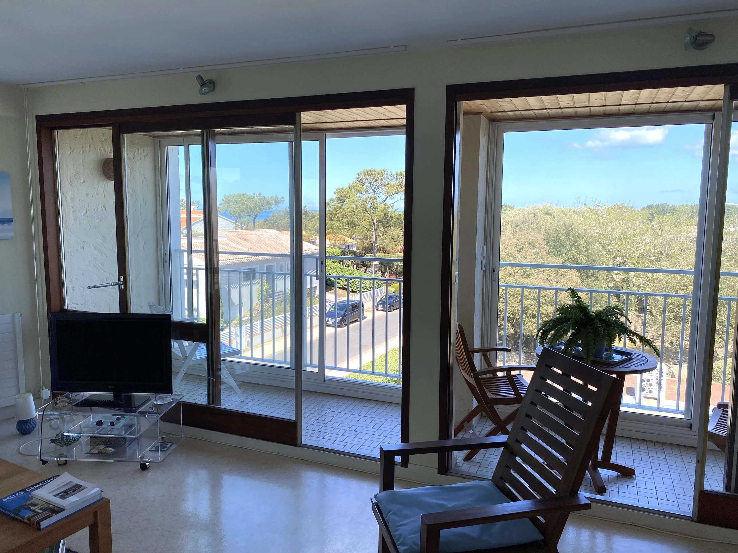Appartement jouissant d'une belle vue dégagée avec aperçu de mer et vue sur la pinède. Agréable avec sa loggia équipée, cette location, au 3ème étage avec ascenseur, est situé à 400 mètres de la plage et à 1400 mètres des commerces du petit bourg de la Pironnière. L'appartement se compose d'une entrée avec placard, une cuisine, un séjour avec une banquette-lit BZ de 160 et une chambre avec 1 lit de 140 - Salle de bains et WC séparés.