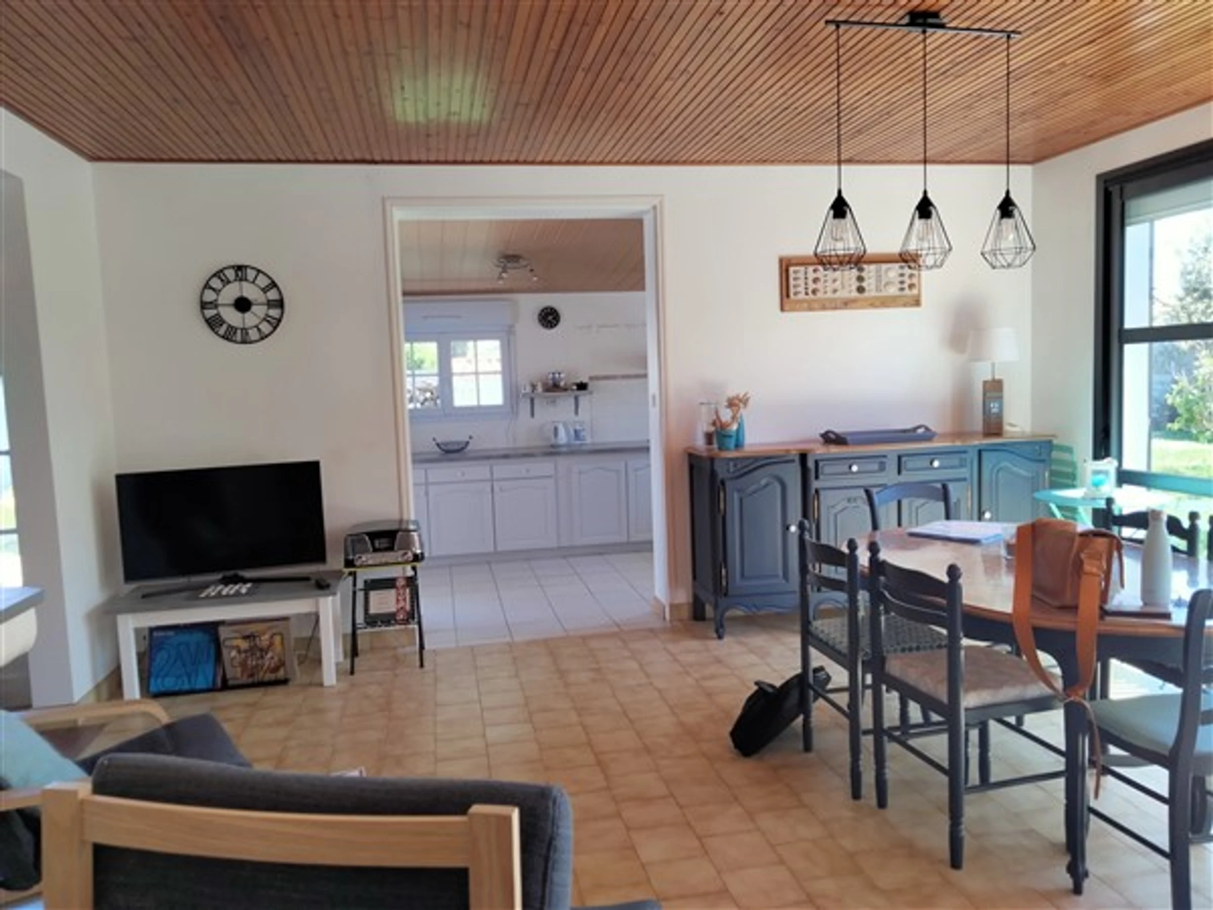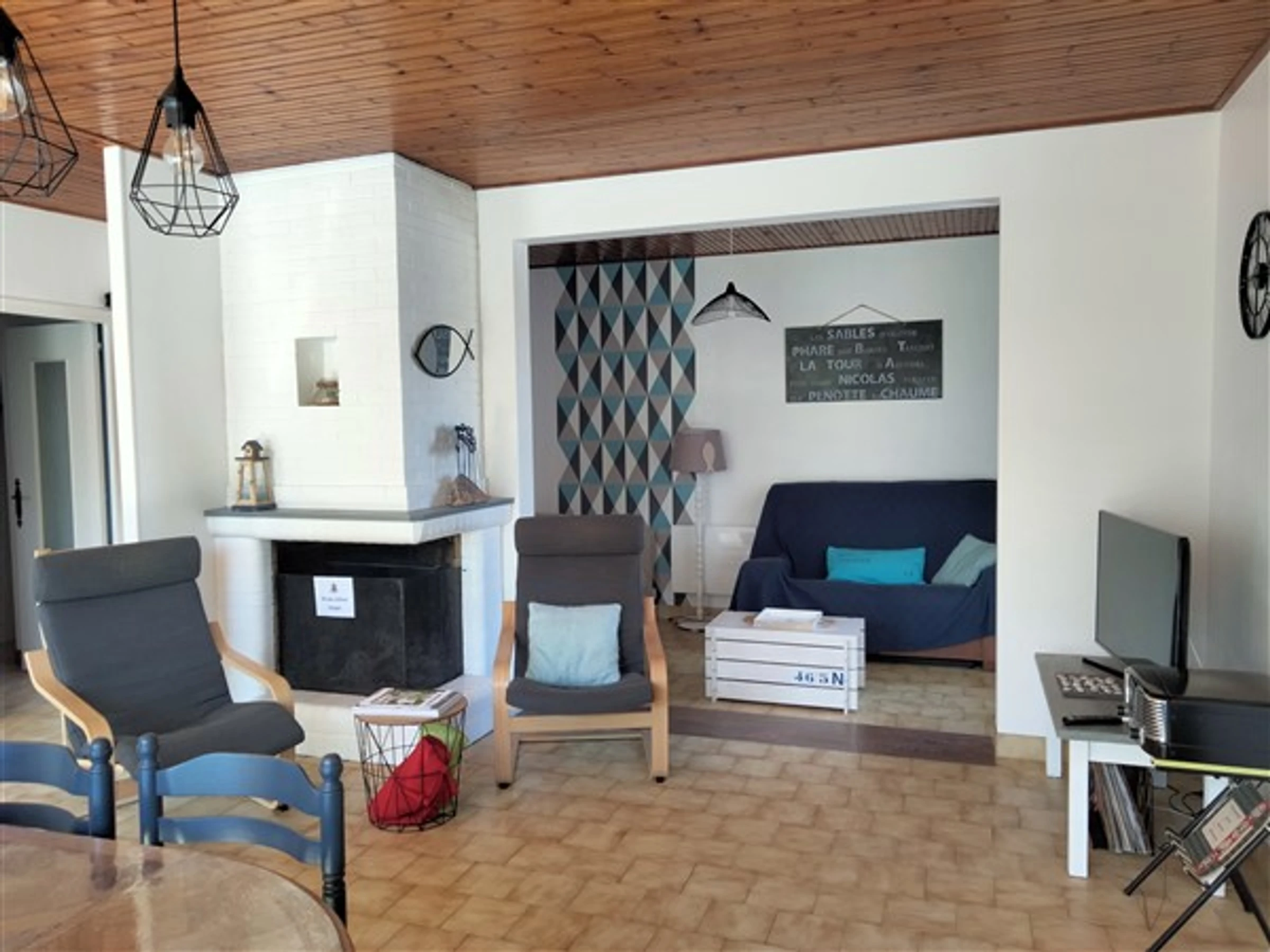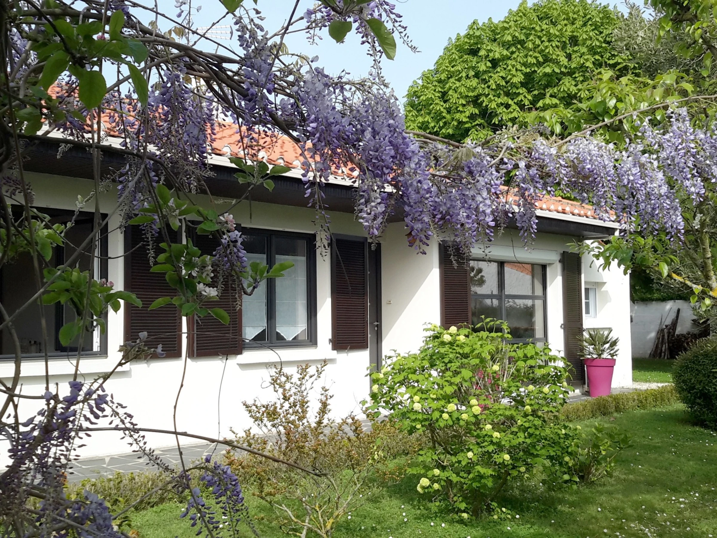 Belle maison de famille au cœur d'un beau jardin avec parking privé à deux pas du centre ville. Entrée, séjour/salon (TV), cuisine aménagée (réfrigérateur, congélateur, four, plaque induction, lave-vaisselle) – wc , chambre (lit 140), salle d'eau, chambre (lit 140), chambre (2 lits 90 ), garage avec lave-linge. Accès wifi. Pas d'animaux2 vélos en état d'usage à disposition.dresse : 14, impasse Riblier - 85100 LES SABLES