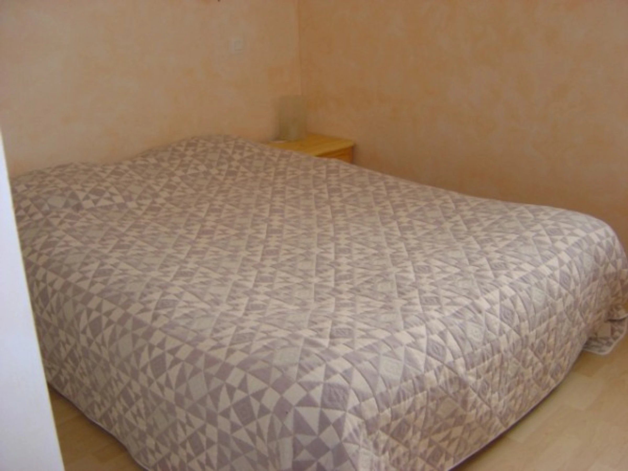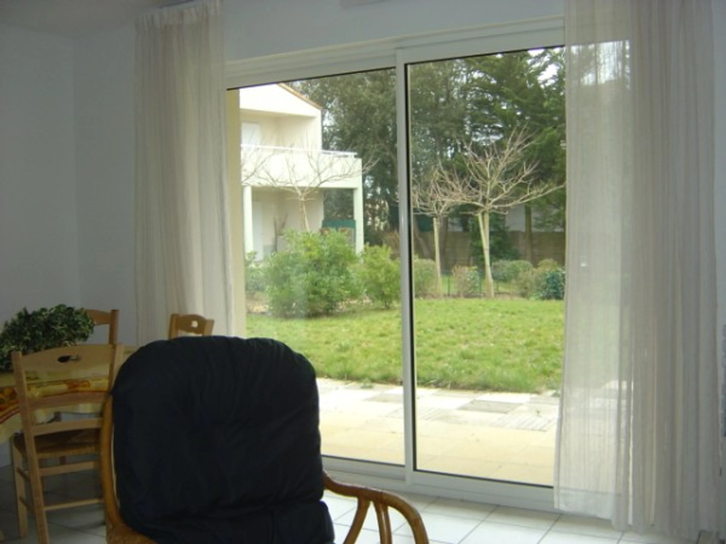 Appartement au rez-de-chaussée d'une petite résidence avec terrasse et jardinet. Entrée, Salle de bains (baignoire, lavabo sur meuble, sèche-serviette) - 1 chambre (1 lit 140) avec placard - 1 chambre (2 lits 90) avec placard - - wc - séjour/salon donnant sur terrasse et jardinet (TV) - cuisine américaine équipée (réfrigérateur/congélateur, micro-ondes, gazinière avec 4 plaques électrique, hotte) -Buanderie (Lave-linge) Emplacement parking privé dans la résidence. Plage à 900 m environ. Commerces à proximité.