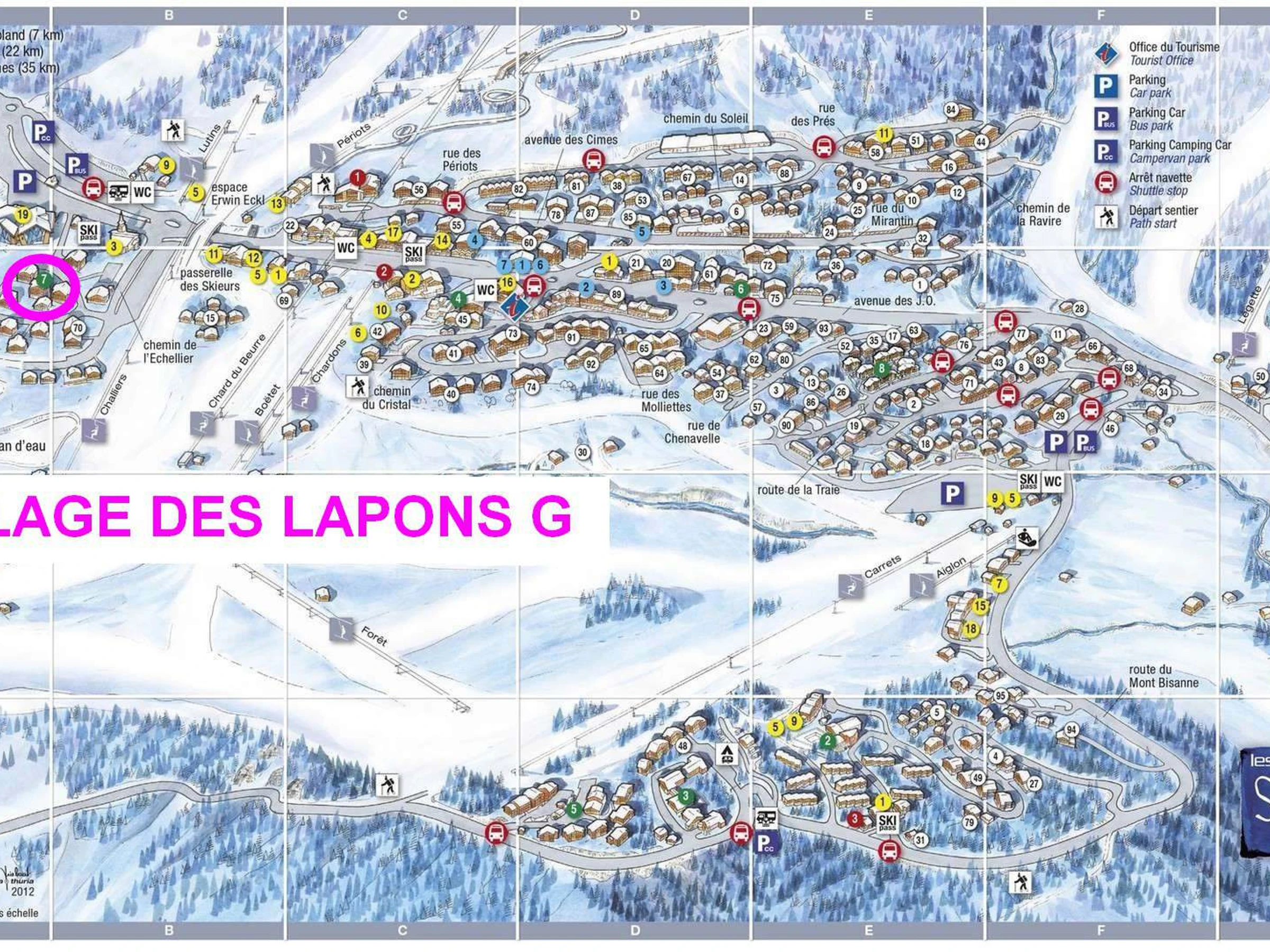 Orientation : Nord avec vue sur la chapelle, les pistes et la station.