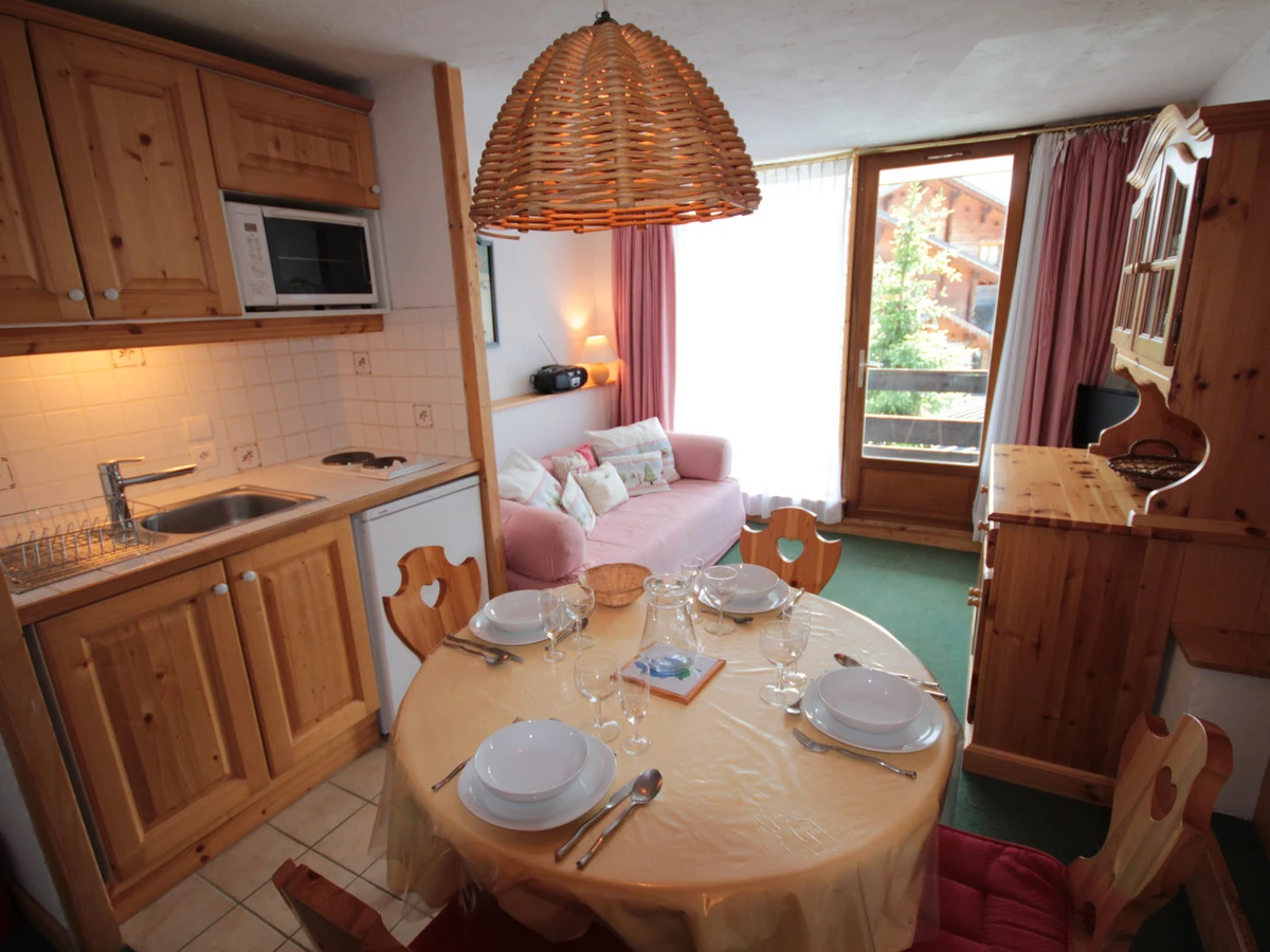 Ambiance montagne pour le grand mont bât 1 surplombant la pharmacie et l'av des jo des Saisies. Très pratique, car proche de tout, pistes et commerces sont à 50m tout comme les écoles de skis ! 2 accès : Rue des périots, puis 2 niv à descendre ou 199 av des jo, monter 2 étages via escalier de la banque de savoie.