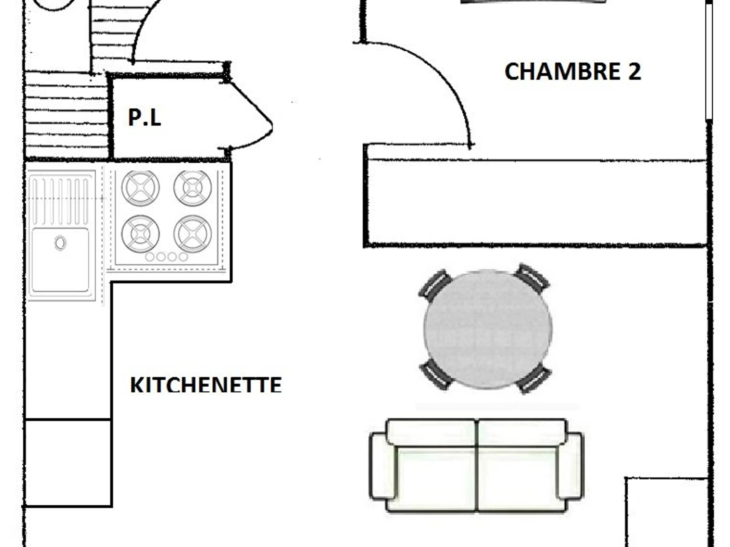 L'appartement se compose d'une kitchenette équipée, d'un séjour, d'une chambre avec deux fois deux lits superposés (4x80), (NB: le lit supérieur d'un lit superposé est interdit aux - de 6 ans, d'une deuxième chambre avec un lit 140, d'une salle d'eau et d'un wc séparé.