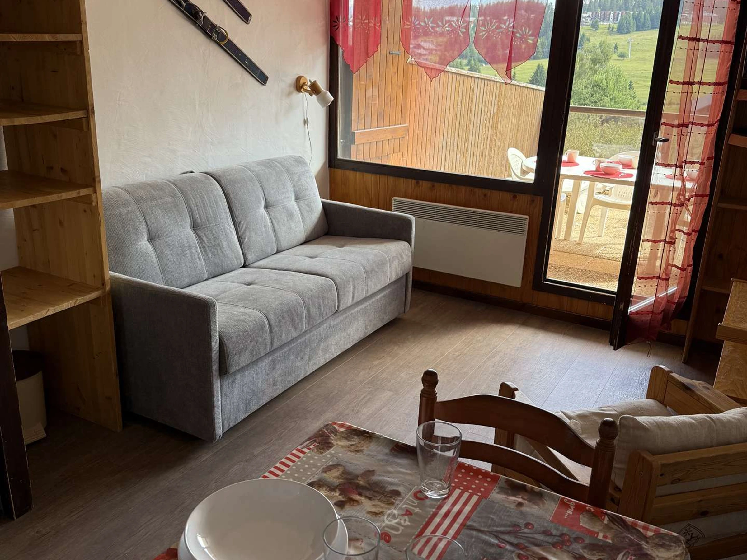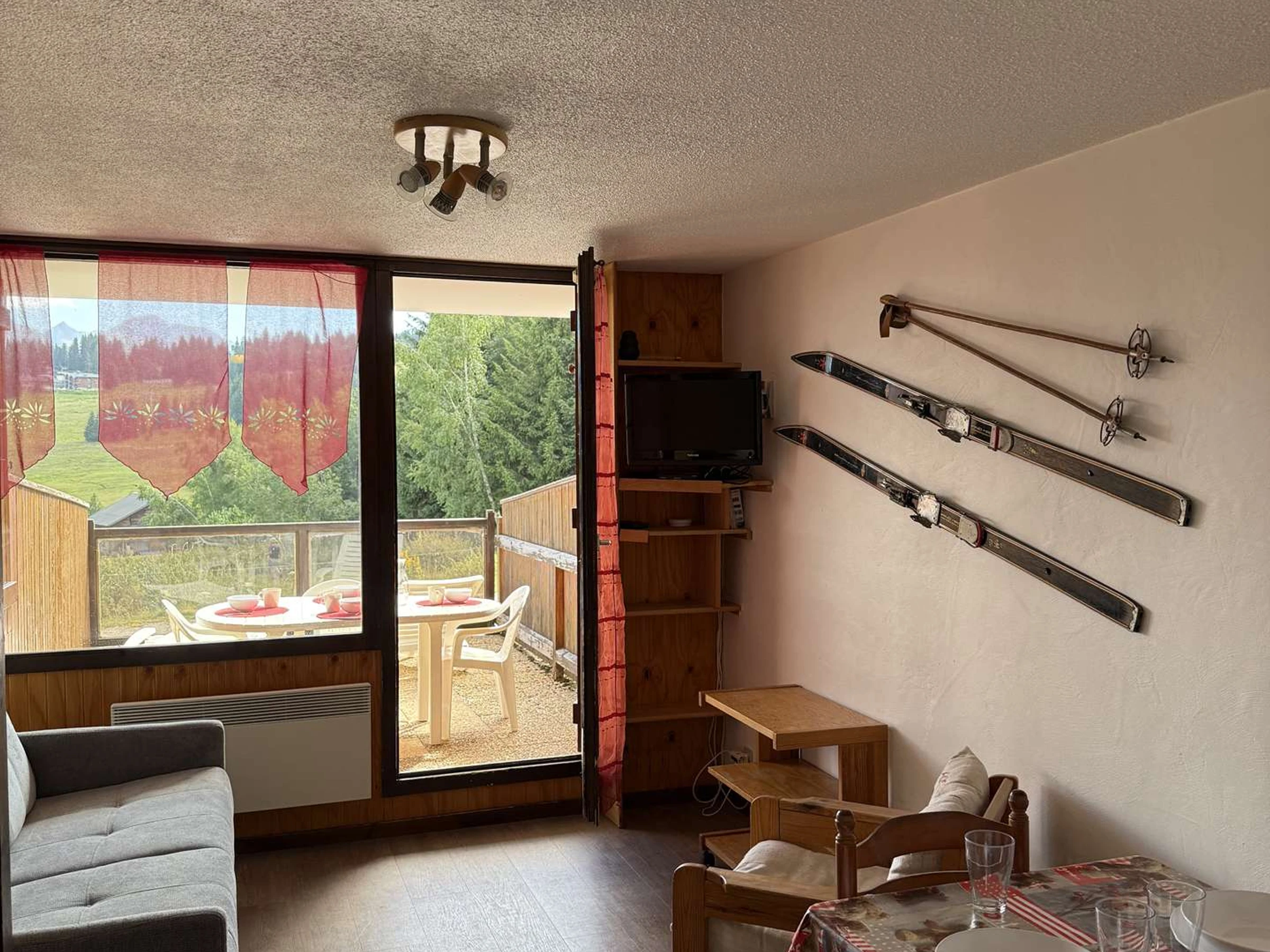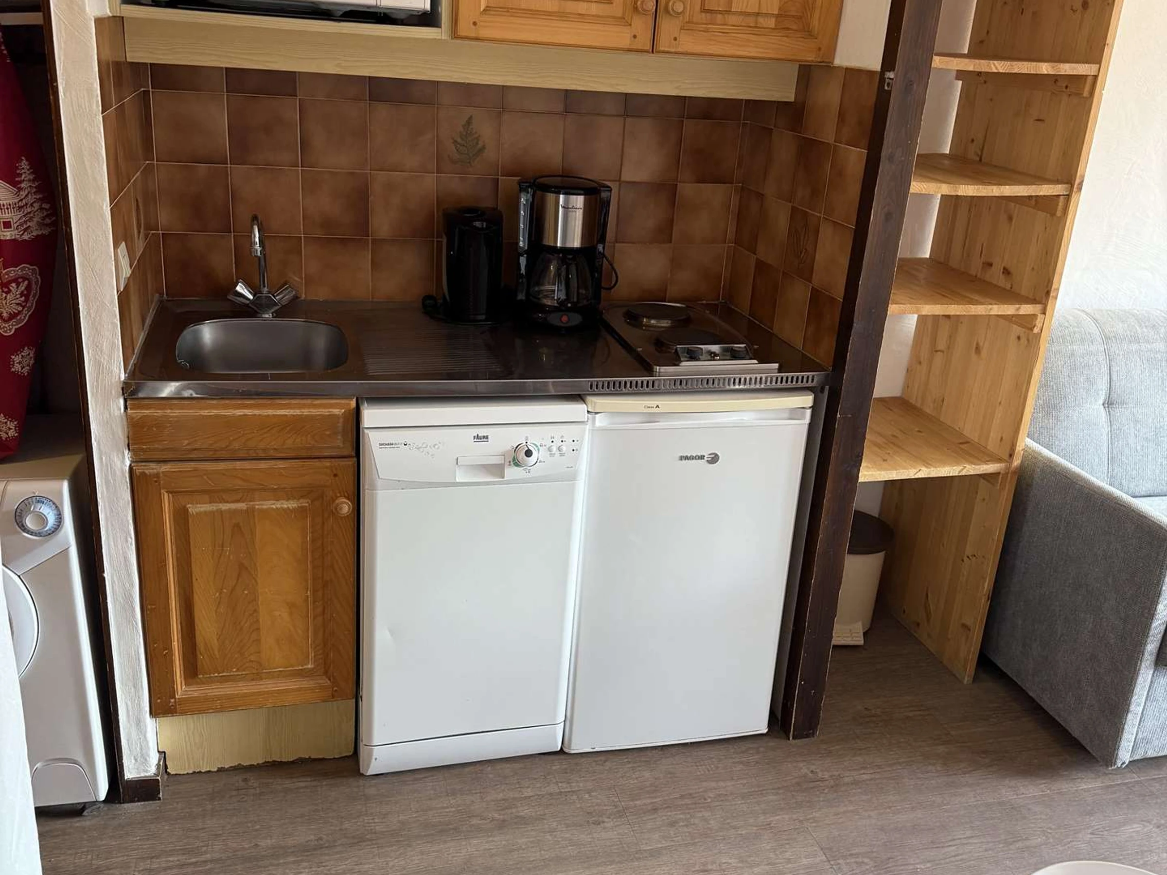 L'appartement comprend une kitchenette équipée, un séjour avec un banquette BZ 140, une chambre avec lits superposés 2x90, une salle d'eau et un WC séparé.