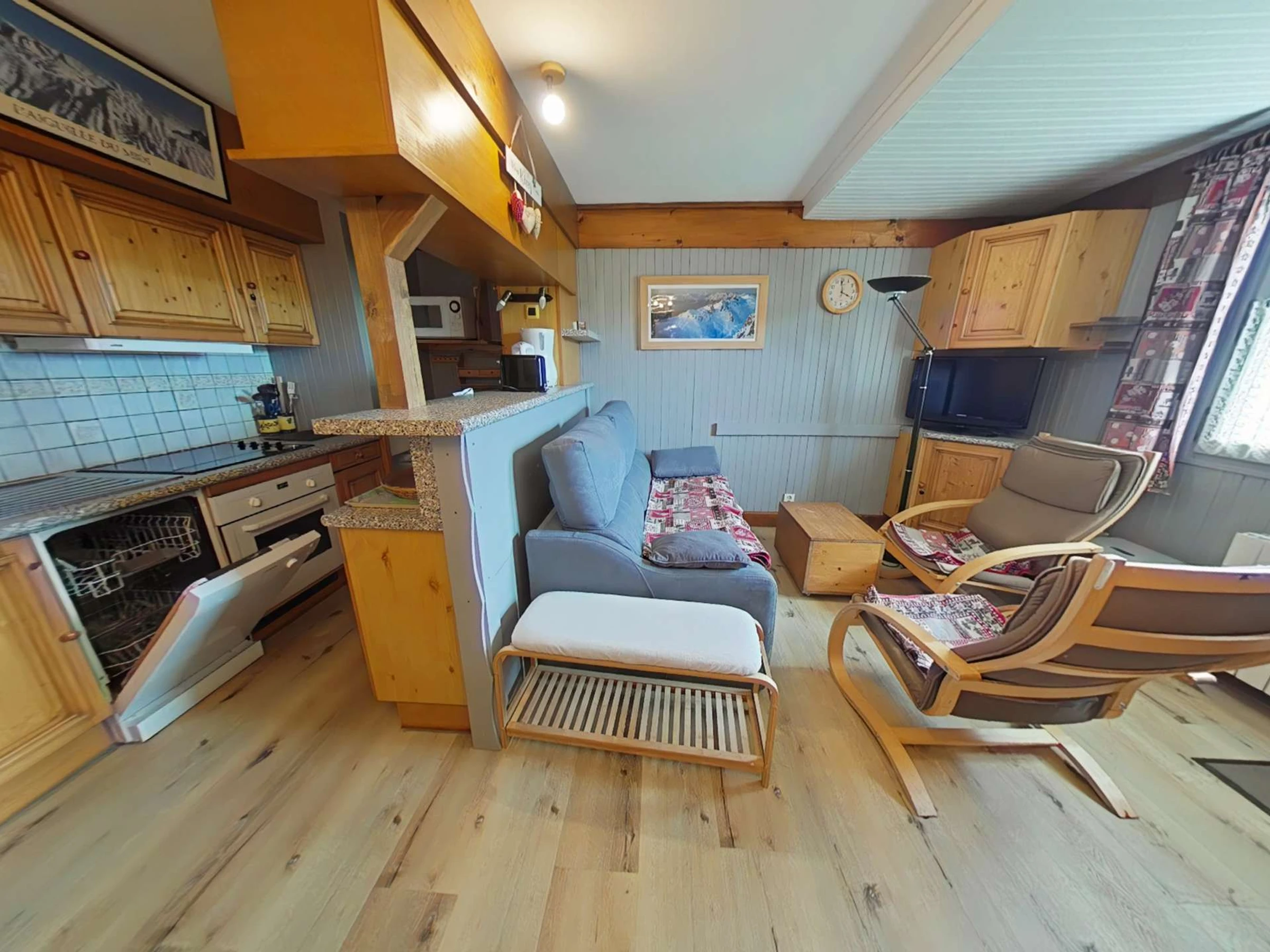 L'appartement se compose d'un séjour avec un canapé RAPIDO 140 et une kitchenette équipée ouverte, d'une chambre borgne avec un lit 140, d'une alcôve avec lits superposés 2x90 (NB : le lit supérieur d'un lit superposé est interdit aux - 6 ans), d'une salle d'eau et WC séparé.