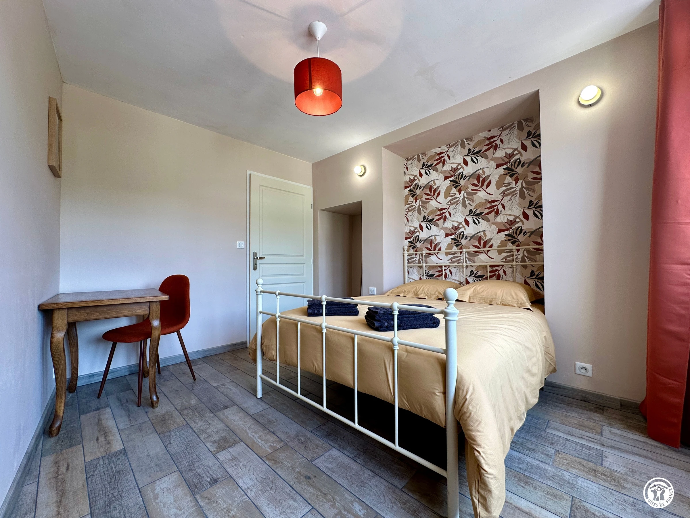 À l’étage, 1 chambre pour trois personnes dotée d'un lit 140cm et' d'un lit 80x190cm. WC séparés.