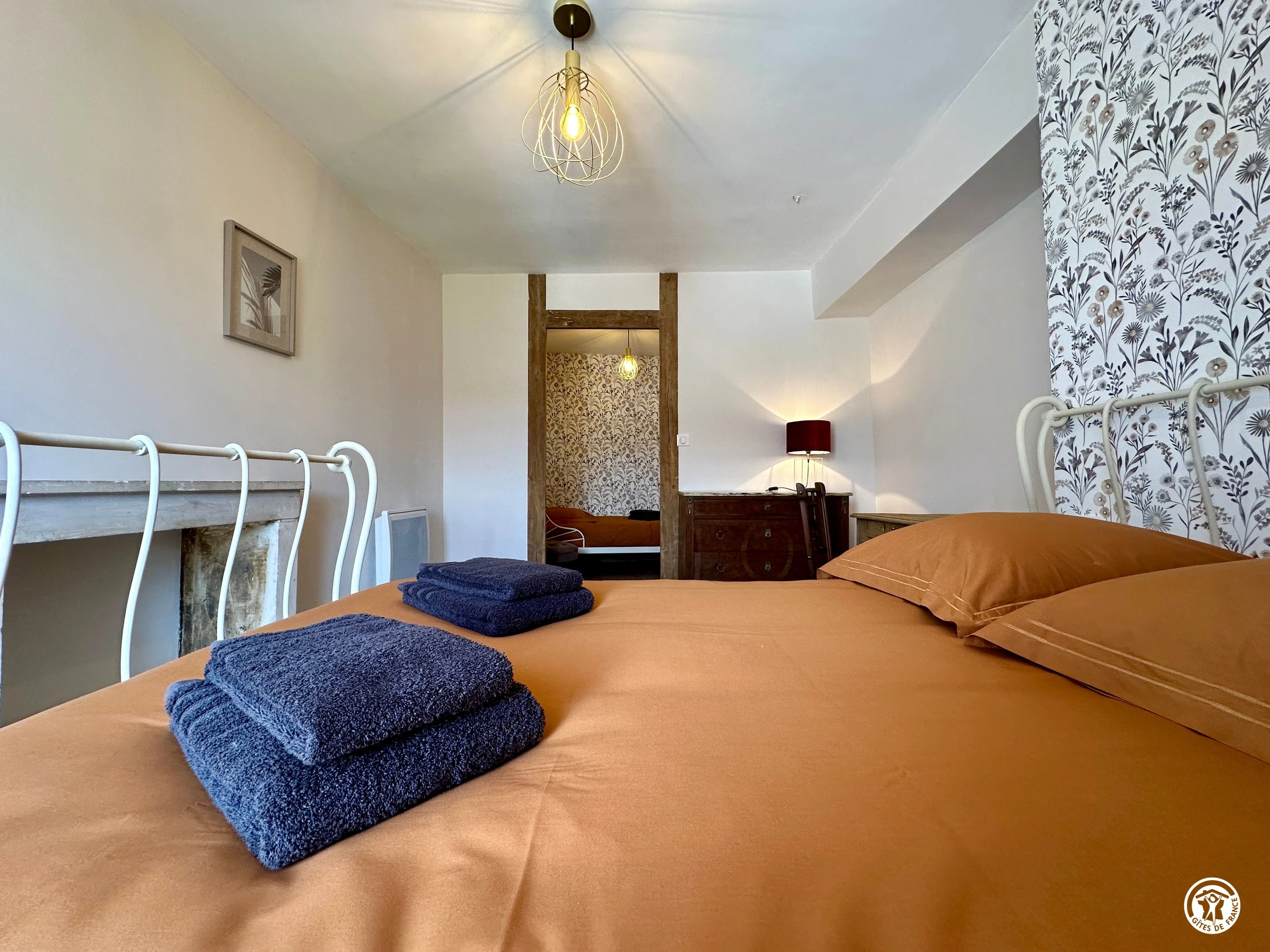 Idéalement situé au centre du village, le long de la rue principale, ce gîte chaleureux peut accueillir 5 personnes (ou formule 8 personnes sous la référence : H21G030711). Entièrement réhabilité avec soin par le propriétaire, apiculteur durant son temps libre, il a su préserver l’âme de la maison en valorisant des matériaux nobles et en conservant l’authenticité du lieu. Résultat : un hébergement plein de cachet, où confort moderne et charme de l’ancien se rencontrent harmonieusement. Au RDC, vous profitez d’une grande pièce de vie lumineuse, composée d’un salon/ séjour avec poêle à bois (bois fourni) et TV et d’une cuisine ouverte parfaitement équipée, baignée de lumière grâce à une large baie vitrée donnant une accès direct au jardin. Une chambre dotée d’un lit 140cm ainsi qu’une salle d’eau avec douche à l’italienne et WC complètent ce niveau.