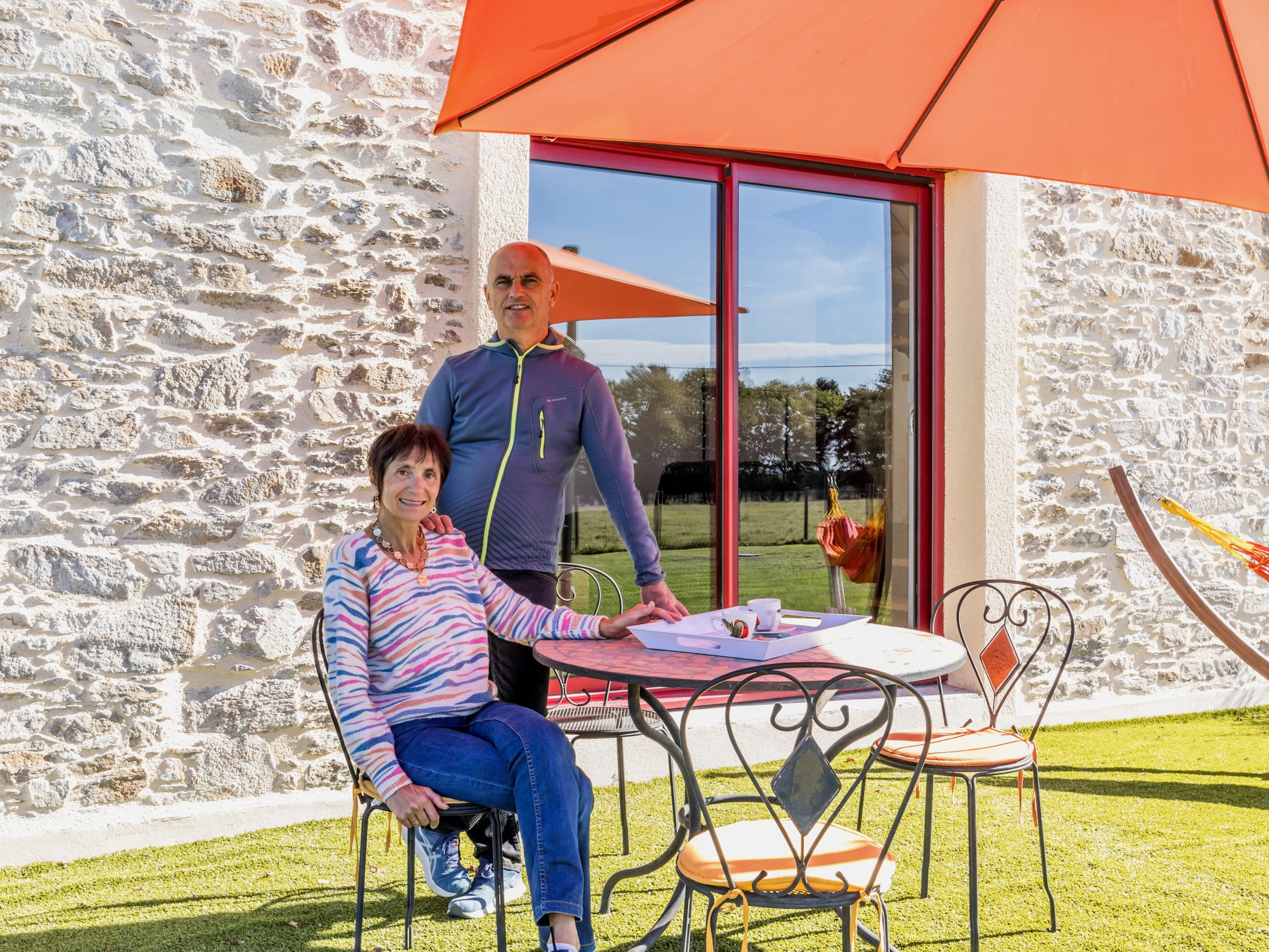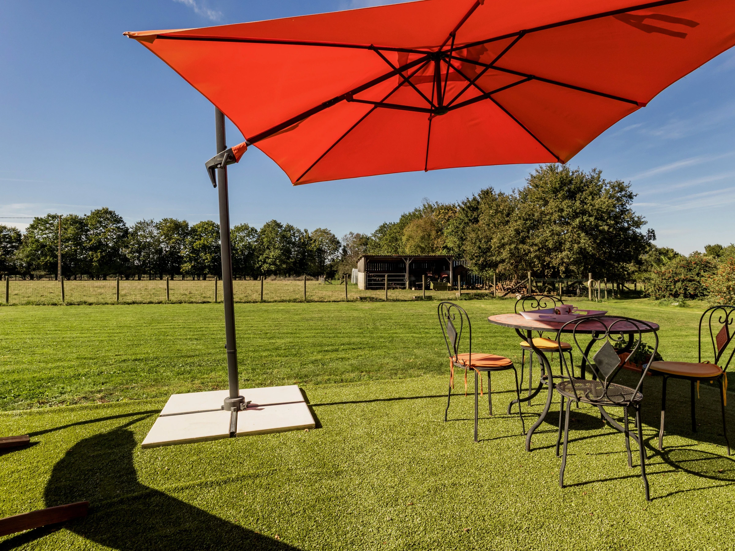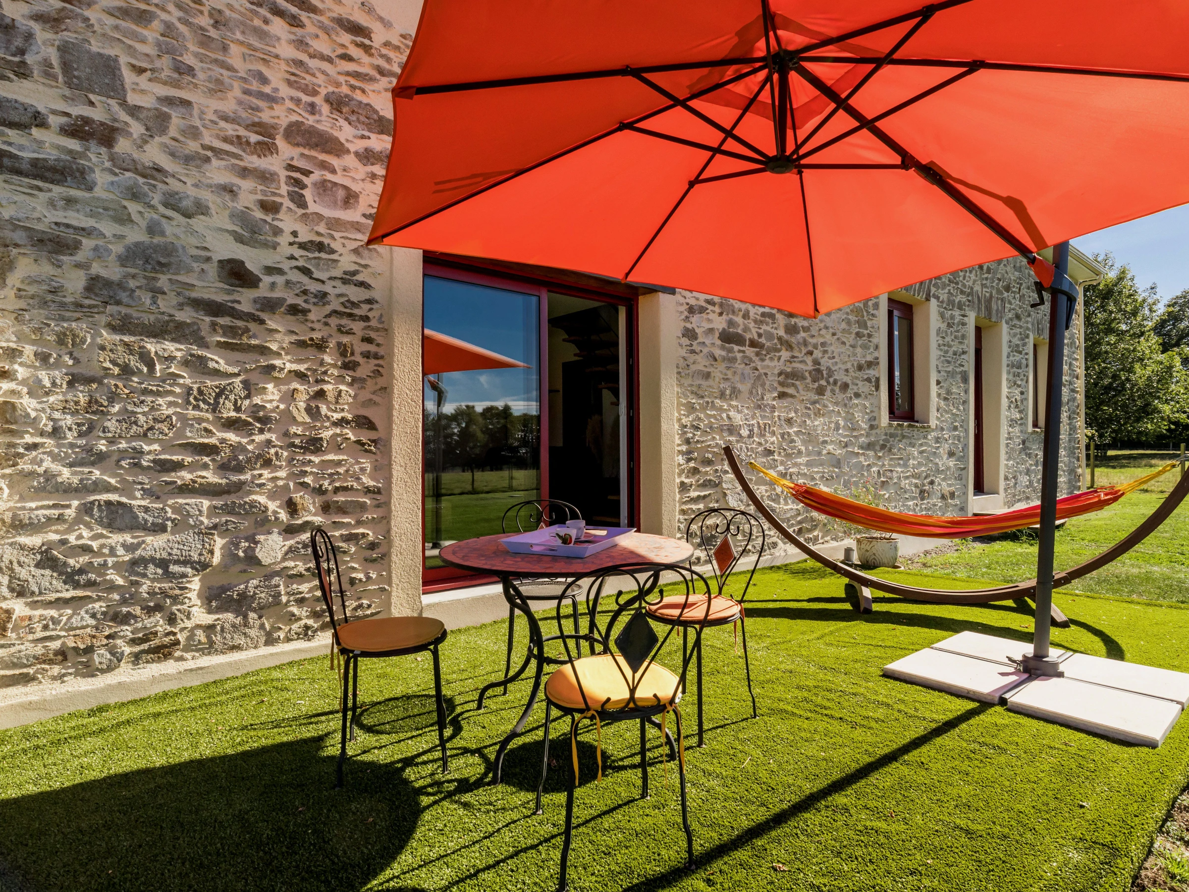Terrasse et vaste espace extérieur non clos de 900 m² avec vue dégagée sur la nature et offrant une tranquillité absolue (sur parcelle close de 3000 m² commune avec les propriétaires). Ping-pong à disposition.