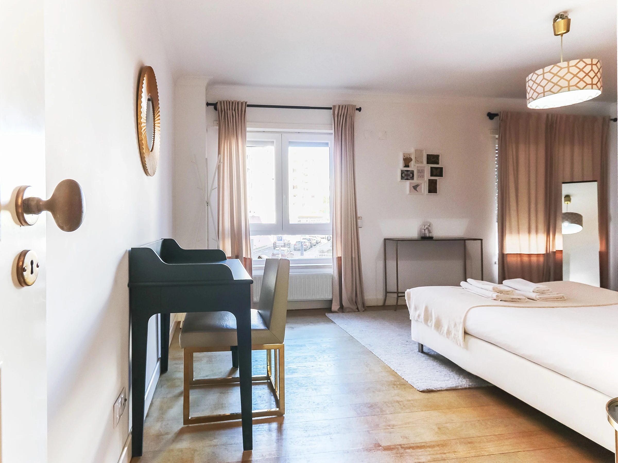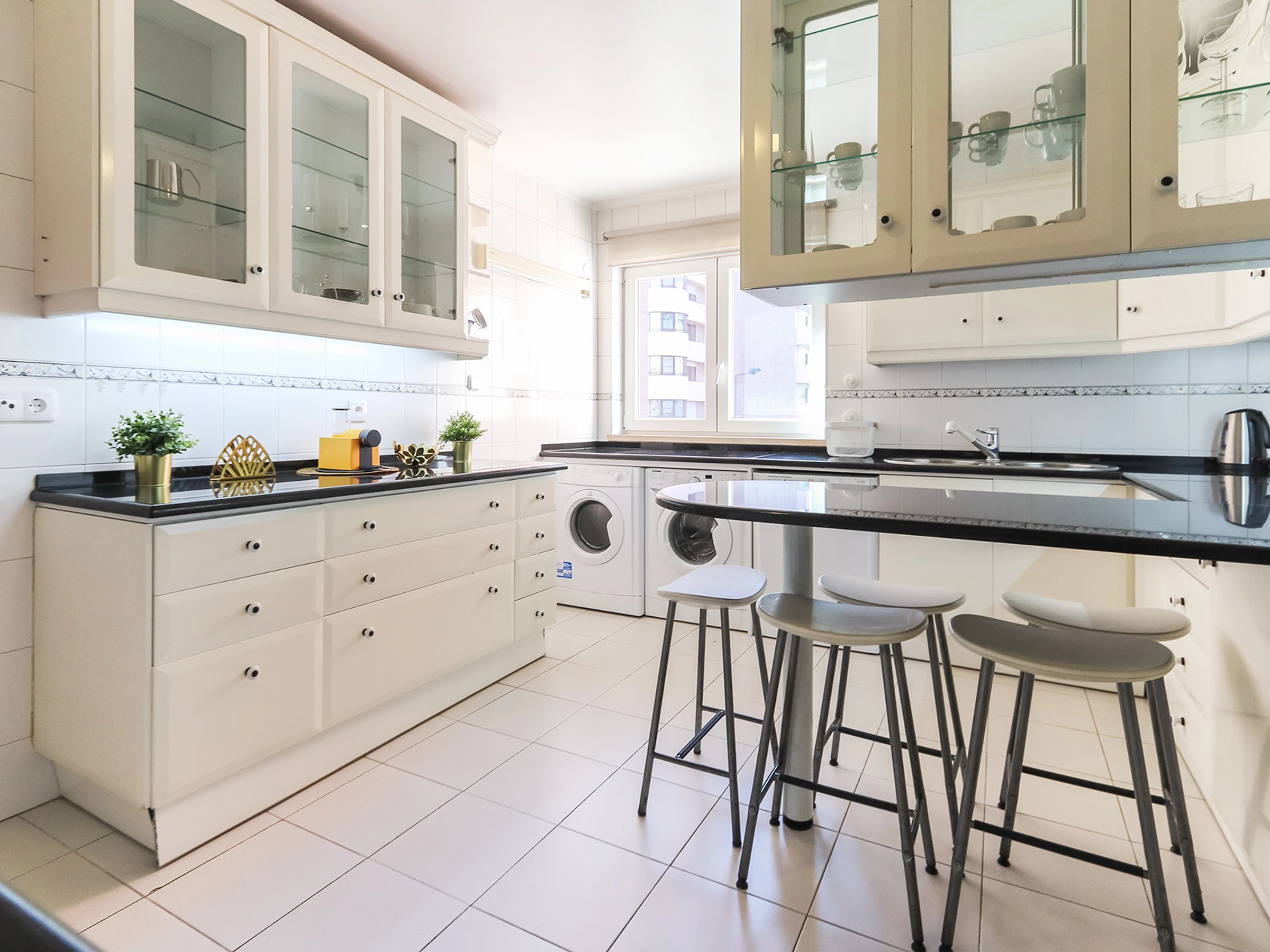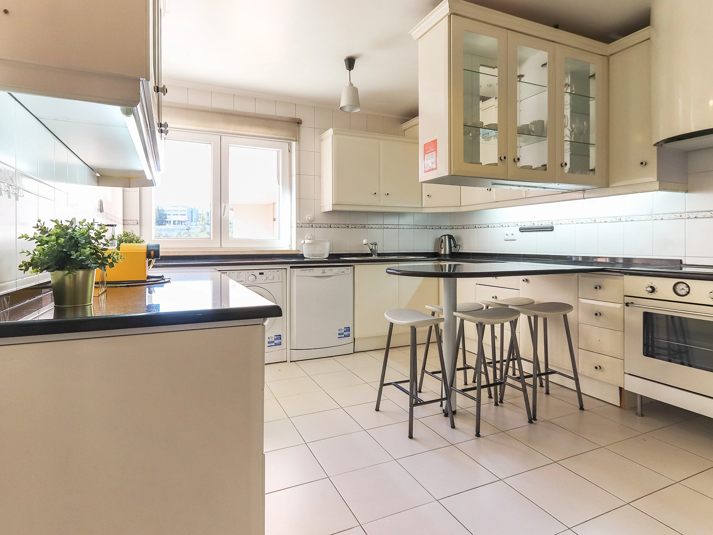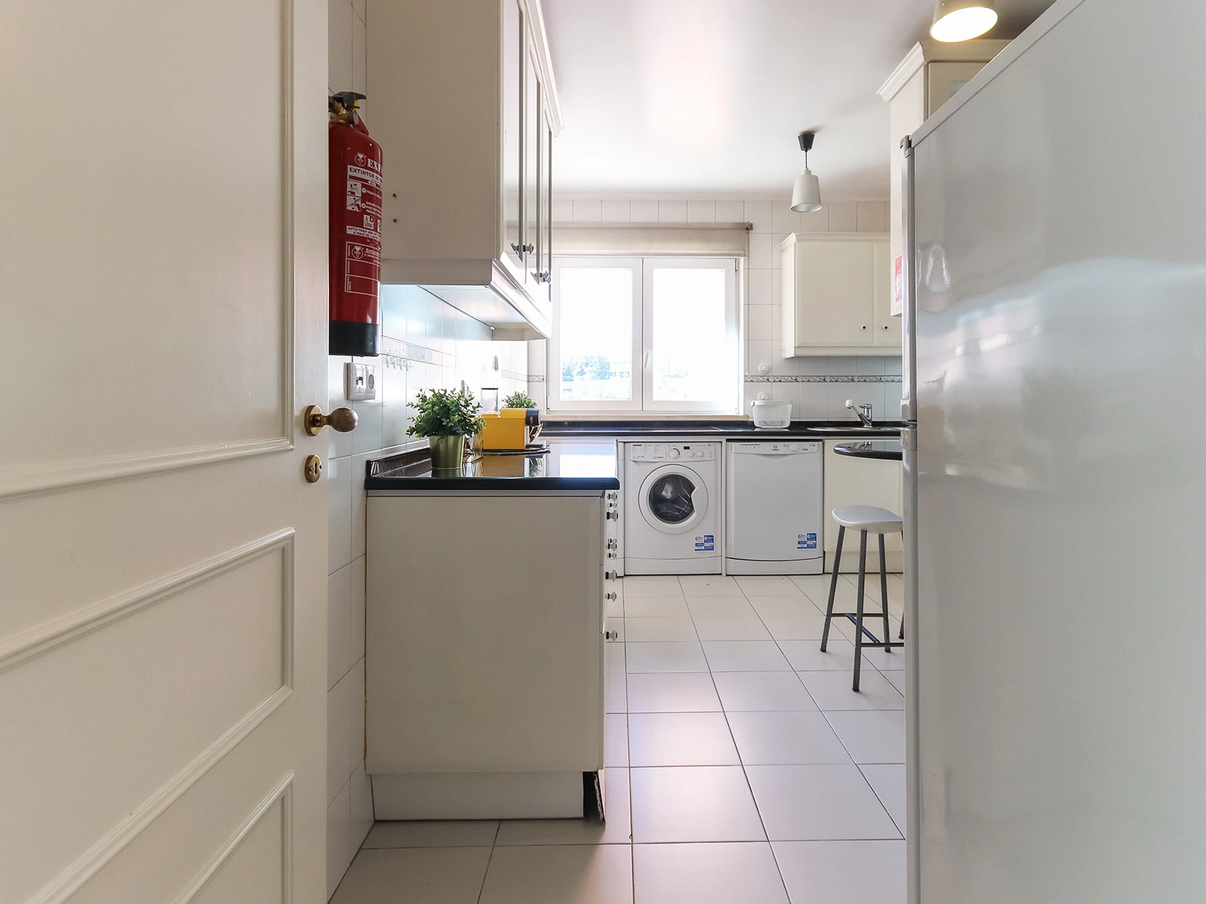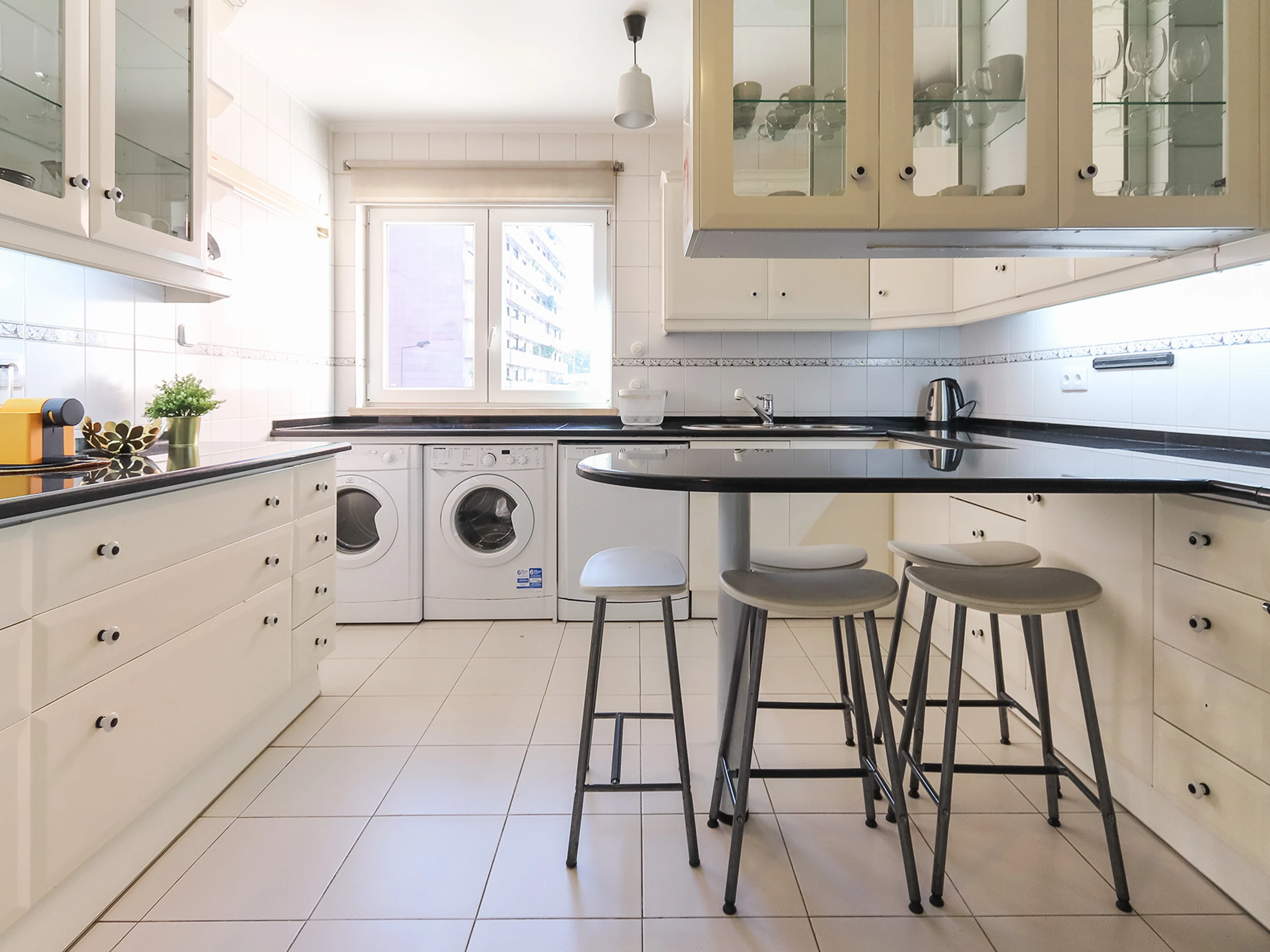 L'appartement à Lisbonne dispose de 3 chambres et peut accueillir 8 personnes, parfait pour les familles, situé dans un immeuble familial. L'appartement fait 130 m² et est situé dans un quartier résidentiel, proche de nombreux services, notamment le stade de football de Benfica, des stations de bus et de métro et un zoo. Le logement est équipé des éléments suivants : ascenseur, machine à laver, fer à repasser, internet (Wi-Fi), sèche-cheveux, chauffage électrique et 1 TV. Dans la cuisine indépendante mixte gaz et électrique, sont fournis réfrigérateur, micro-ondes, four, congélateur, lave-vaisselle, vaisselle/couverts, ustensiles de cuisine, cafetière, grille-pain et bouilloire.
