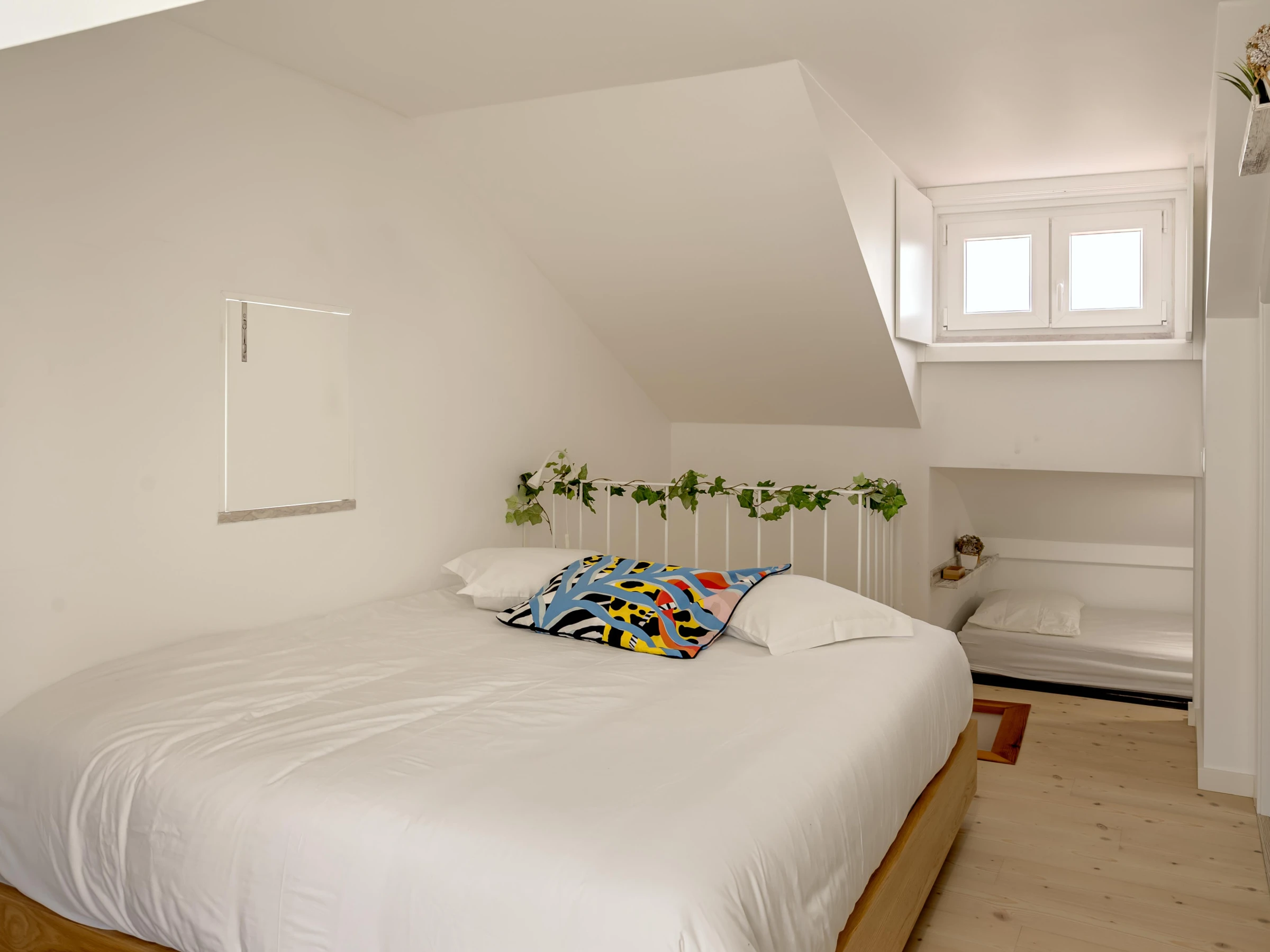 L'appartement dispose de deux chambres spacieuses, équipées de deux lits doubles, garantissant un repos tranquille pour jusqu'à 4 personnes. La luminosité et le design contemporain créent un environnement relaxant et fonctionnel.