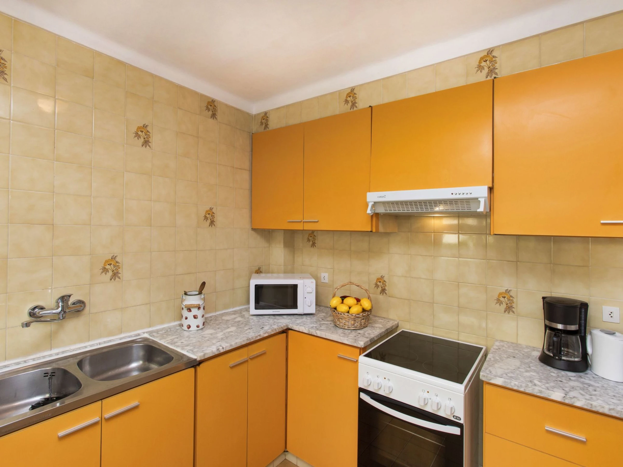 "Moré III", apt 3 pièces 60 m2 au 1er étage, situation sud-est. Aménagement fonctionnel et plaisant: séjour/salle à manger avec table pour les repas, TV (satellite), écran plat et air-conditionné. Sortie sur la terrasse. 1 chambre avec 1 grand-lit (1 x 160 cm, longueur 200 cm), radiateur électrique et air-conditionné. Sortie sur la terrasse. 1 chambre avec 2 lits (90 cm, longueur 200 cm). Cuisine (four, lave-vaisselle, 4 plaques vitrocéramiques, grille-pain, bouilloire électrique, micro-ondes, cafetière électrique). Bain/WC, douche/WC. Terrasse. Meubles de terrasse. Vue sur la mer et les montagnes. A disposition: lave-linge, fer à repasser. Internet (Connexion WIFI, gratuit). Garage No 4. Veuillez noter: maximum 1 animal/ chien autorisé. Détecteur de fumée. [hidden] // Reg. Nr.: ESFCTU000017020000301648000000000000000000[hidden]8