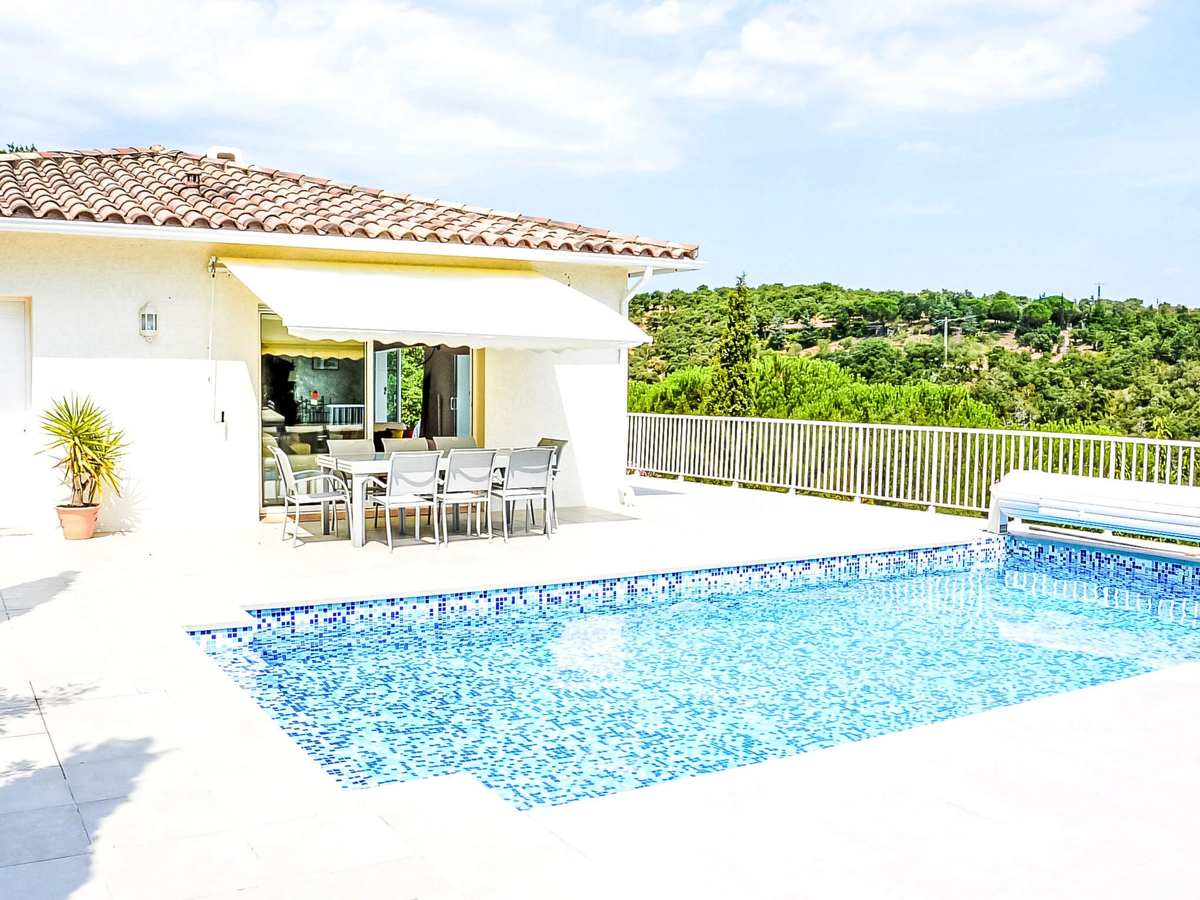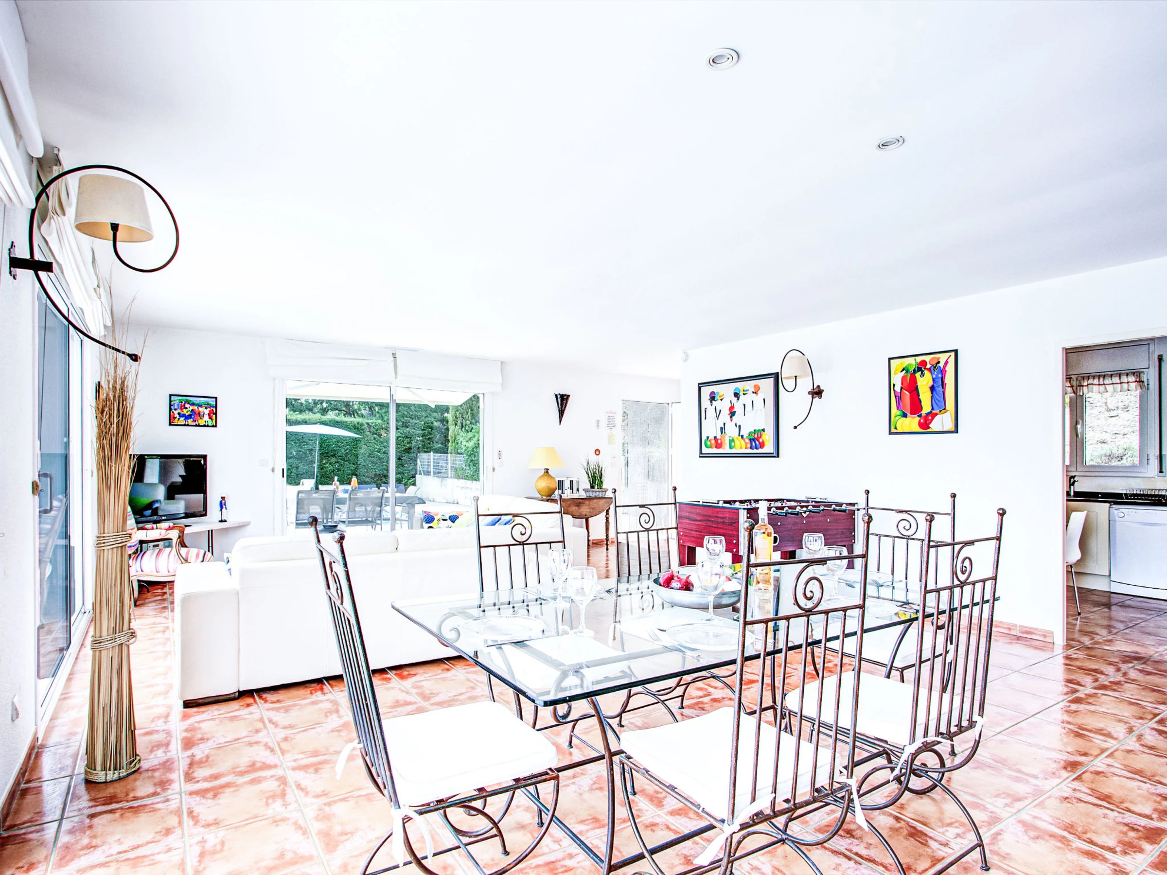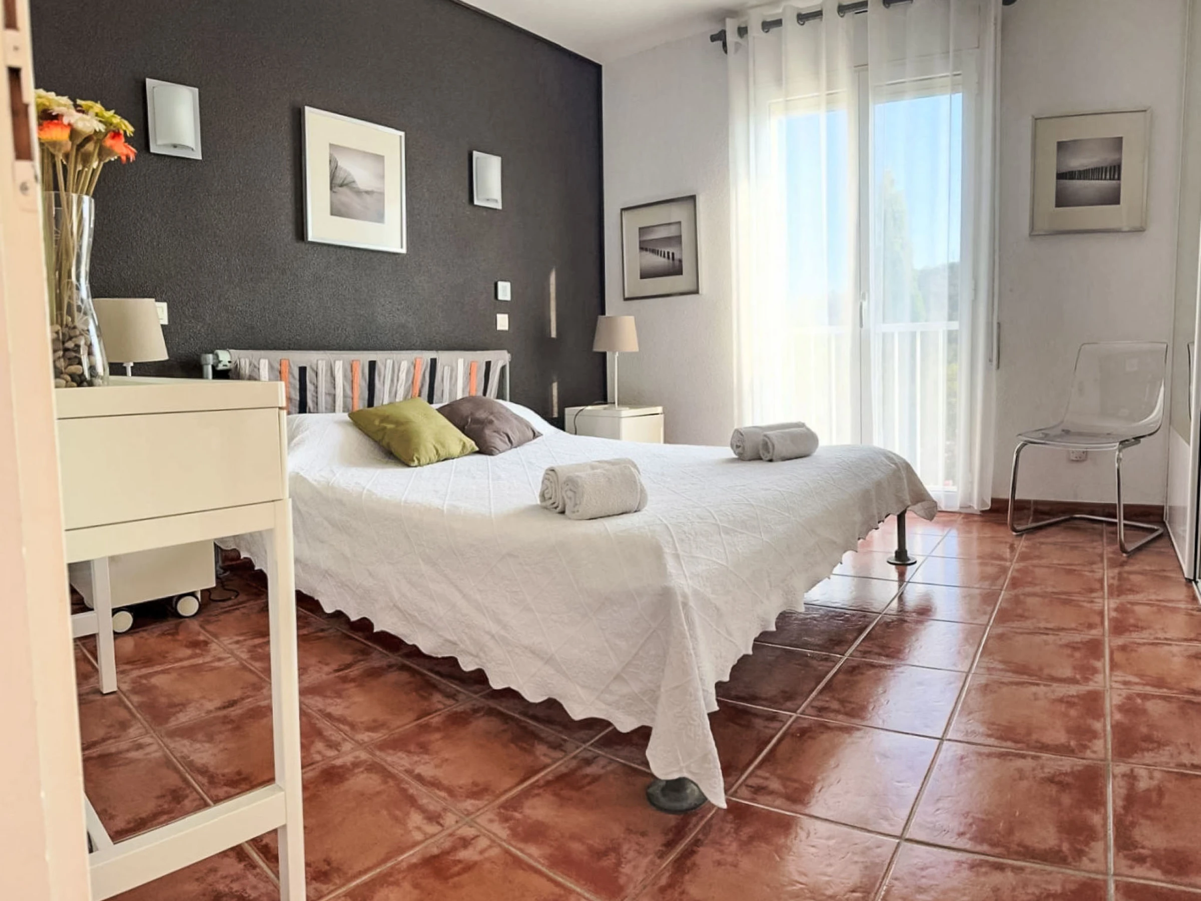 "Les Jardins de Camille", maison 5 pièces 160 m2. Spacieux, aménagement très confortable et agréable: salle à manger 50 m2 avec table pour les repas et TV (écran plat), air-conditionné. Sortie sur la terrasse. 3 chambres, chaque chambre avec: 1 grand-lit (160 cm, longueur 200 cm), air-conditionné. 1 chambre avec 2 lits (90 cm, longueur 190 cm), air-conditionné. Cuisine (four, lave-vaisselle, 4 plaques vitrocéramiques, grille-pain, bouilloire électrique, congélateur, cafetière électrique, Capsules pour machine à café (Tassimo) (NON INCLUSES)). Salle de bains, douche, 2 WC séparés. Chauffage électrique. Grande terrasse 180 m2. Meubles de terrasse, barbecue électrique, chaises longues. Très belle vue sur les montagnes et les alentours. A disposition: lave-linge, fer à repasser, chaise haute pour enfant, lit bébé, sèche-cheveux. Internet (Connexion WIFI, gratuit). Place de parking (cloturée, 3 Voitures). Veuillez noter: maison non-fumeur. Maximum 2 animaux/ chiens autorisés. Détecteur de fumée. Annonce d'un particulier (art 155, IV du CGI).