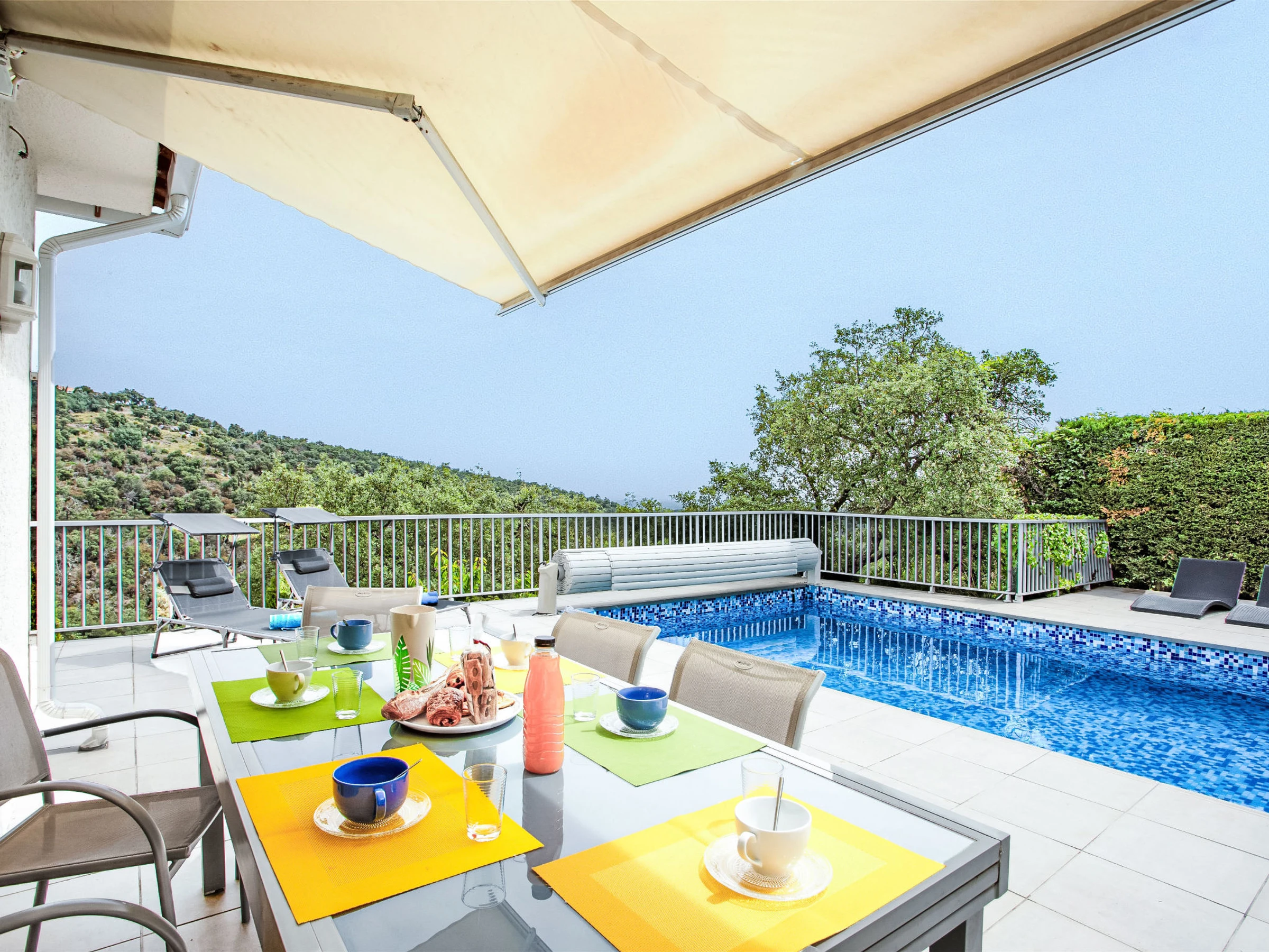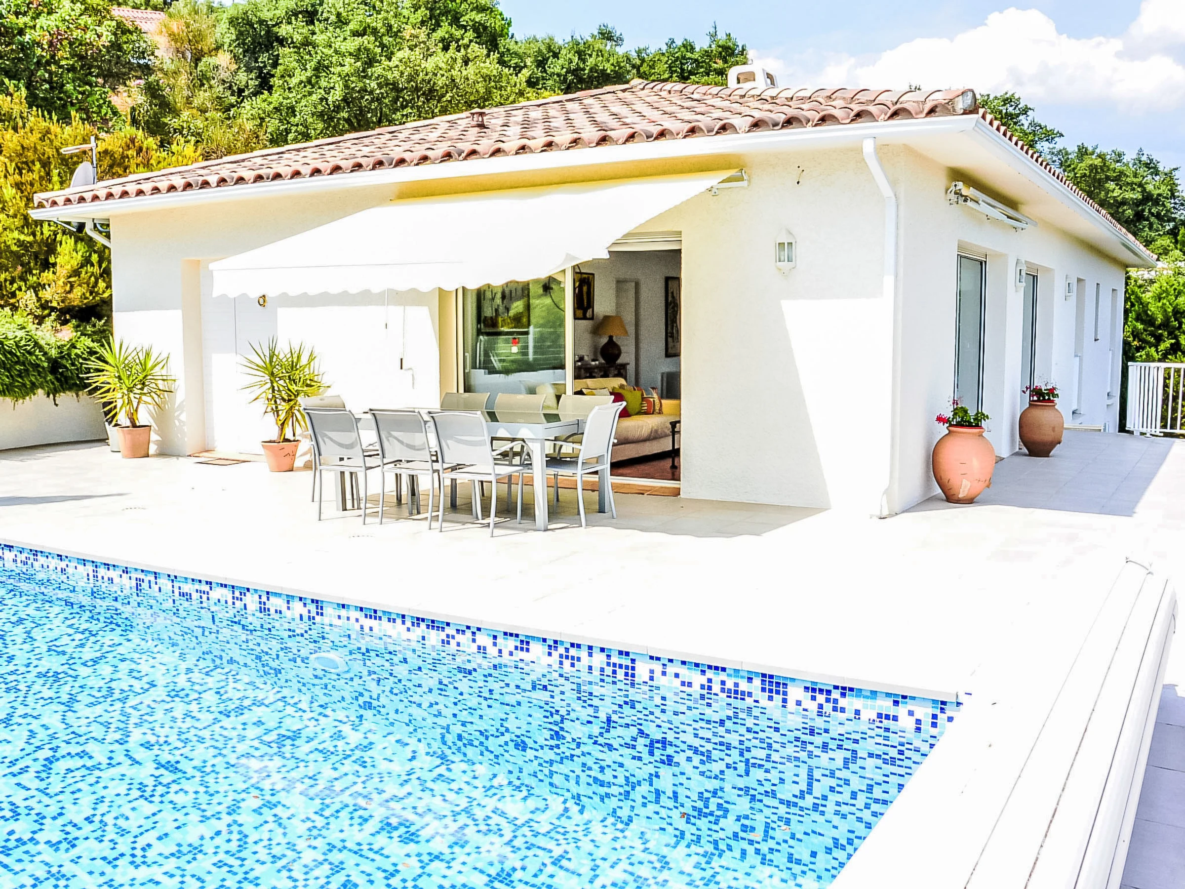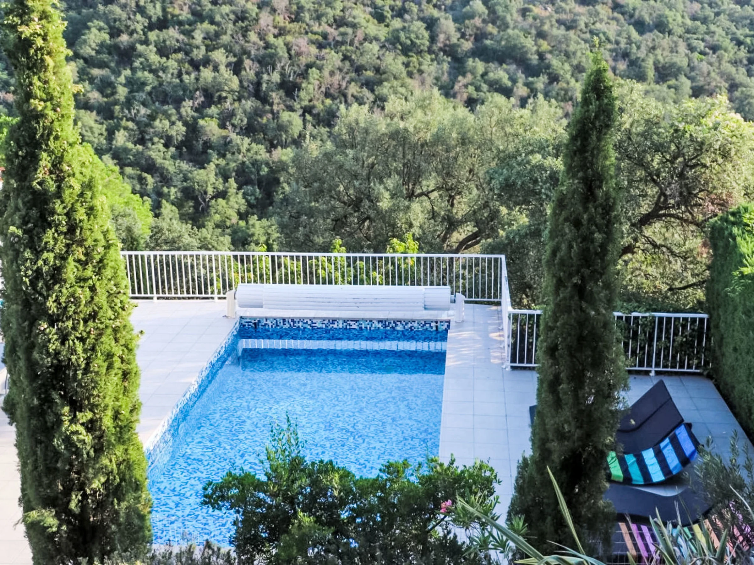 "Les Jardins de Camille", maison 5 pièces 160 m2. Spacieux, aménagement très confortable et agréable: salle à manger 50 m2 avec table pour les repas et TV (écran plat), air-conditionné. Sortie sur la terrasse. 3 chambres, chaque chambre avec: 1 grand-lit (160 cm, longueur 200 cm), air-conditionné. 1 chambre avec 2 lits (90 cm, longueur 190 cm), air-conditionné. Cuisine (four, lave-vaisselle, 4 plaques vitrocéramiques, grille-pain, bouilloire électrique, congélateur, cafetière électrique, Capsules pour machine à café (Tassimo) (NON INCLUSES)). Salle de bains, douche, 2 WC séparés. Chauffage électrique. Grande terrasse 180 m2. Meubles de terrasse, barbecue électrique, chaises longues. Très belle vue sur les montagnes et les alentours. A disposition: lave-linge, fer à repasser, chaise haute pour enfant, lit bébé, sèche-cheveux. Internet (Connexion WIFI, gratuit). Place de parking (cloturée, 3 Voitures). Veuillez noter: maison non-fumeur. Maximum 2 animaux/ chiens autorisés. Détecteur de fumée. Annonce d'un particulier (art 155, IV du CGI).