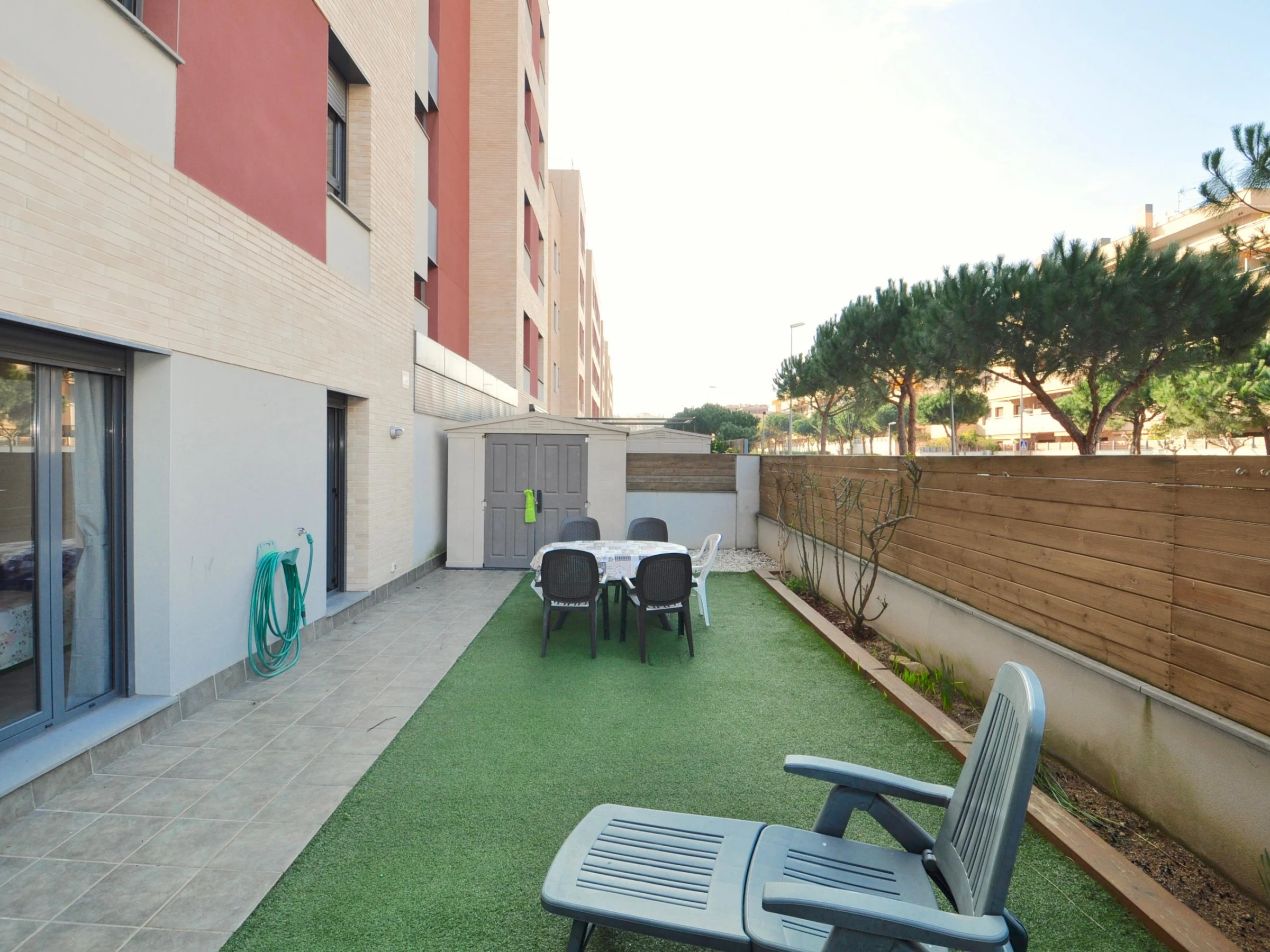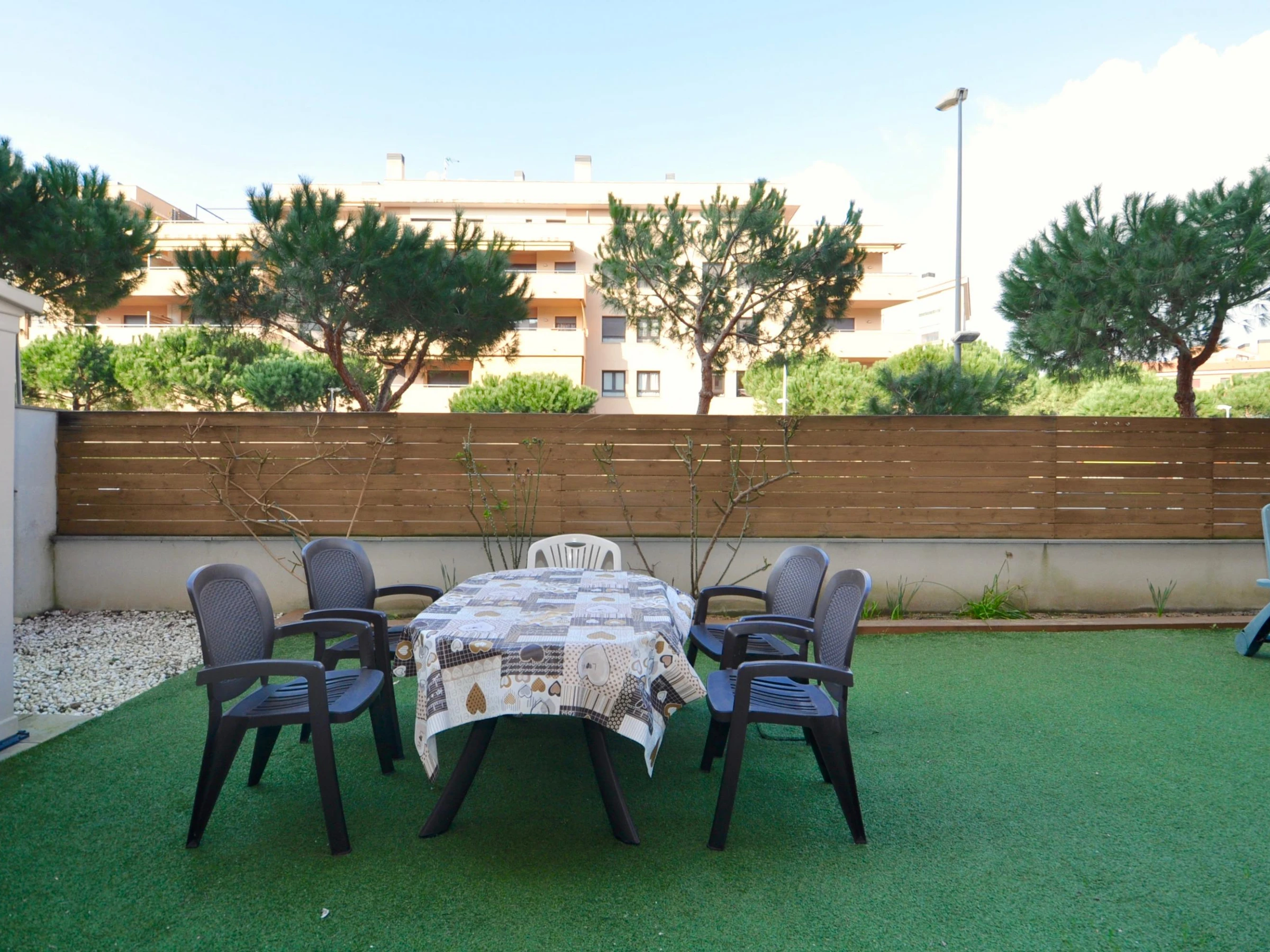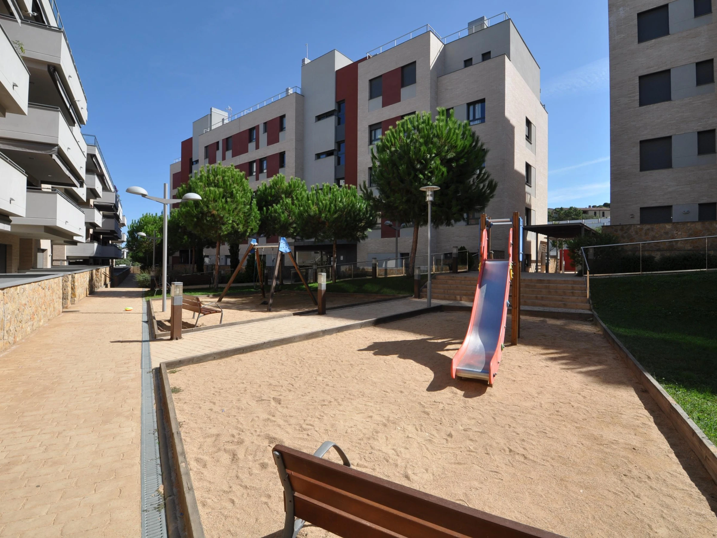Ce charmant appartement de 90 m², situé au rez-de-chaussée d'une résidence privée, est idéal pour des vacances reposantes. Les espaces communs comprennent un jardin, une piscine, un espace détente et une aire de jeux pour enfants. WIFI disponible Disposition * 3 chambres: * Suite avec lit double, armoire et accès à la terrasse. * Chambre avec un lit double, armoire et commode. * Chambre avec un lit double et commode. * 2 salles de bain: L'une avec douche, baignoire, lavabo, WC et bidet ; l'autre avec douche, lavabo et WC. * Salon-salle à manger: Canapé, table pour 6, TV, DVD et accès à la terrasse. * Cuisine entièrement équipée: Plaque vitrocéramique, four, grand réfrigérateur, lave-linge, lave-vaisselle, micro-ondes et vaisselle. * Extérieur: Terrasse de 12 m² avec table et chaises, jardin privé de 50 m² avec barbecue. Emplacement & Services * Plages: Fenals (300 m), Sa Boadella (400 m). * Services: Supermarchés, arrêt de bus, restaurants, bars, pharmacie. * Attractions: Jardins de Santa Clotilde (5 min à pied), Waterworld, Gnomo Park et Marineland (15-20 min en voiture). * Connexions: Aéroport de Gérone (30 km), Aéroport de Barcelone (85 km), gare de Blanes (8 km). Uniquement pour les familles ou couples de plus de 25 ans. Groupes de jeunes interdits, capacité maximale à respecter.