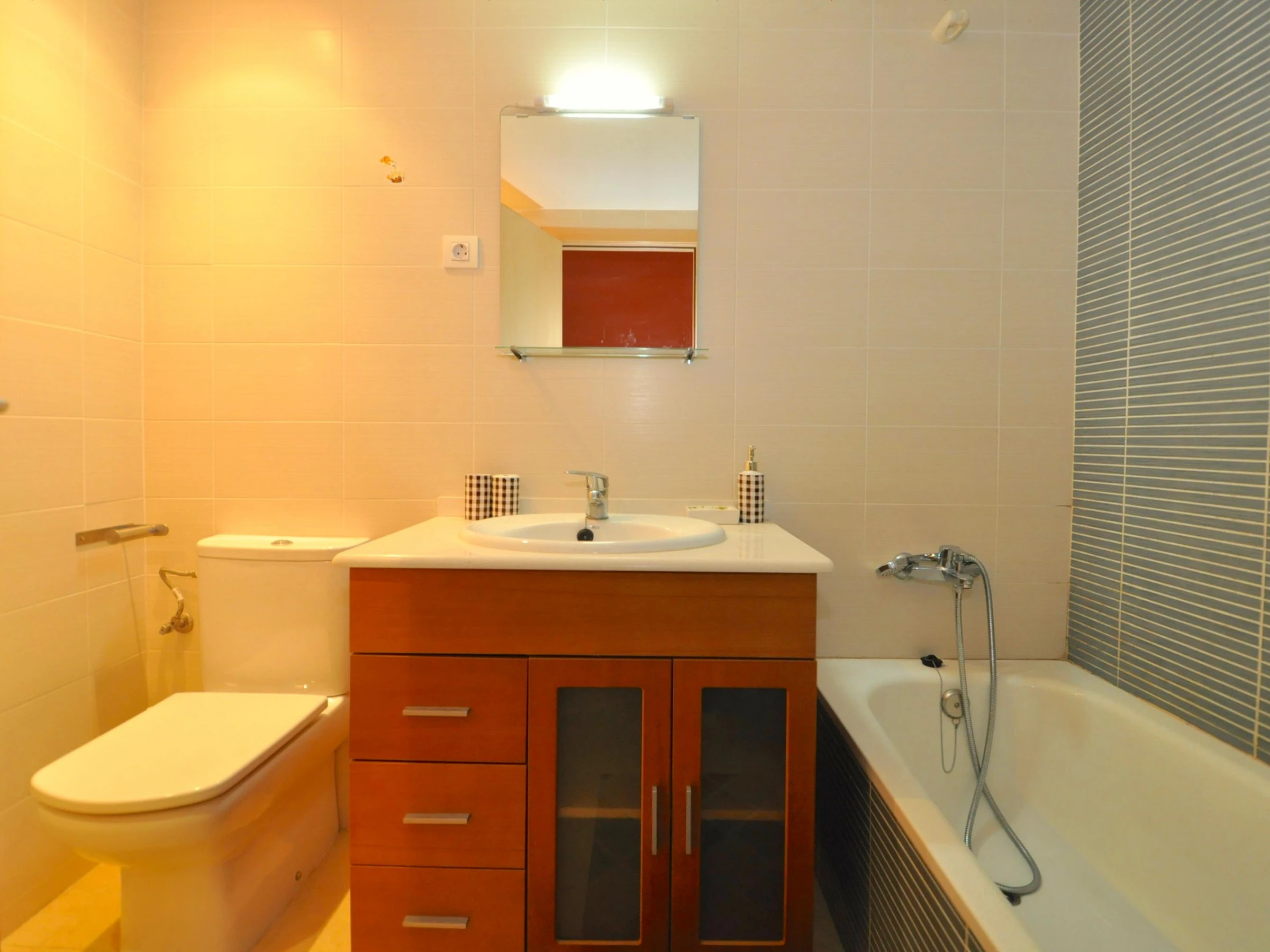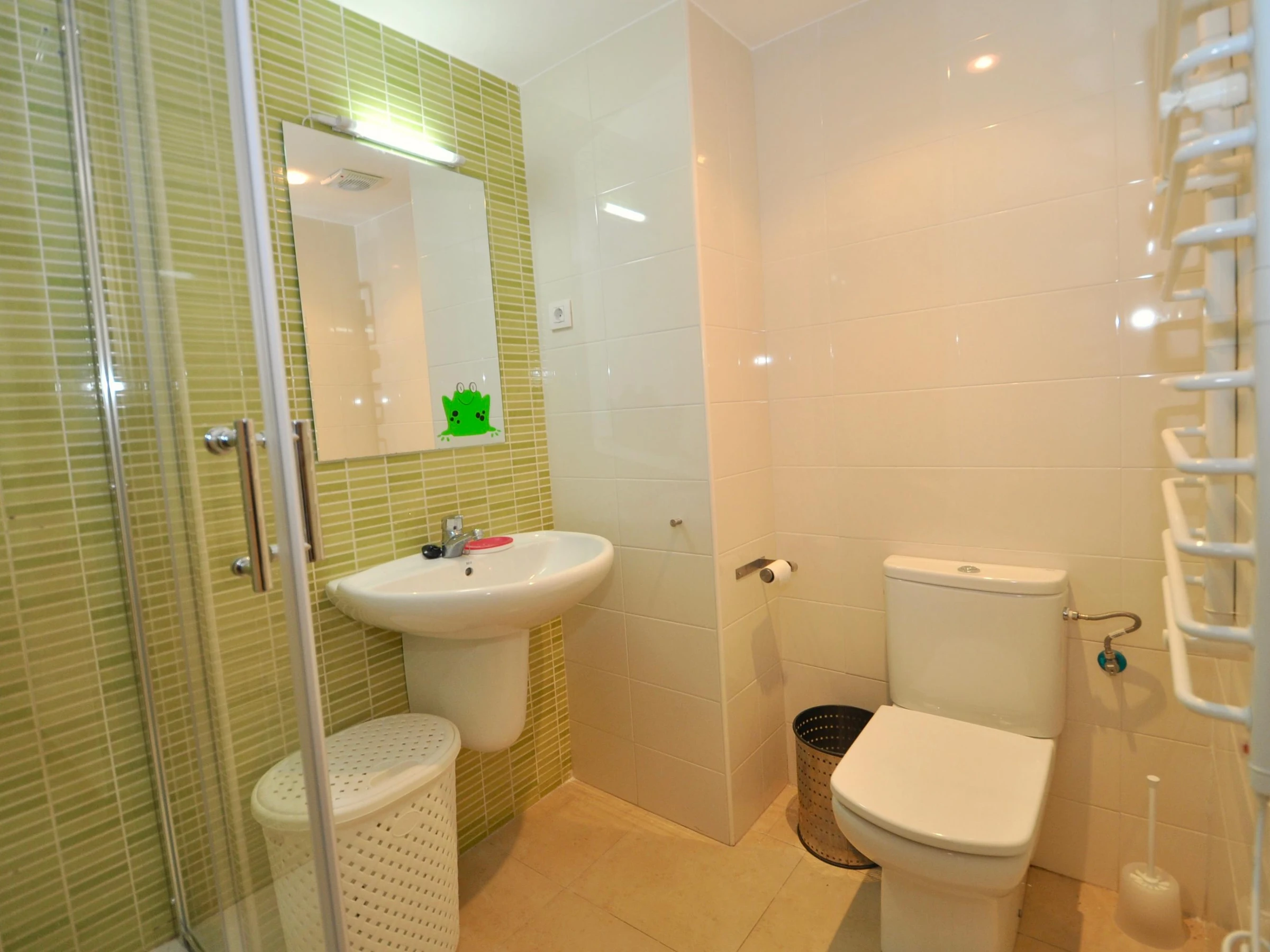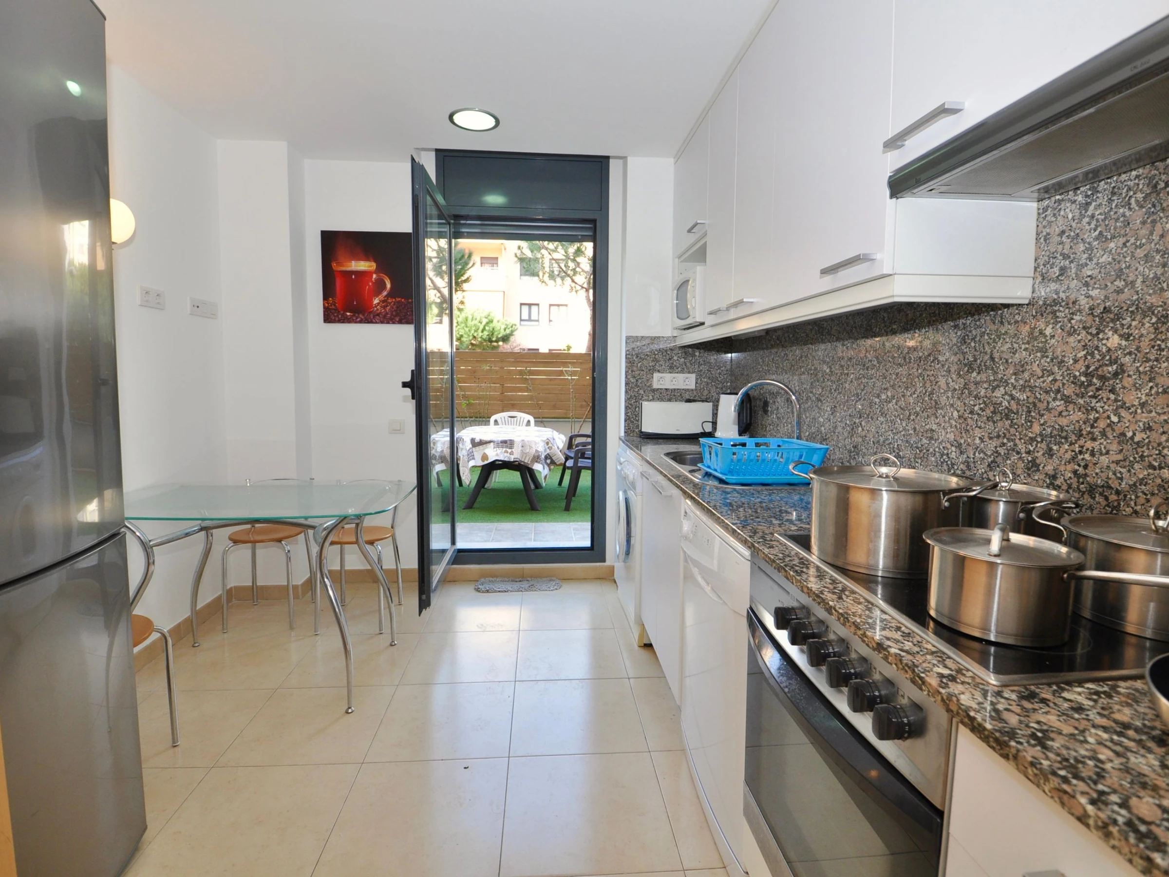 Ce charmant appartement de 90 m², situé au rez-de-chaussée d'une résidence privée, est idéal pour des vacances reposantes. Les espaces communs comprennent un jardin, une piscine, un espace détente et une aire de jeux pour enfants. WIFI disponible Disposition * 3 chambres: * Suite avec lit double, armoire et accès à la terrasse. * Chambre avec un lit double, armoire et commode. * Chambre avec un lit double et commode. * 2 salles de bain: L'une avec douche, baignoire, lavabo, WC et bidet ; l'autre avec douche, lavabo et WC. * Salon-salle à manger: Canapé, table pour 6, TV, DVD et accès à la terrasse. * Cuisine entièrement équipée: Plaque vitrocéramique, four, grand réfrigérateur, lave-linge, lave-vaisselle, micro-ondes et vaisselle. * Extérieur: Terrasse de 12 m² avec table et chaises, jardin privé de 50 m² avec barbecue. Emplacement & Services * Plages: Fenals (300 m), Sa Boadella (400 m). * Services: Supermarchés, arrêt de bus, restaurants, bars, pharmacie. * Attractions: Jardins de Santa Clotilde (5 min à pied), Waterworld, Gnomo Park et Marineland (15-20 min en voiture). * Connexions: Aéroport de Gérone (30 km), Aéroport de Barcelone (85 km), gare de Blanes (8 km). Uniquement pour les familles ou couples de plus de 25 ans. Groupes de jeunes interdits, capacité maximale à respecter.