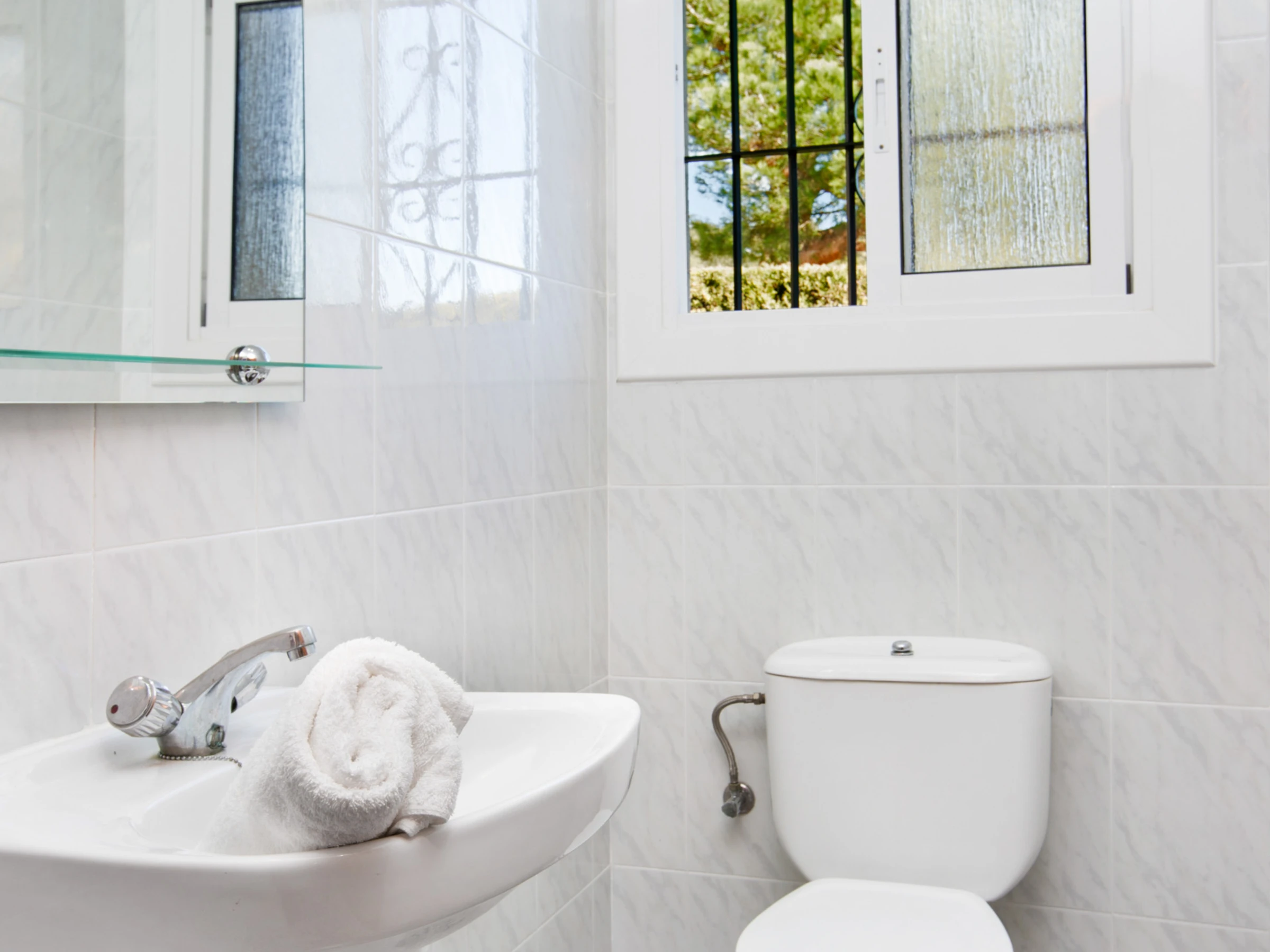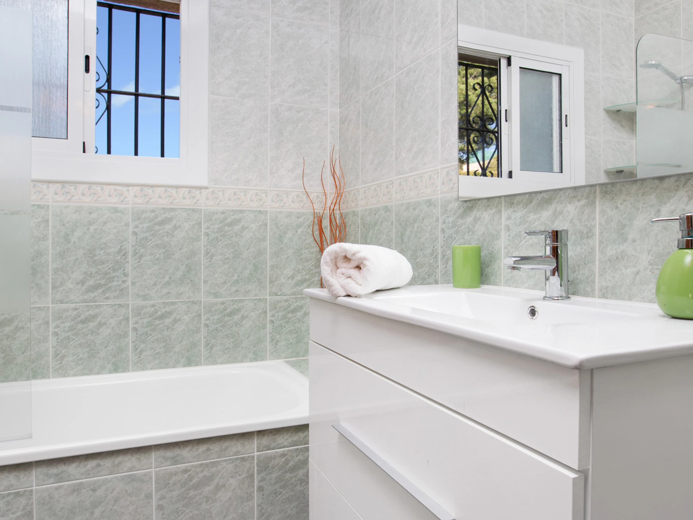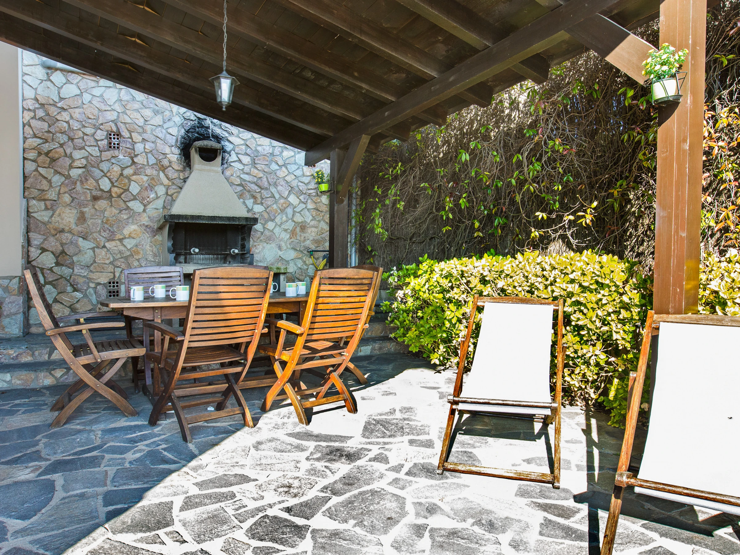 Espace extérieur avec piscine privée offrant de belles vues sur la montagne, zone de barbecue entièrement couverte où vous pourrez profiter des petits-déjeuners et des repas face à la piscine. Il y a aussi un jardin et la possibilité de garer 2 voitures, l'une derrière l'autre.