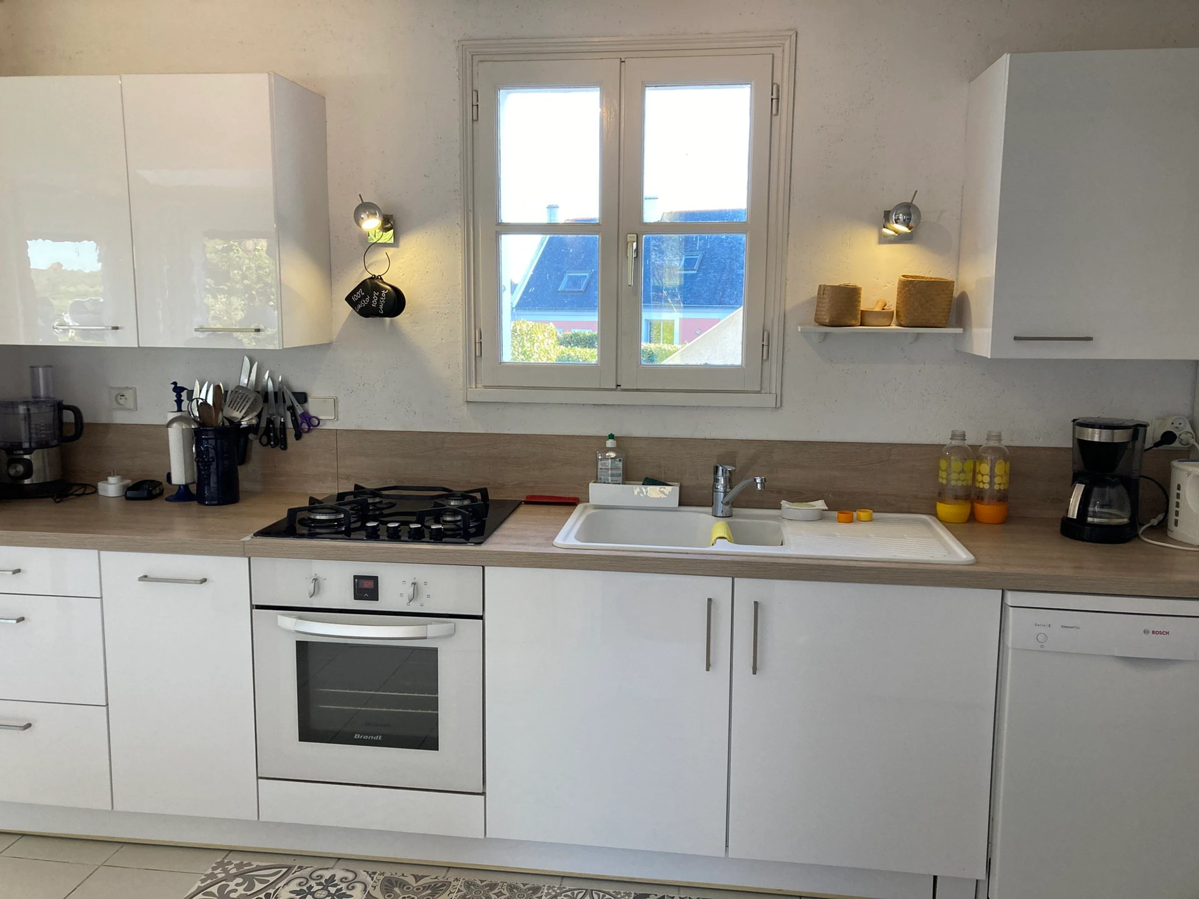 - Une cuisne ouverte (9 m²) aménagée et équipée, réfrigérateur avec partie congélateur, feux à gaz, four traditionnel, micro-ondes, lave-vaisselle.