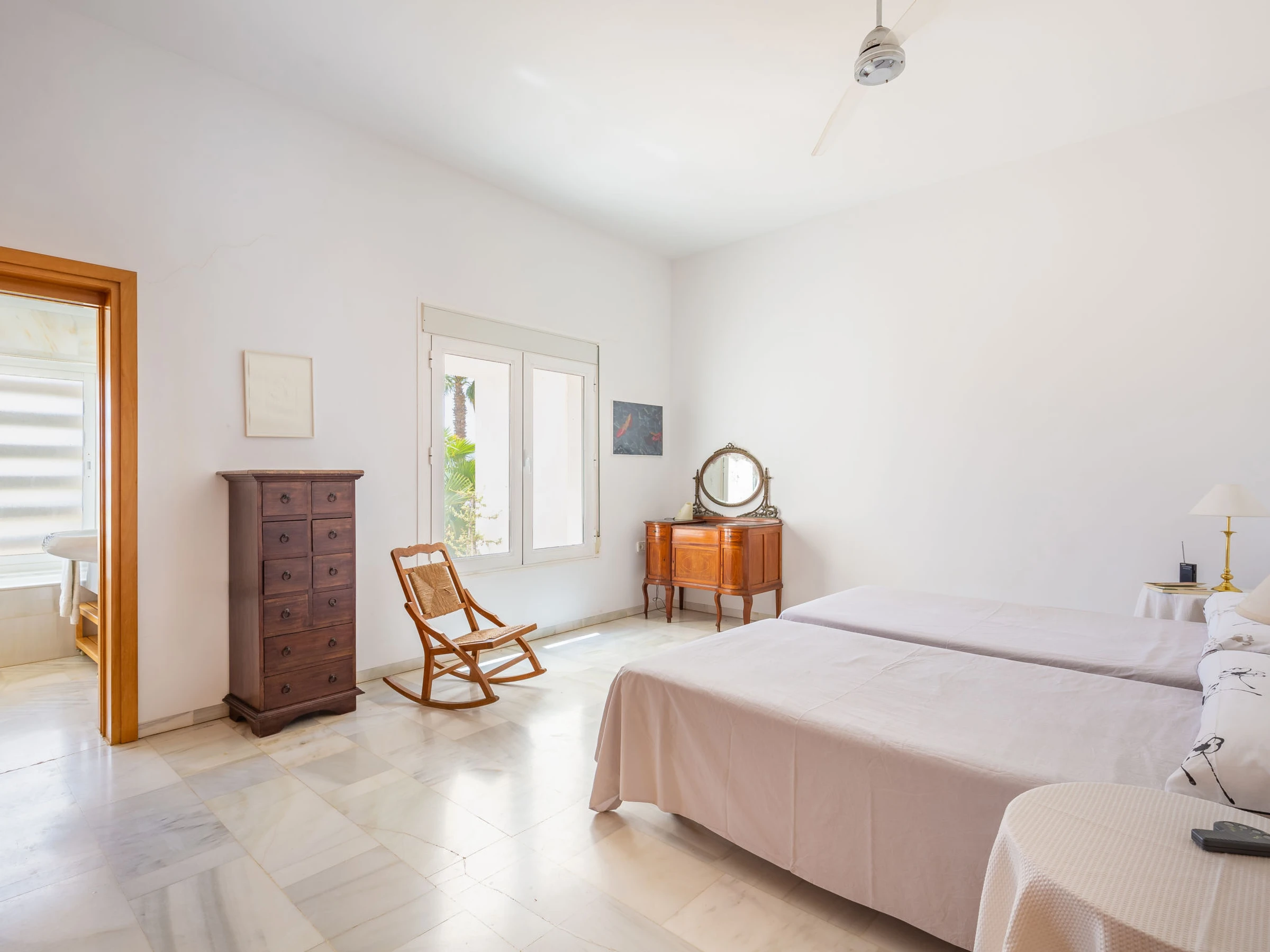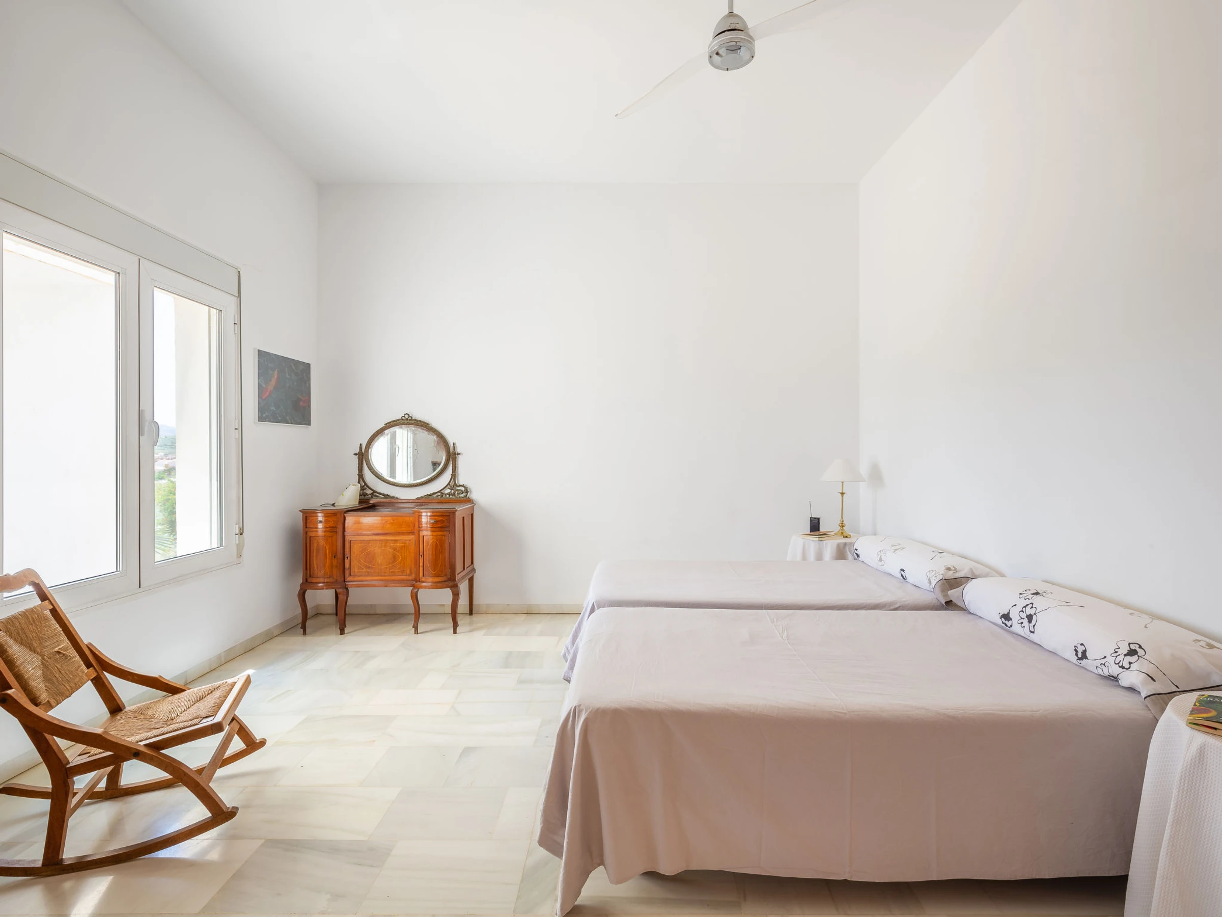 "La Veleta", maison 3 pièces 250 m2. Logement idéal pour 4 adultes. Clair, aménagement confortable: séjour/salle à manger avec Télévision numérique et ventilateur. Sortie sur le jardin. 2 chambres, chaque chambre avec: 2 lits (105 cm, longueur 190 cm), ventilateur. Sortie sur le jardin. Cuisine (5 plaques de cuisson, four, lave-vaisselle, micro-ondes, congélateur, cafetière électrique). Bain/WC, bain/bidet/WC. Chauffage par le sol. Sol en pierres naturelles. Terrasse 25 m2, couverte, jardinet 50 m2. Chaises longues (4). Vue panoramique sur les montagnes et les alentours. A disposition: lave-linge. Internet (Connexion WIFI, gratuit). Maximum 1 animal/ chien autorisé. Le lit supplémentaire est un lit pliant. Sols en marbre. [hidden] // Reg. Nr.: ESFCTU00000401000012800600000000000000000[hidden]0