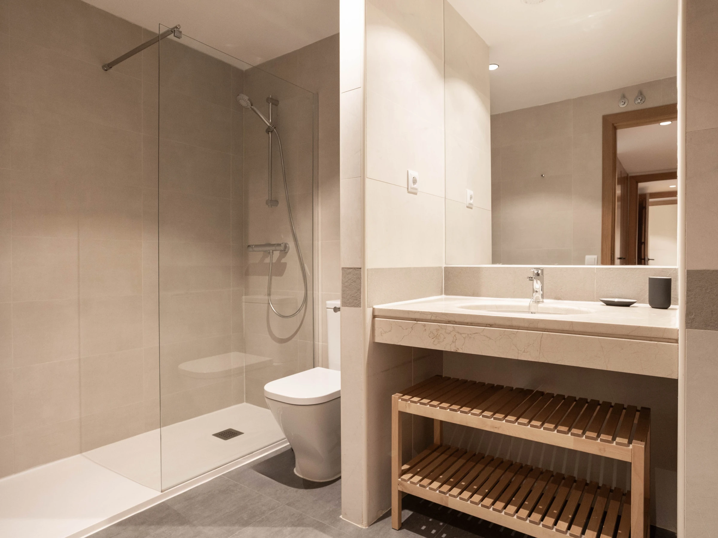 Le logement dispose, en outre, de deux salles de bain modernes et d'un toilette, l'une avec douche et l'autre avec baignoire.