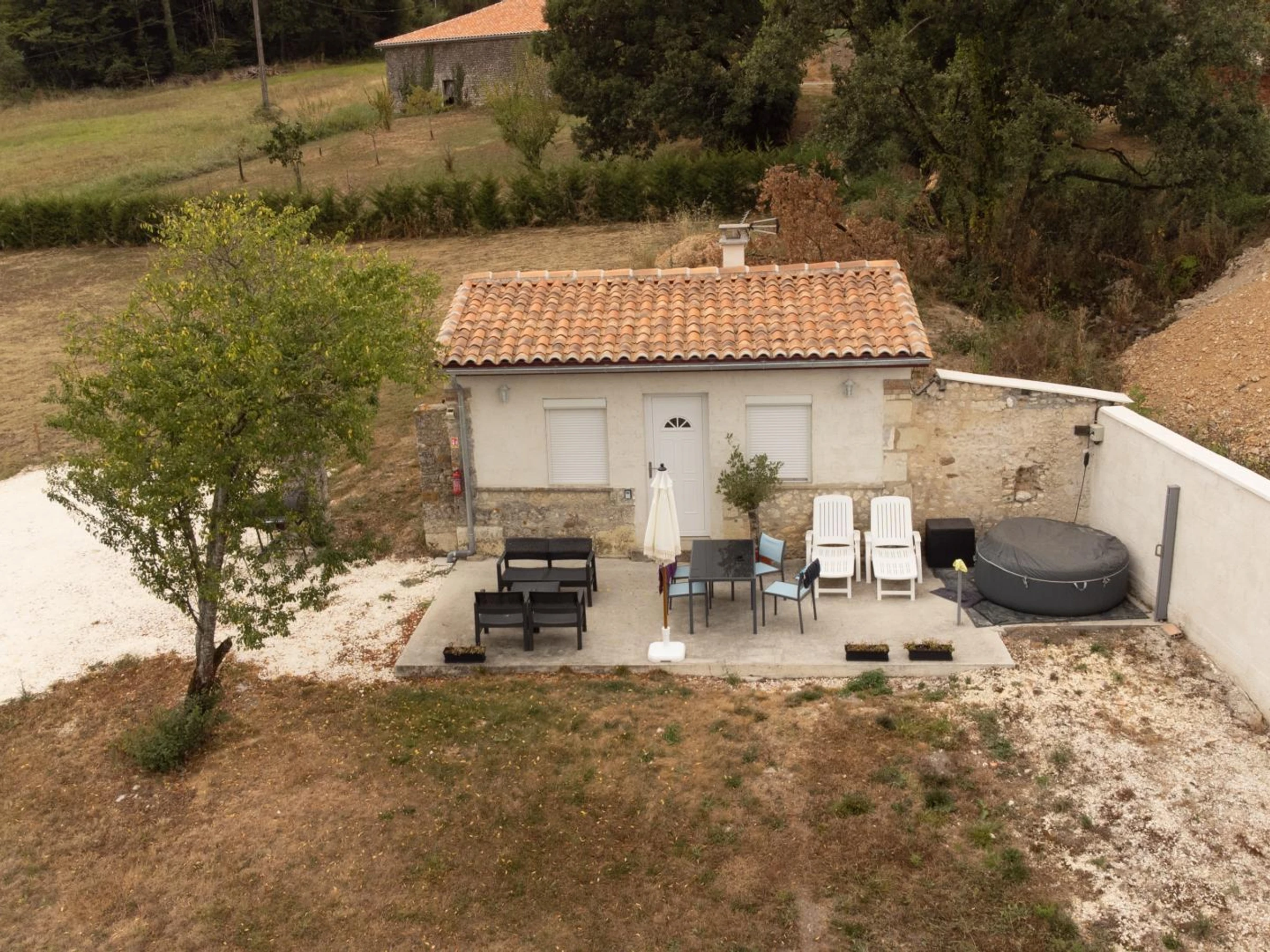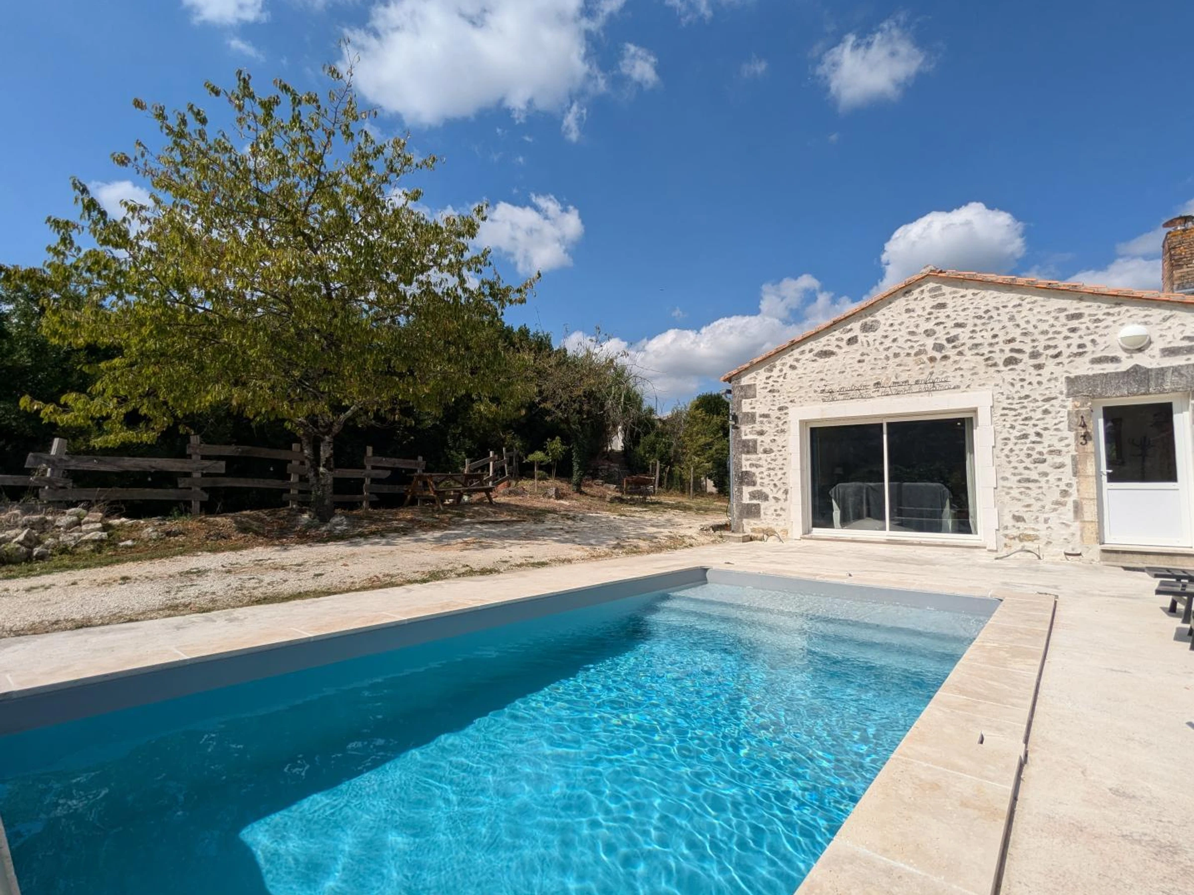 Sono et jeu de lumières à la demande en option payante : 100 €/j. Aux portes du Périgord, profitez de cette propriété composée d'une maison de pays avec ses pierres apparentes et ses anciennes cheminées et son studio. La vue dégagée sur la campagne vallonnée est très agréable. Maison indépendante, à proximité à l'arrière d'une petite maison d'habitation, sans vis-à-vis.