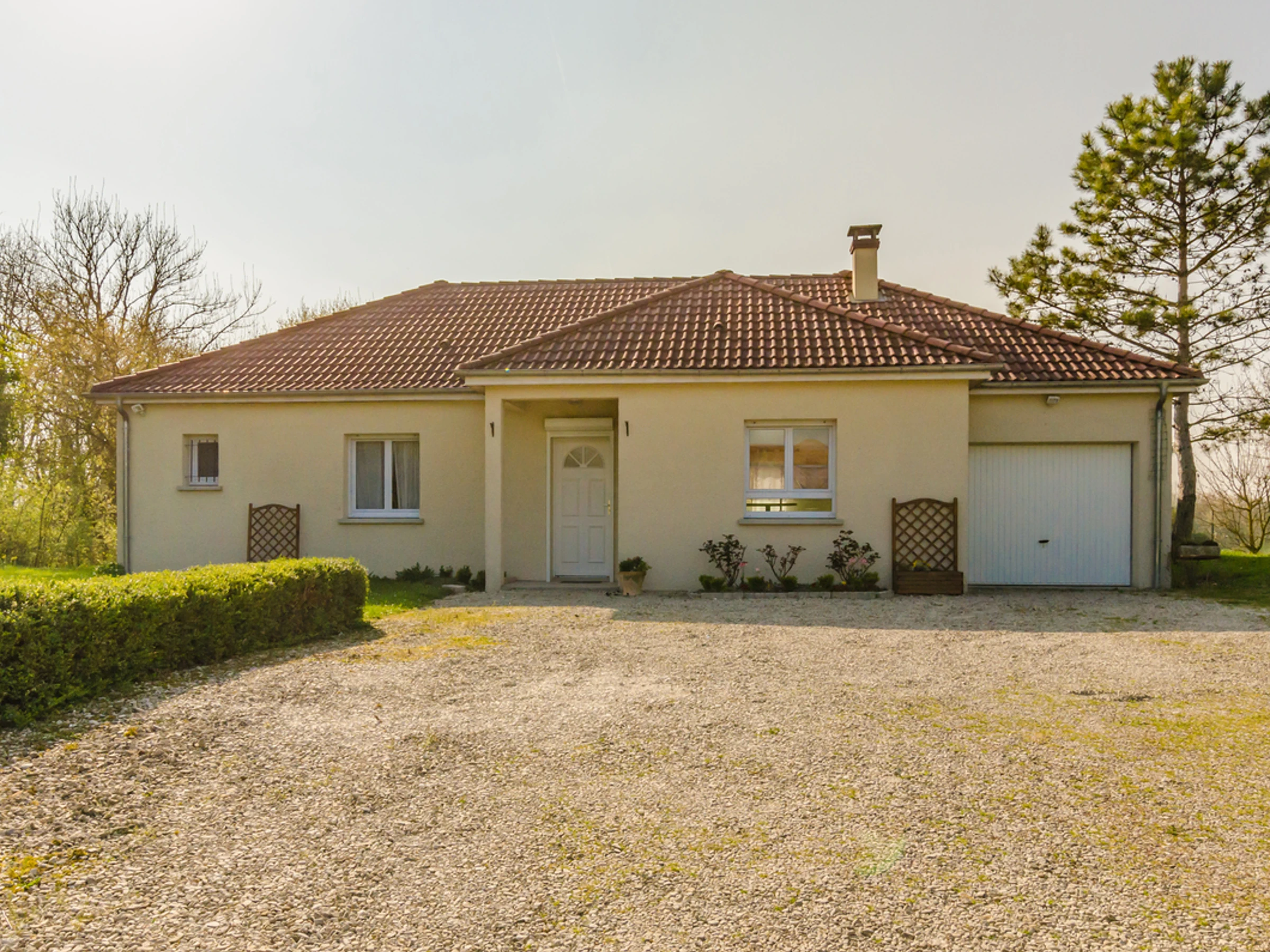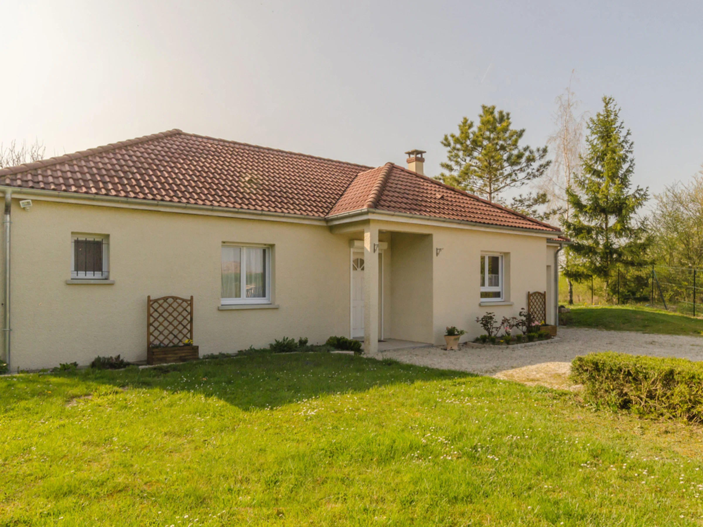 Maison de plain pied pouvant accueillir jusqu'à 6 personnes. Cuisine ouverte sur le séjour, 3 chambres (2 doubles, une twin), une salle de bains, wc indépendants. Le garage attenant permet de stationner une voiture. Vaste terrain clos avec une agréable vue paysagère. Linges fournis : maison, lit, toilette. Charges supplémentaires : électricité. ATTRAITS TOURISTIQUES : Lacs de la Forêt d'Orient à 20 min, Nigloland à 35 min, Troyes et ses magasins d'usines à 30 min. Maison de contruction récente aménagée avec goût sur terrain de 1000 m² arboré. Lieu idéal pour se reposer ou passer un séjour détente entre amis ou famille.