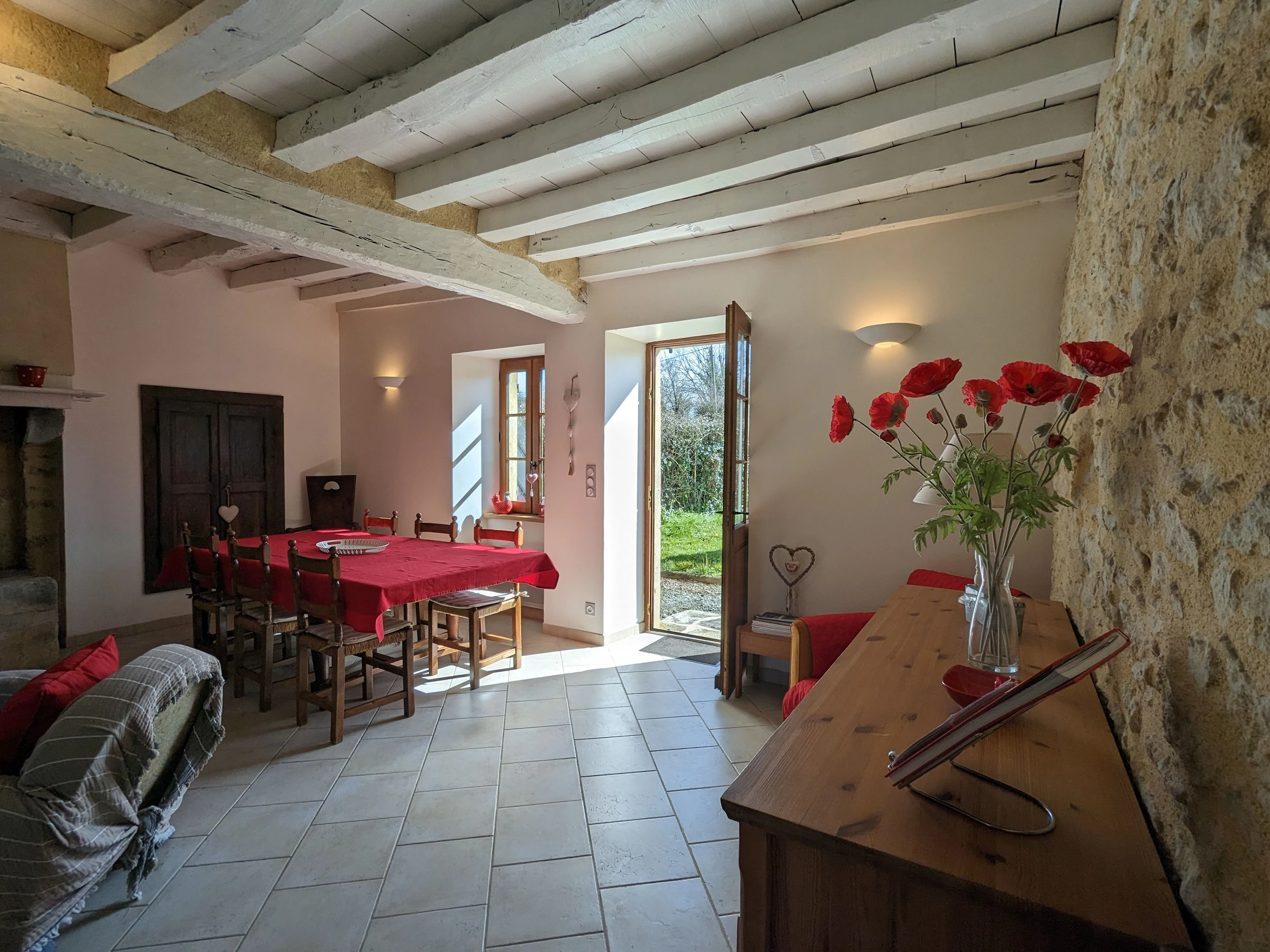 Proche de la vallée de la Creuse, du Lac d'Eguzon et du pays de George Sand, charmante maison Berrichonne entièrement restaurée autour d'un grand jardin clos, dans un hameau où le calme et la quiétude de la campagne environnante vous permettront de passer un agréable séjour. Rez-de-chaussée : entrée avec placards et lave-linge intégré, cuisine équipée, grand séjour (canapé-lit), cheminée et wc indépendant.