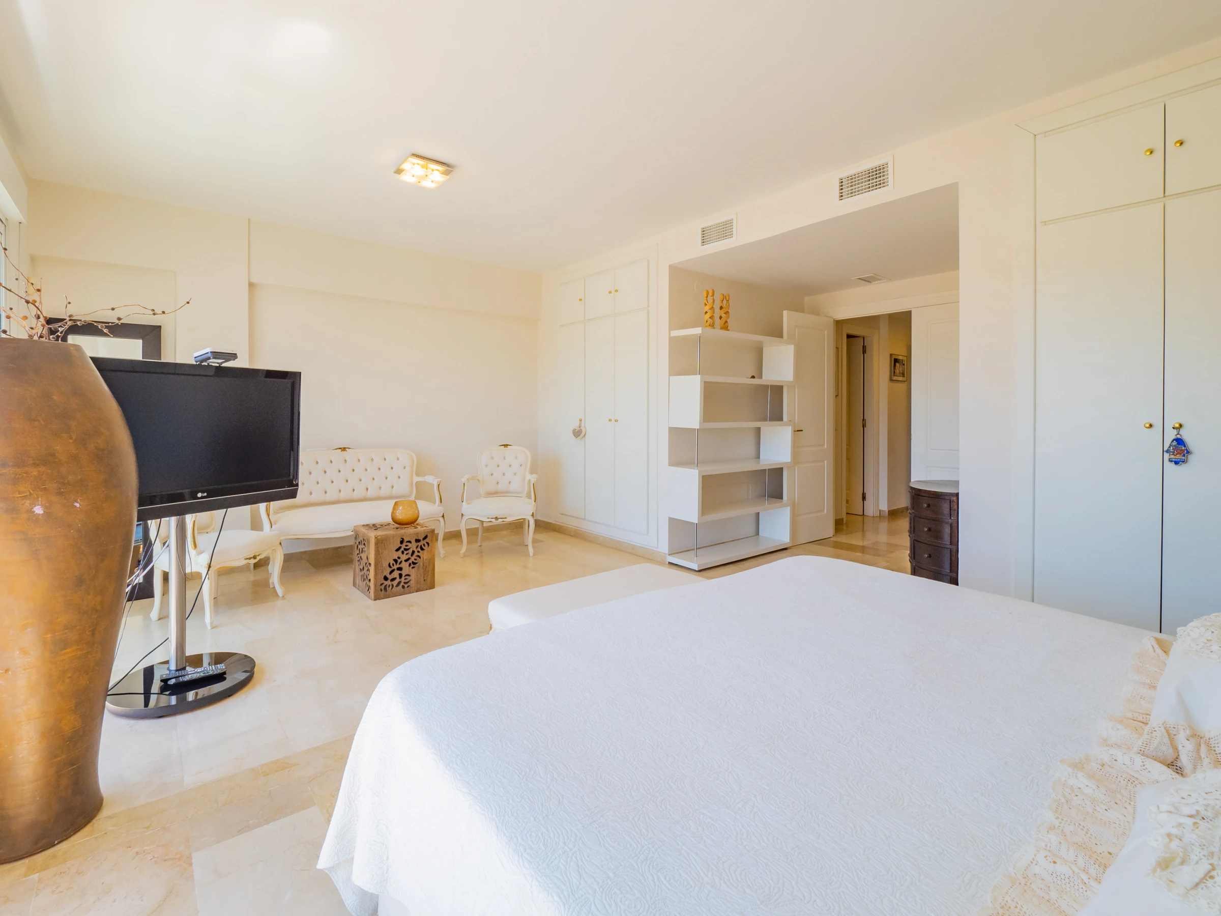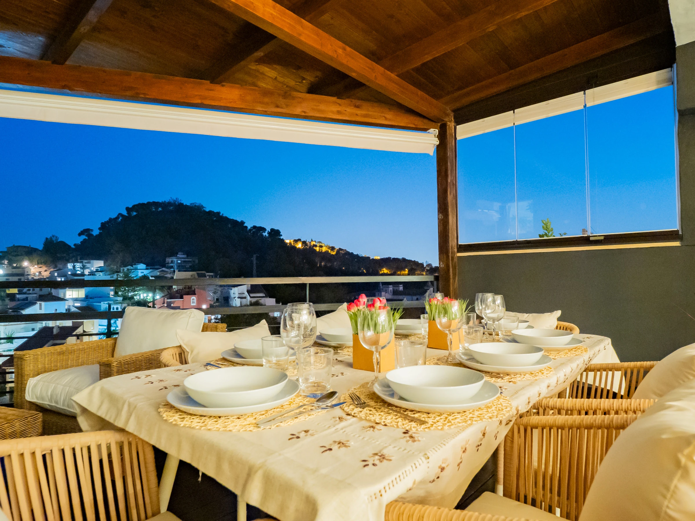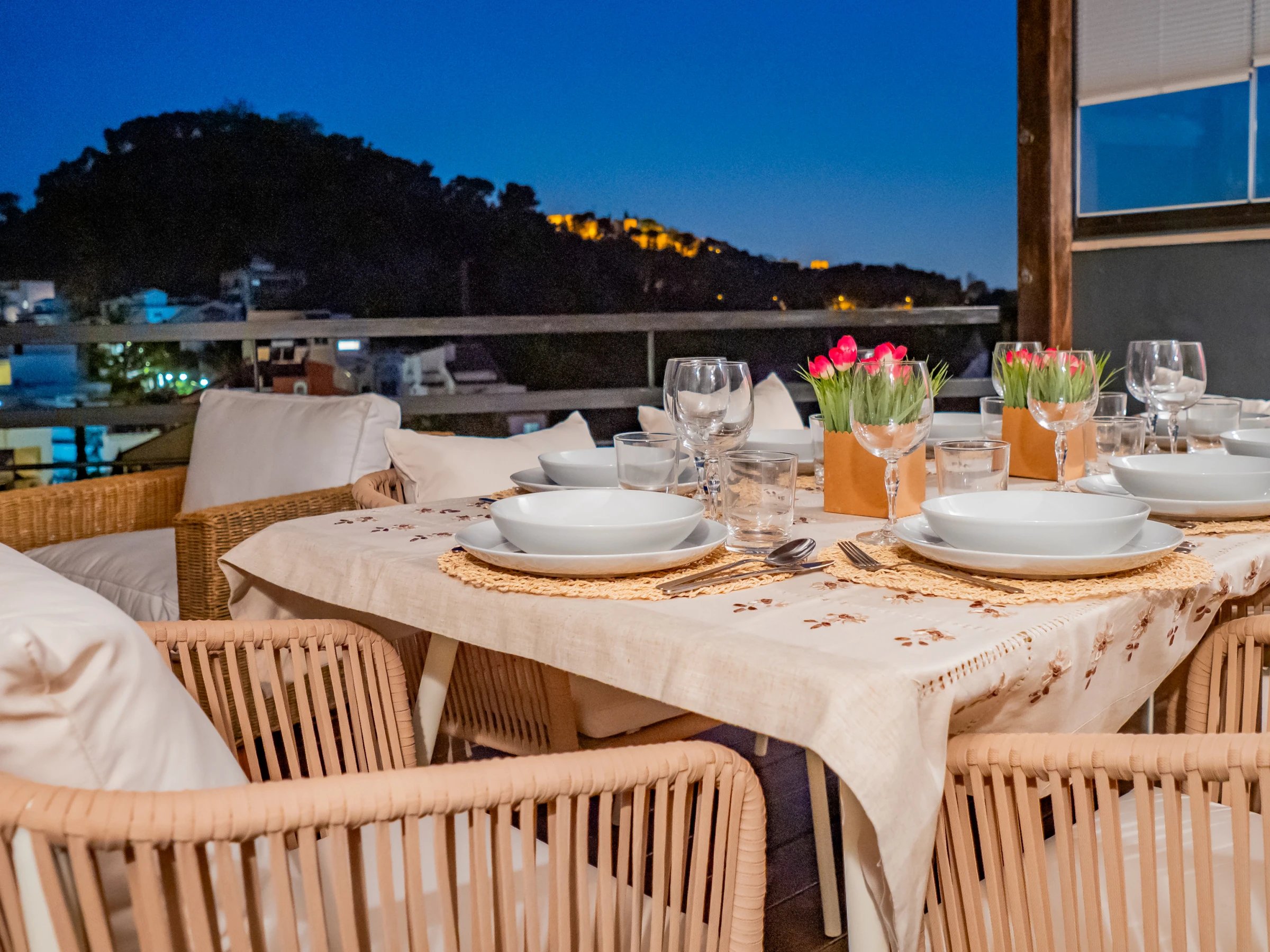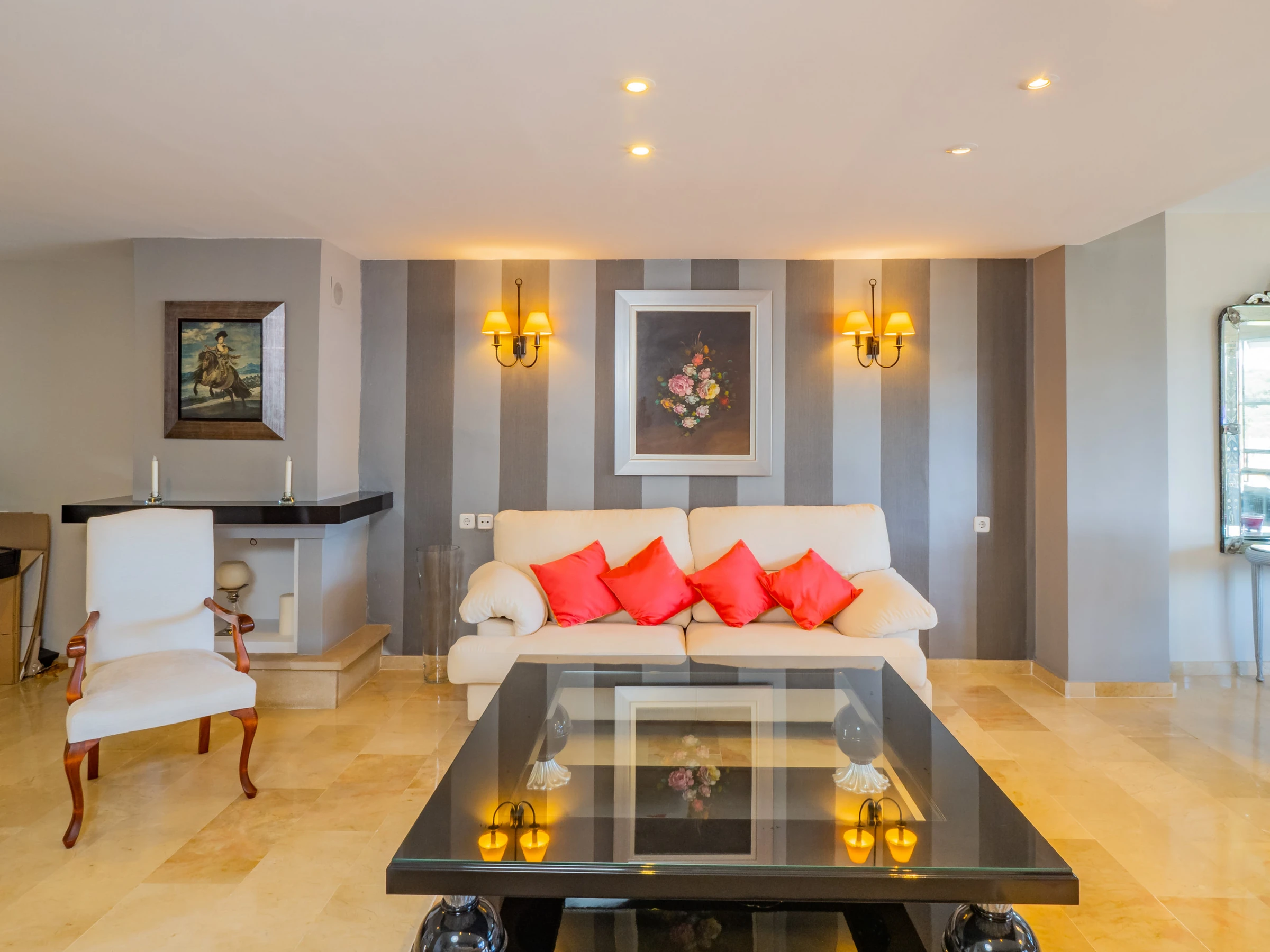 Le logement dispose de 4 chambres spacieuses et élégantes, équipées de grands lits (2x2 mètres), réparties sur plusieurs étages pour offrir intimité et confort. À l'étage supérieur, la chambre principale comprend une salle de bain attenante et une terrasse privée avec une vue spectaculaire. À l'étage intermédiaire, une autre chambre avec un lit de couple, de grands placards et une terrasse accueillante parfaite pour des dîners en plein air. Au rez-de-chaussée se trouvent deux autres chambres, l'une avec un lit de couple et l'autre avec deux lits individuels, toutes deux avec une salle de bain attenante.